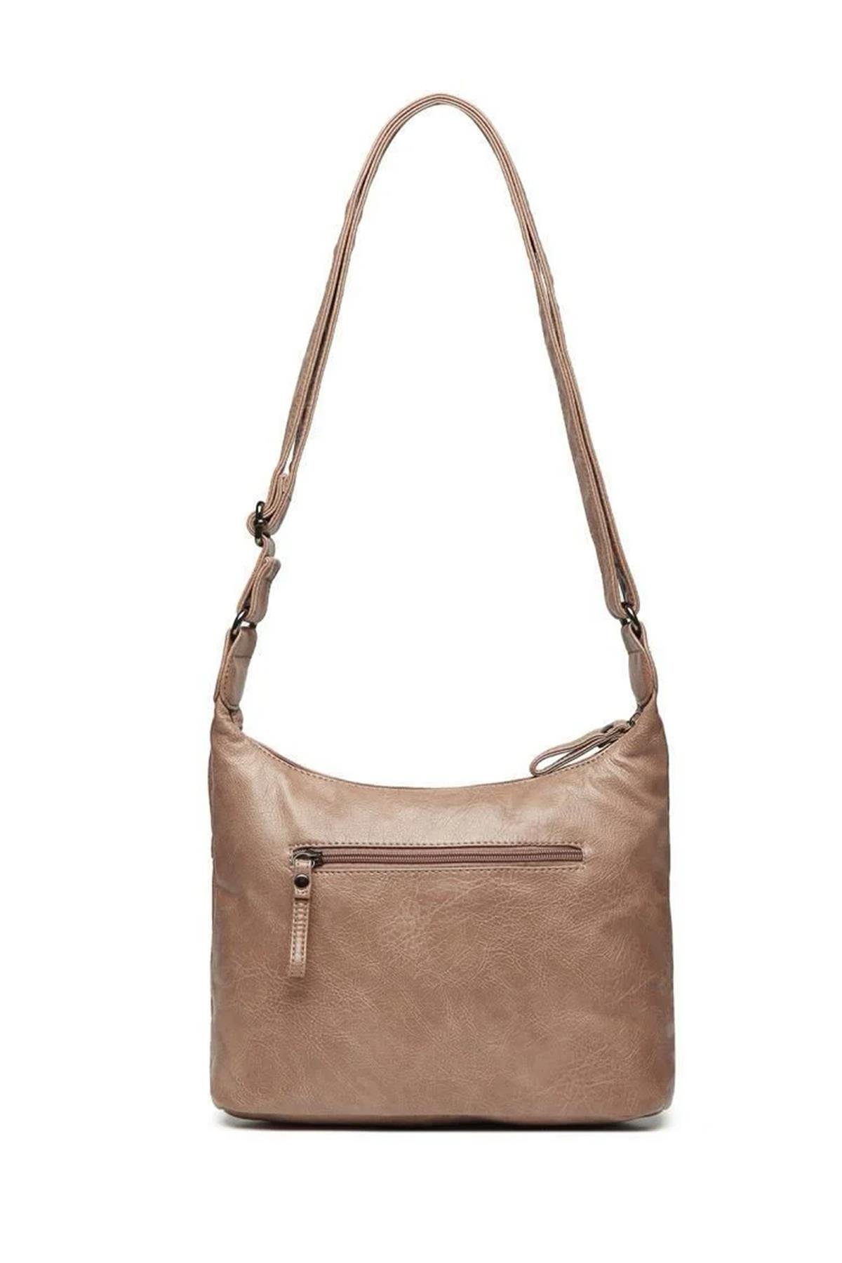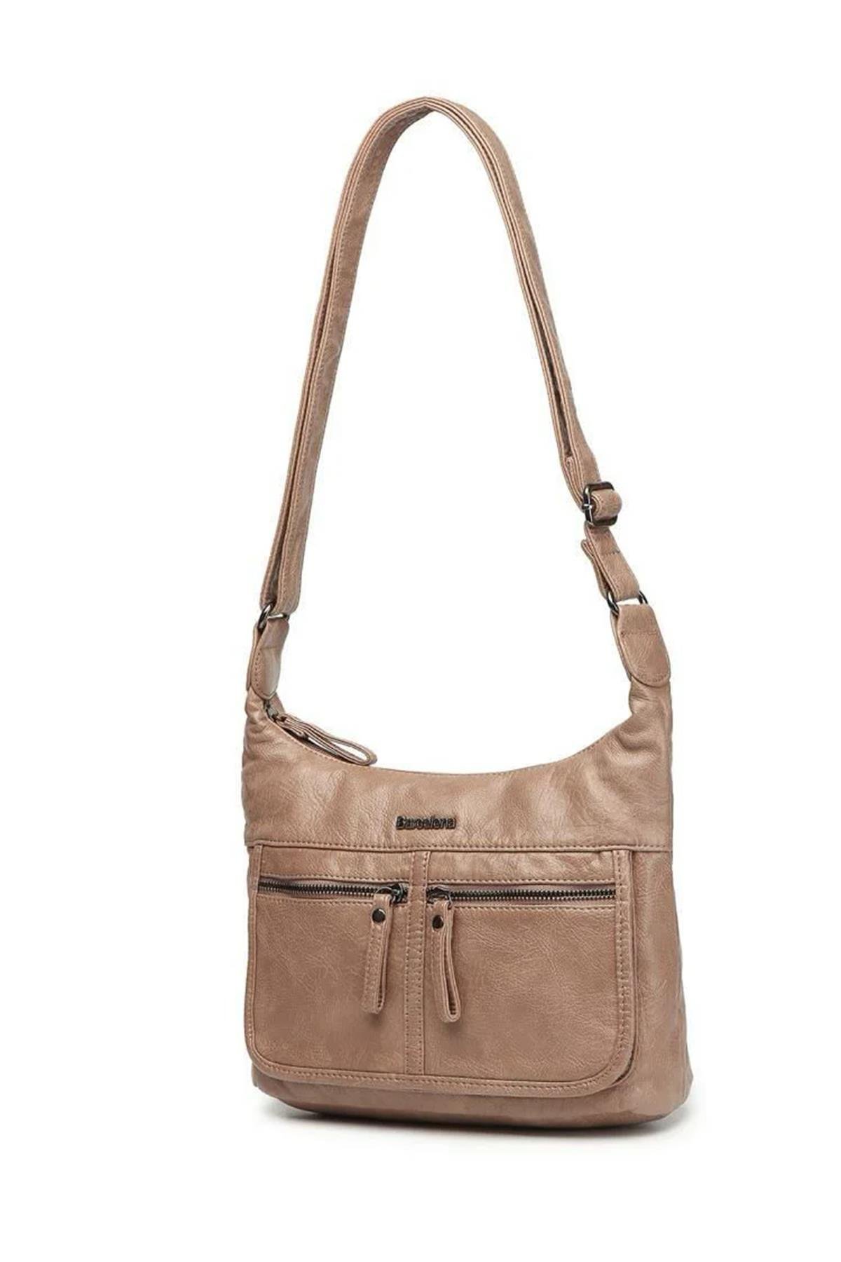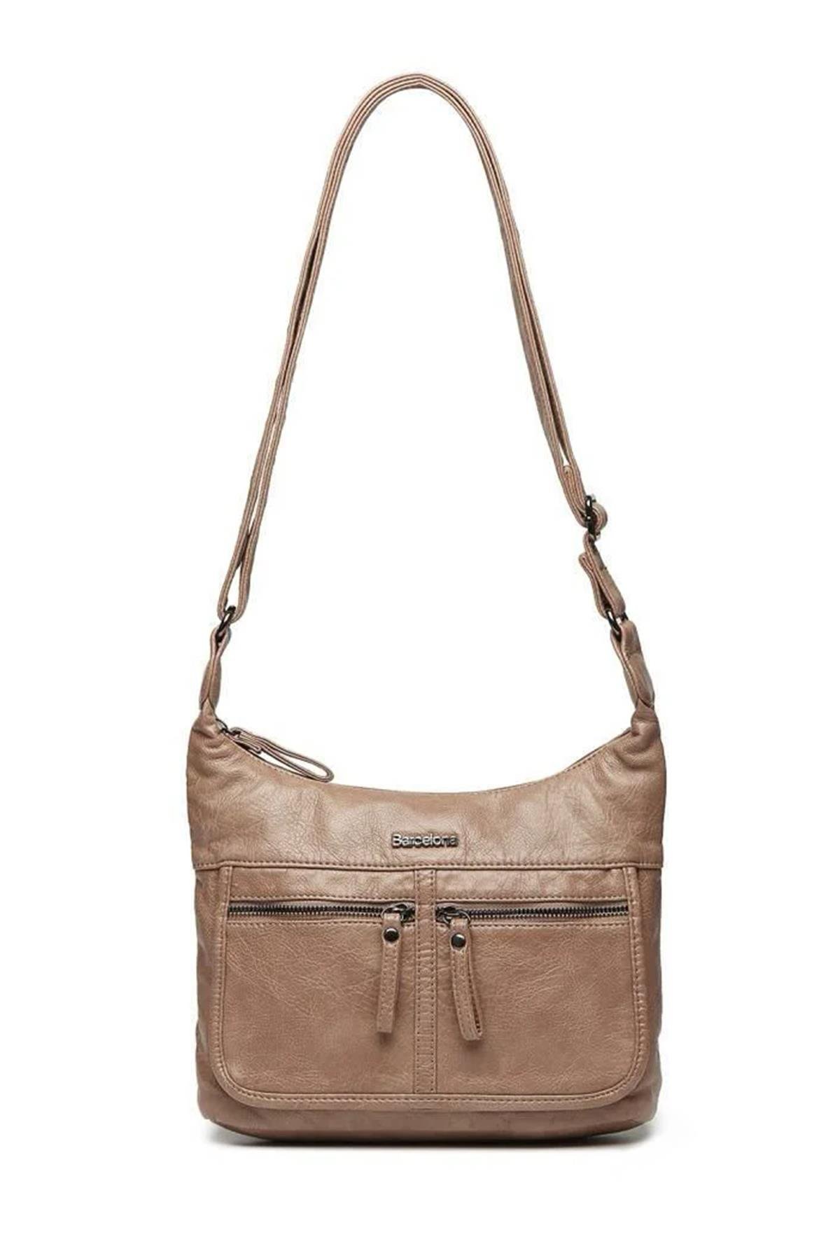 BARCELONA YIKAMA DERİ KADIN OMUZ ÇANTASI 2022-1858 VİZON