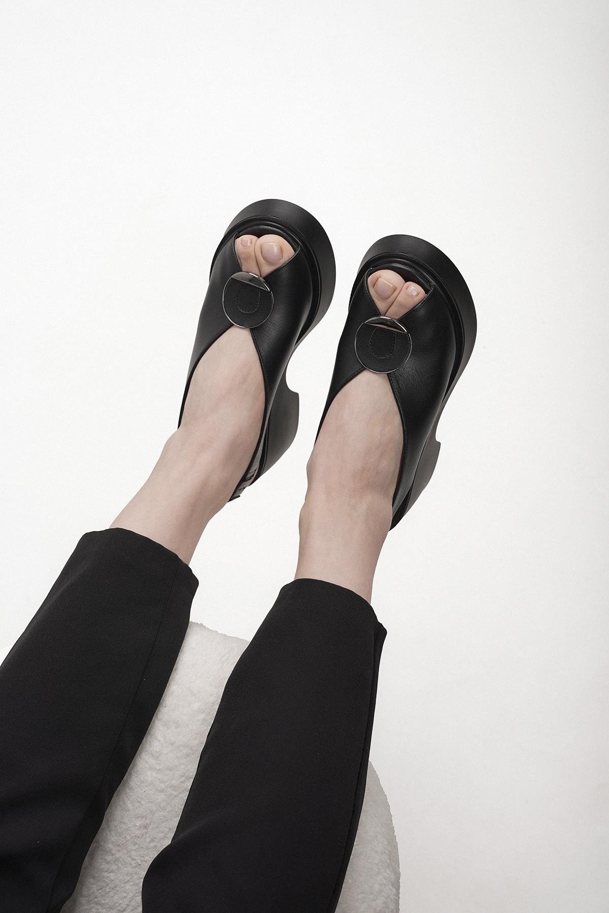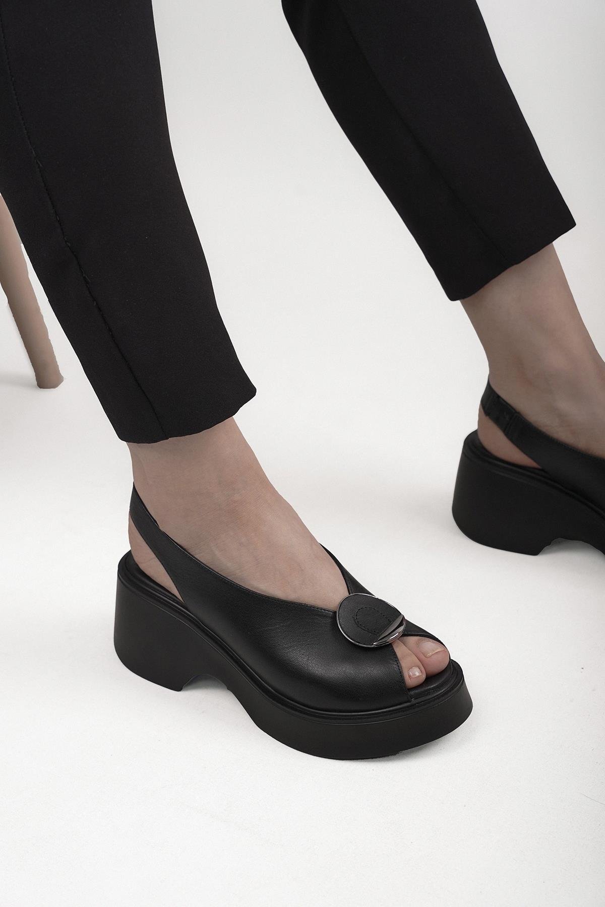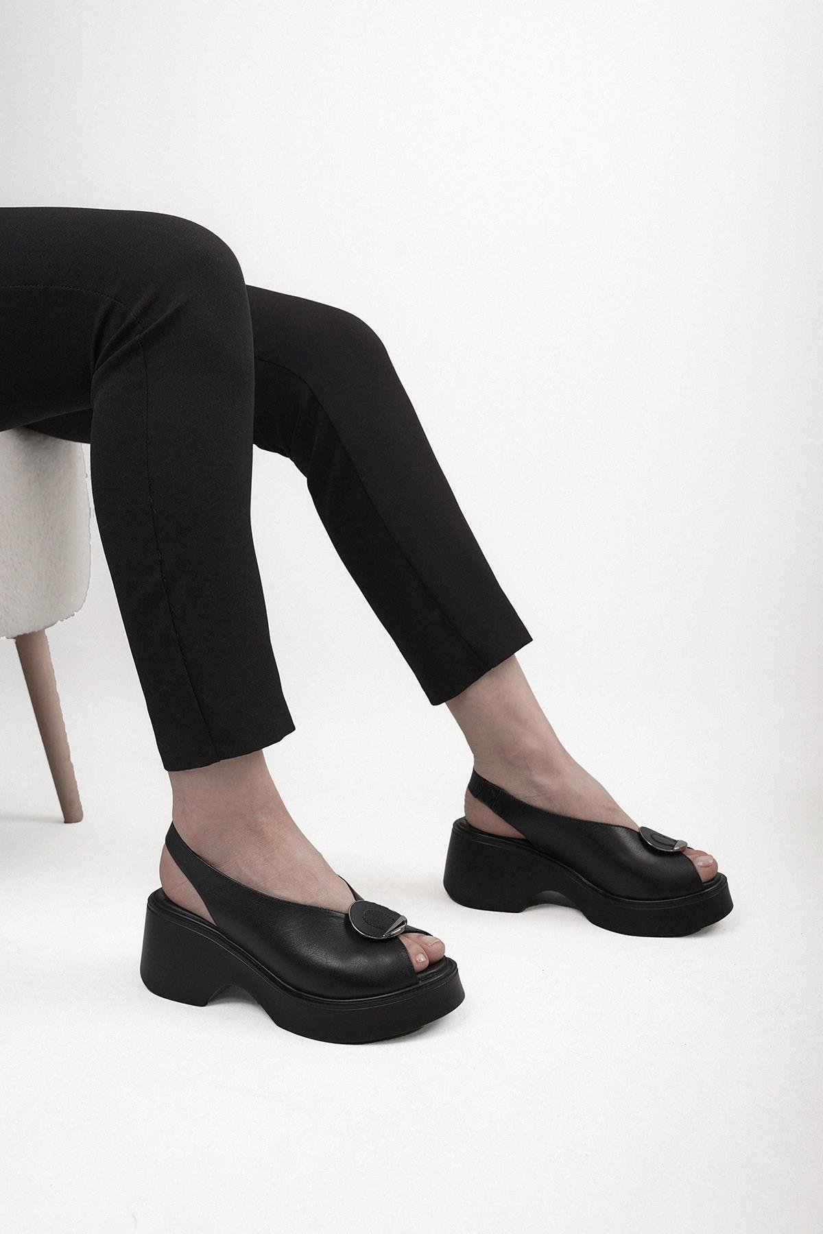 BONİTA ÖN TOKA DETAYLI HAKİKİ DERİ DOLGU TOPUKLU KADIN SANDALET SİYAH