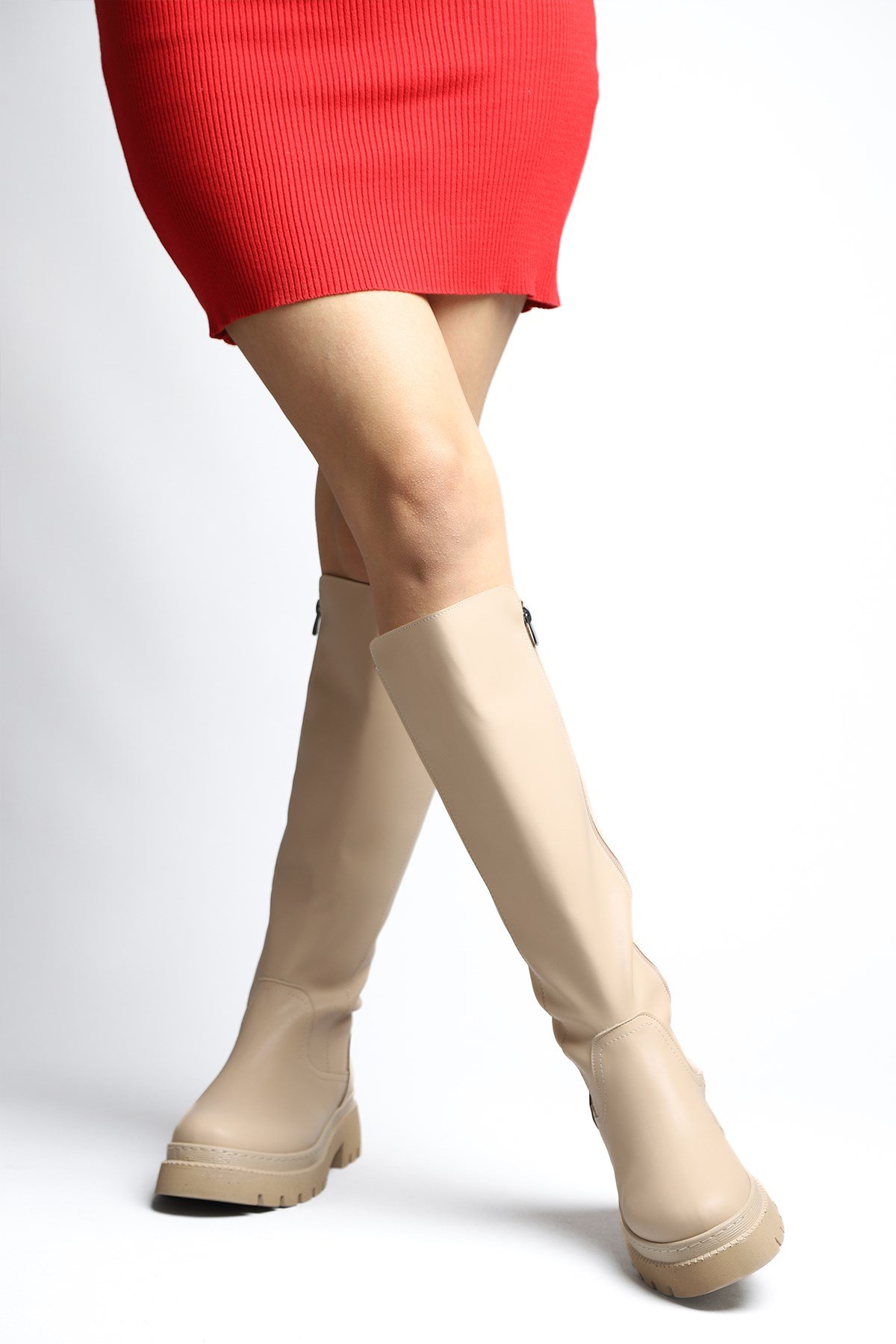 BRİTTNEY EVA TABAN FERMUARLI KADIN DERİ ÇİZME BEJ