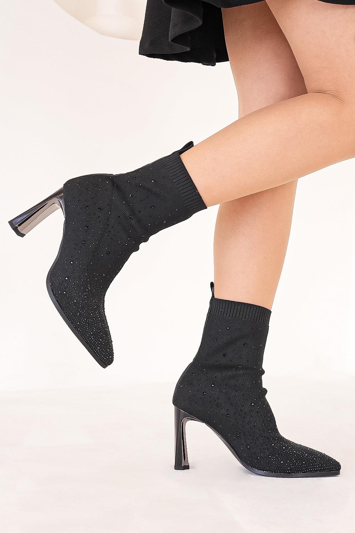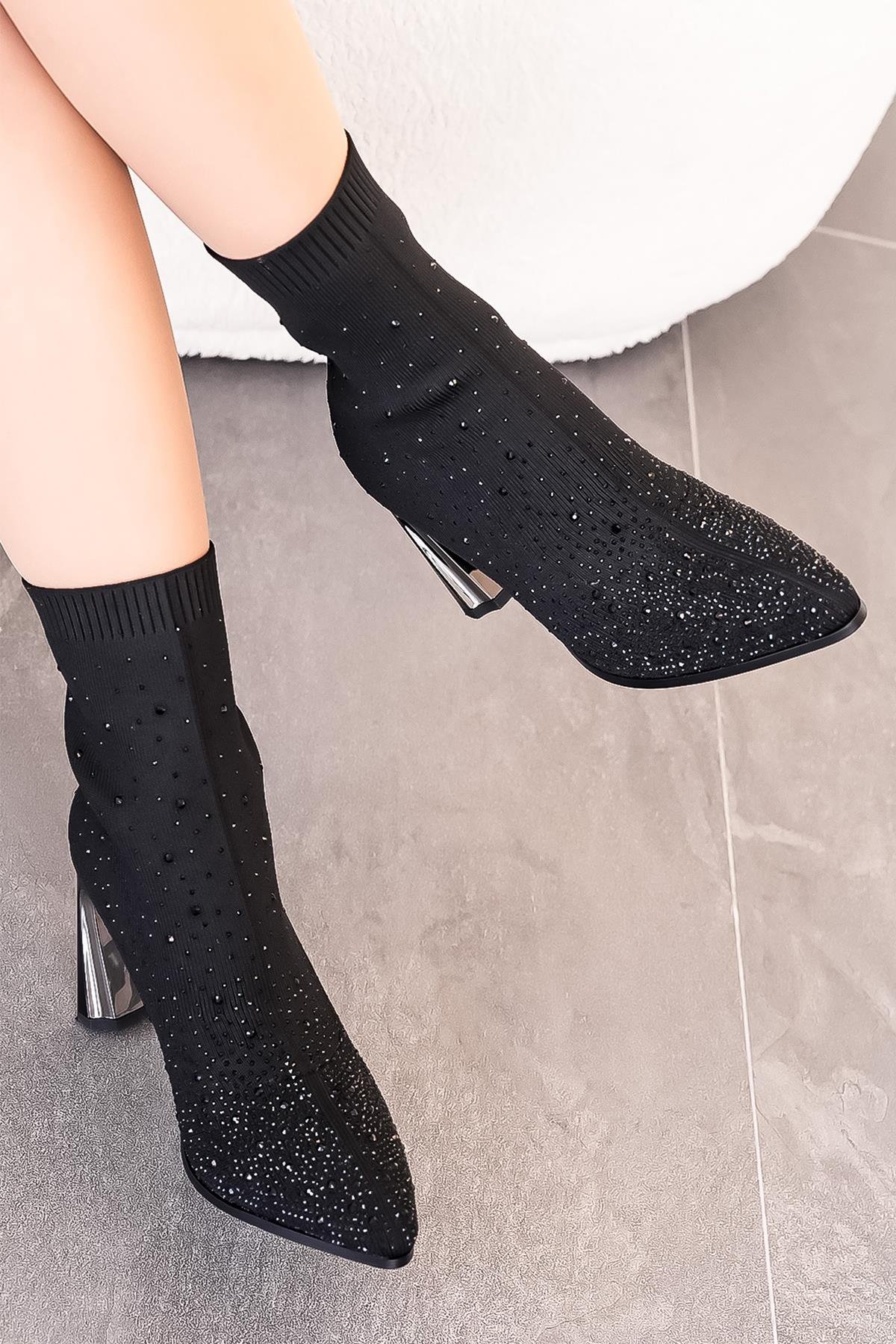 CAROLİNE ORİJİNAL KRİSTE BELL İTHAL ÖZEL SERİ TAŞ DETAYLI TRİKO TOPUKLU KADIN BOT SİYAH