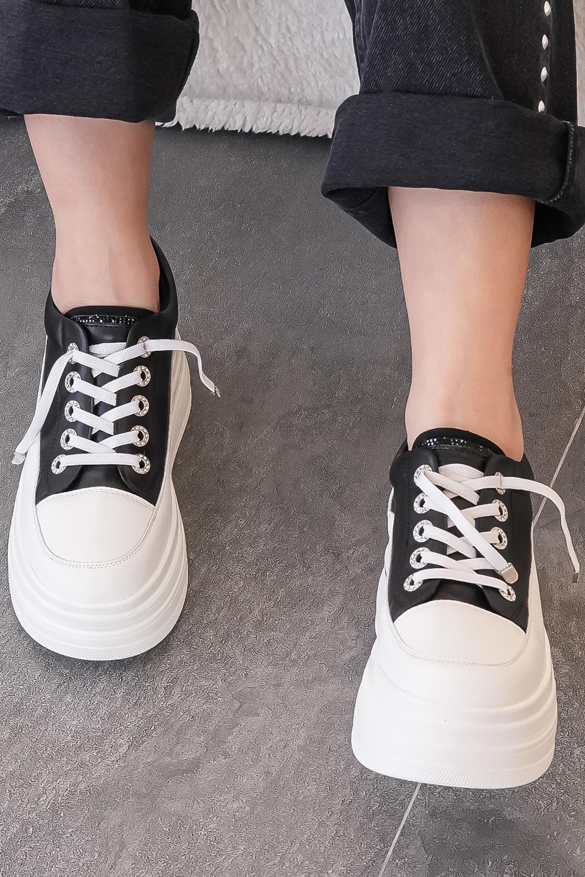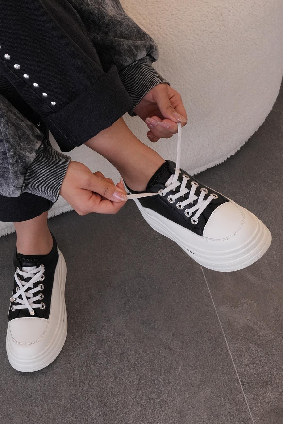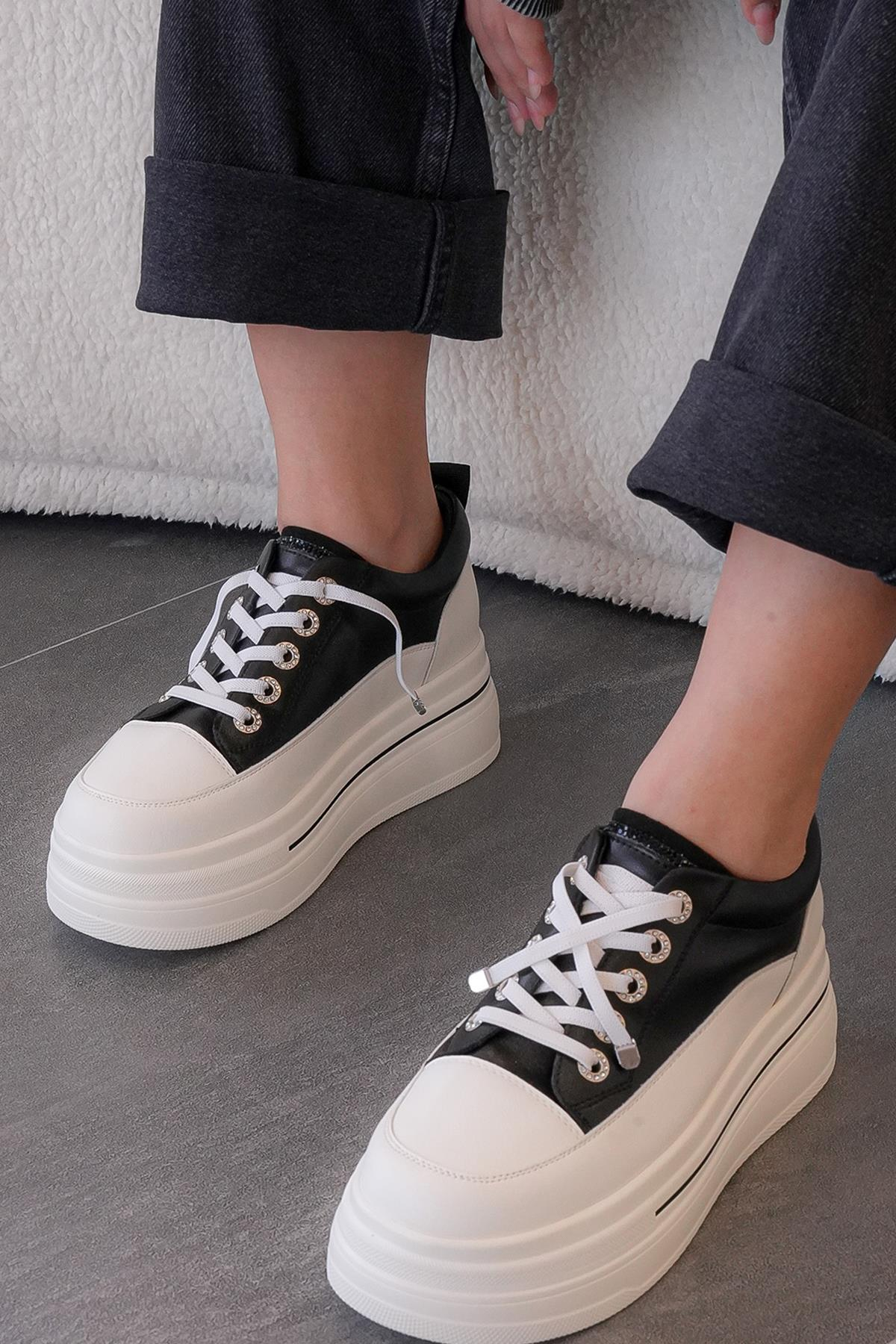 CİNDY GUJA İTHAL ÖZEL SERİ HAKİKİ DERİ KALIN TABAN KADIN SPOR AYAKKABI SİYAH