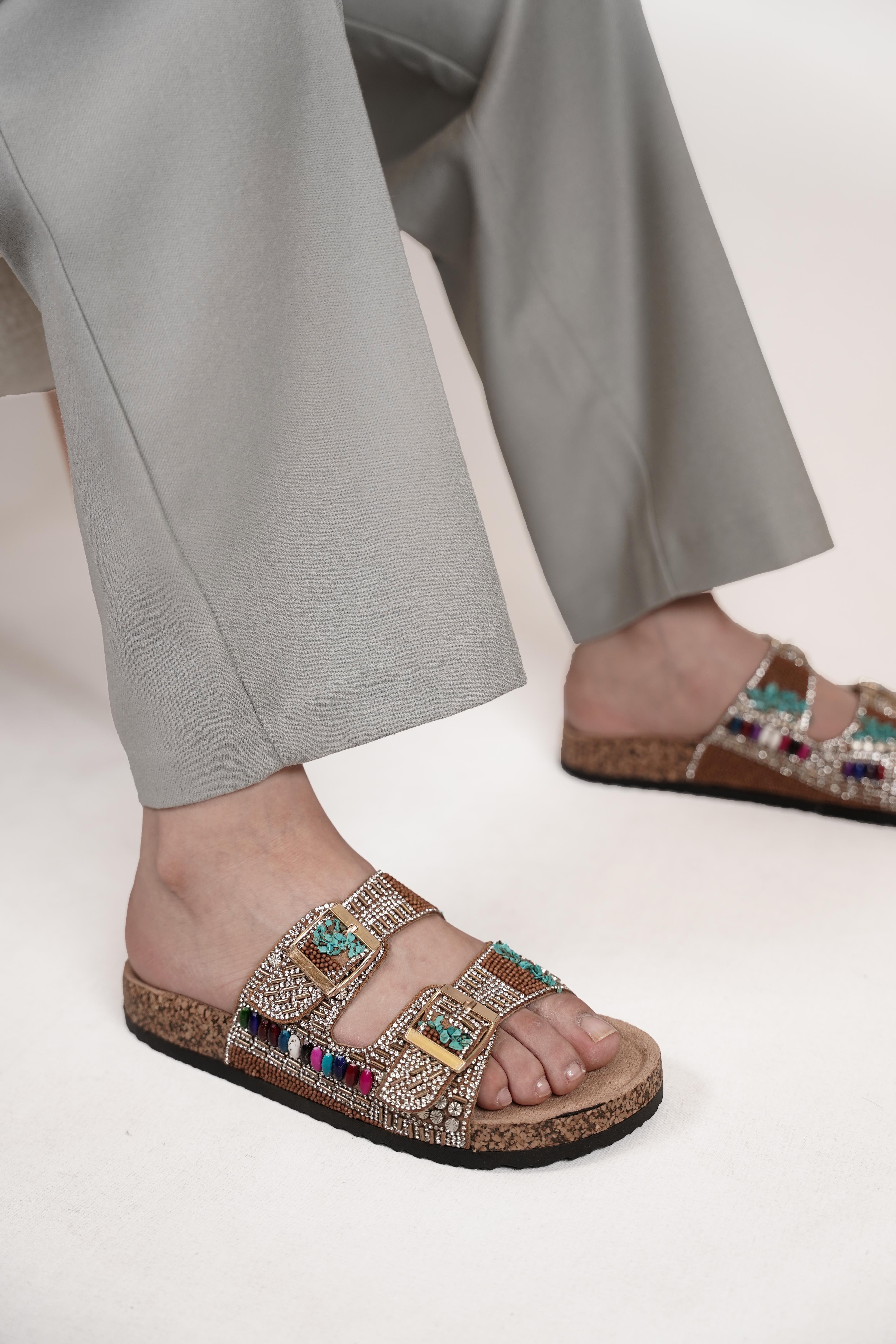 CORRİNE ORİJİNAL GUJA İTHAL TAŞLI KADIN TERLİK CAMEL