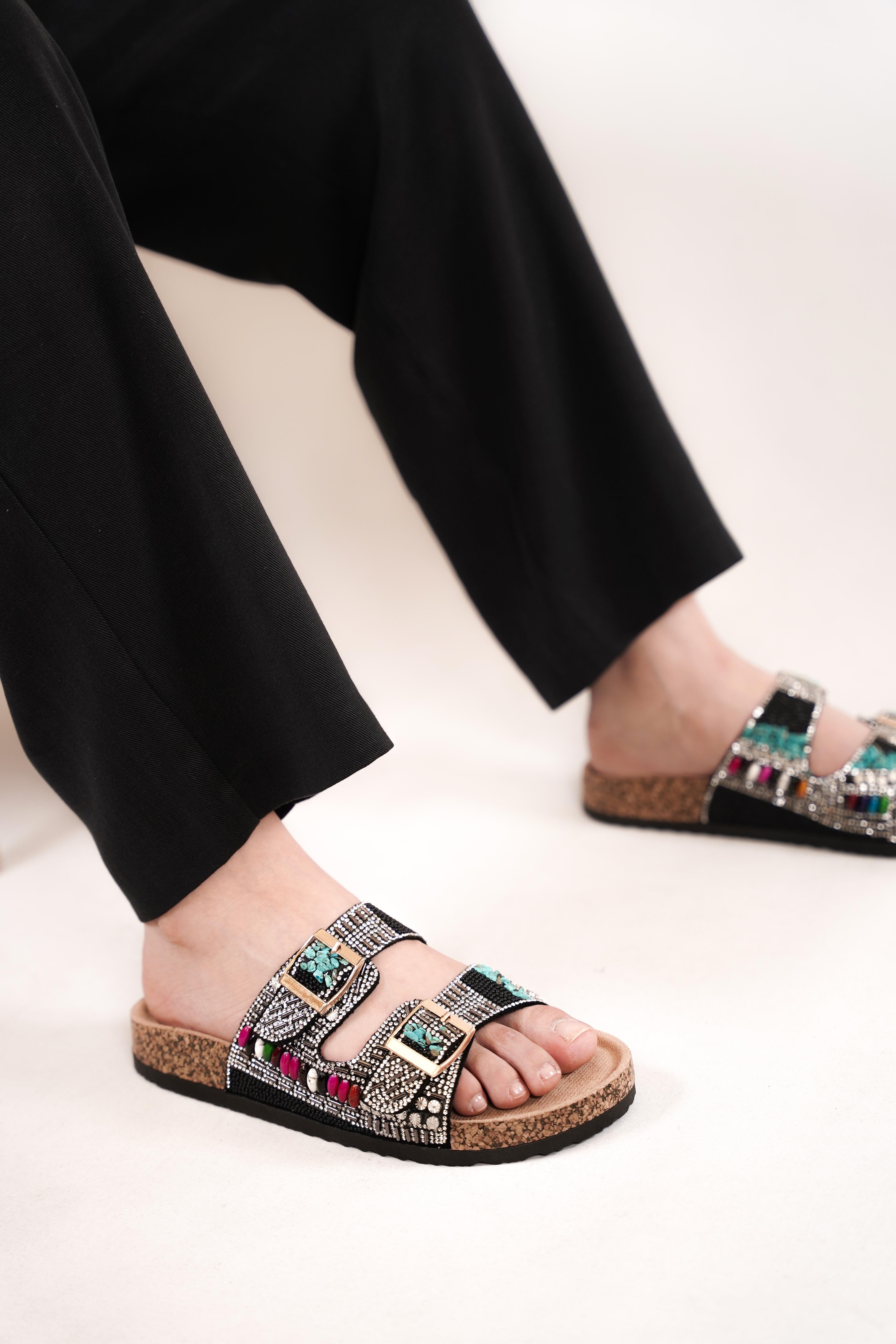 CORRİNE ORİJİNAL GUJA İTHAL TAŞLI KADIN TERLİK SİYAH
