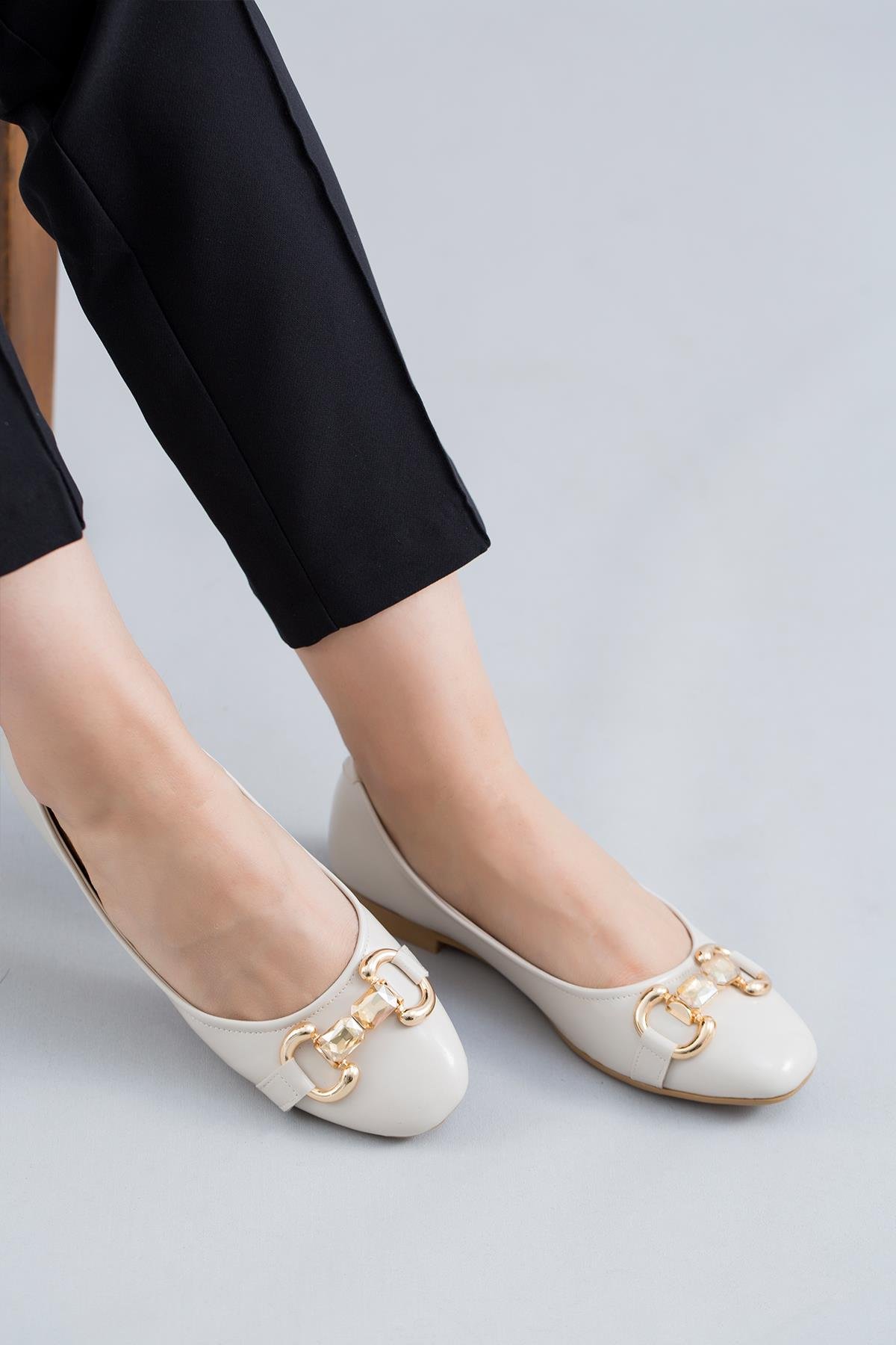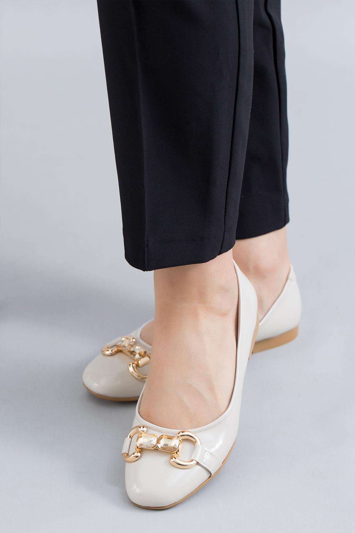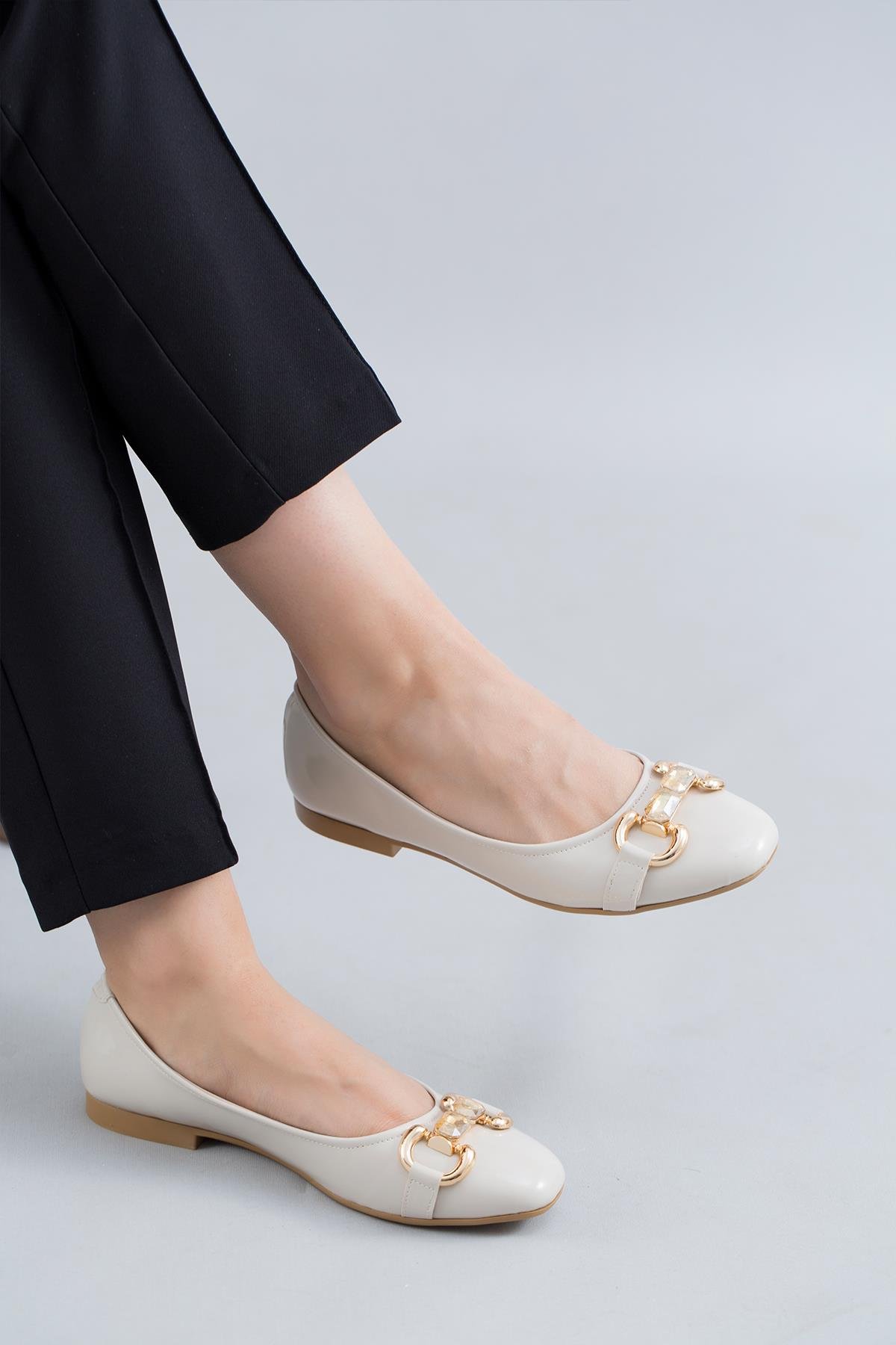 ELİANA TAŞ TOKA DETAYLI KADIN BABET RUGAN BEJ