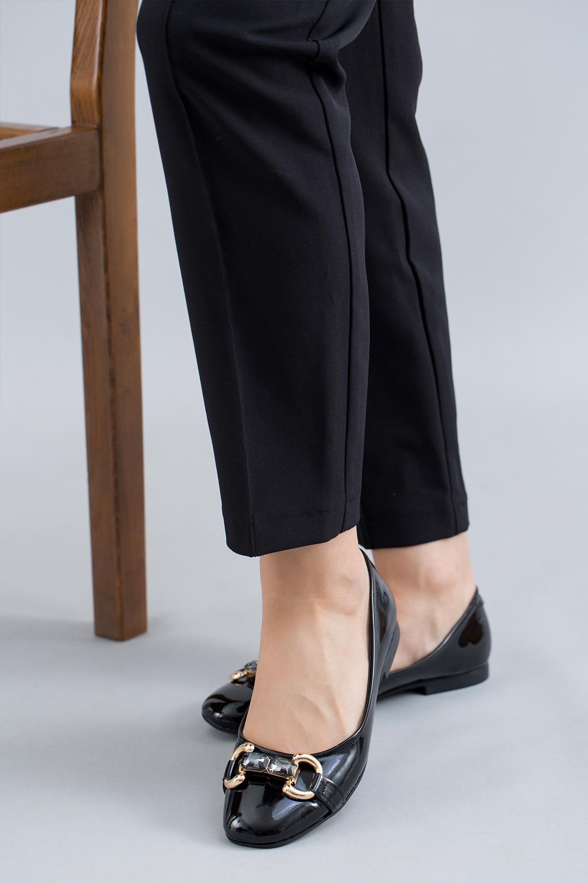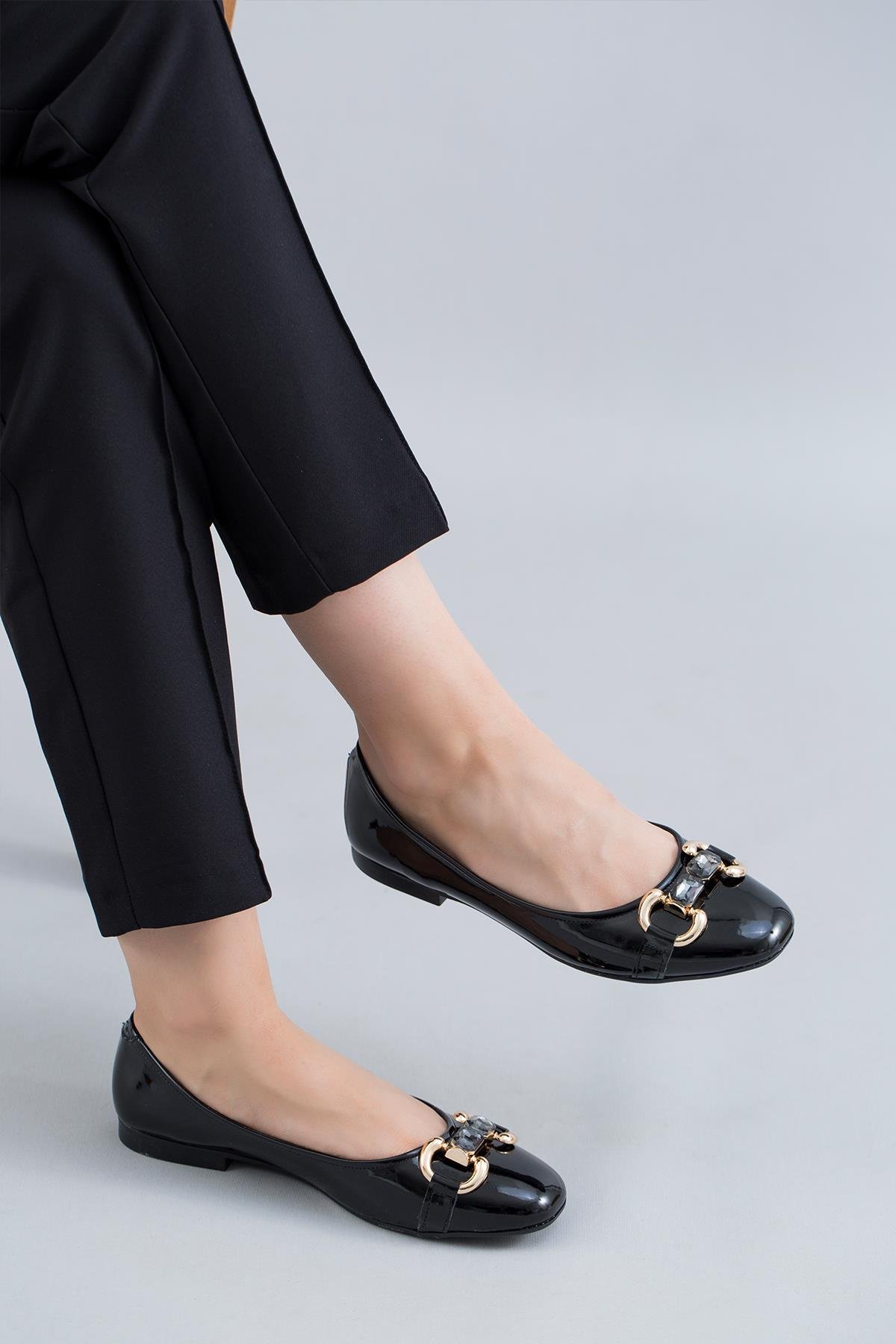 ELİANA TAŞ TOKA DETAYLI KADIN BABET RUGAN SİYAH