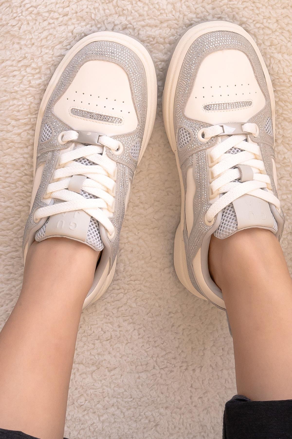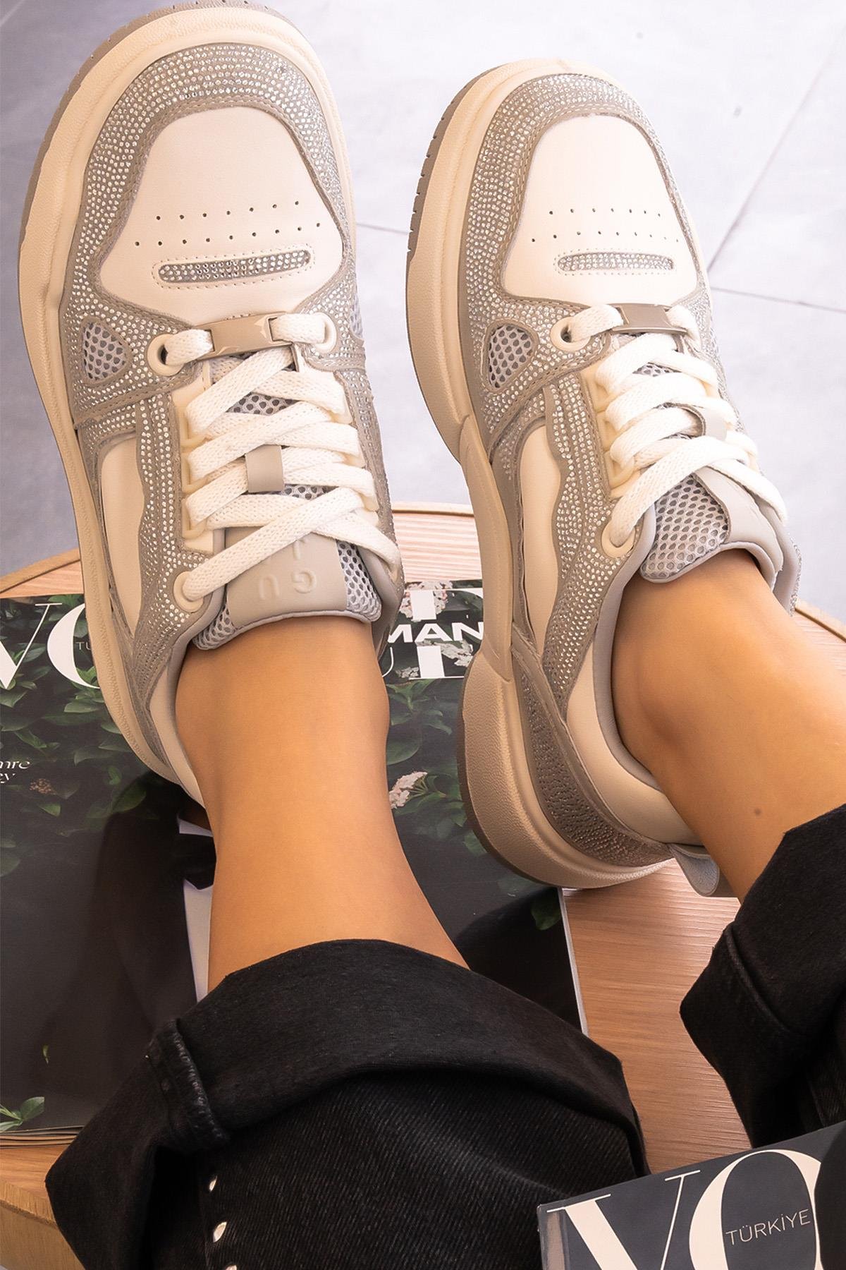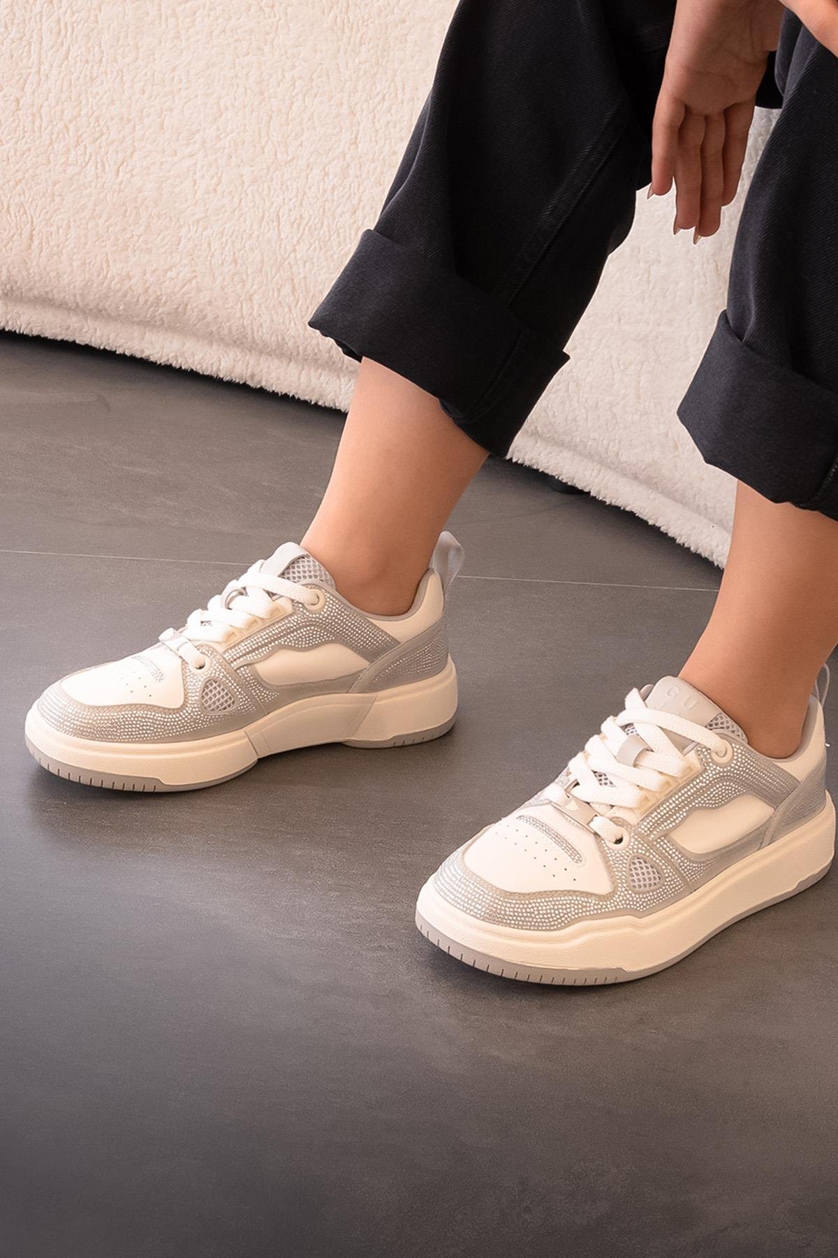 ELİZA GUJA İTHAL ÖZEL SERİ HAKİKİ DERİ TAŞ DETAYLI KADIN SPOR AYAKKABI BEYAZ