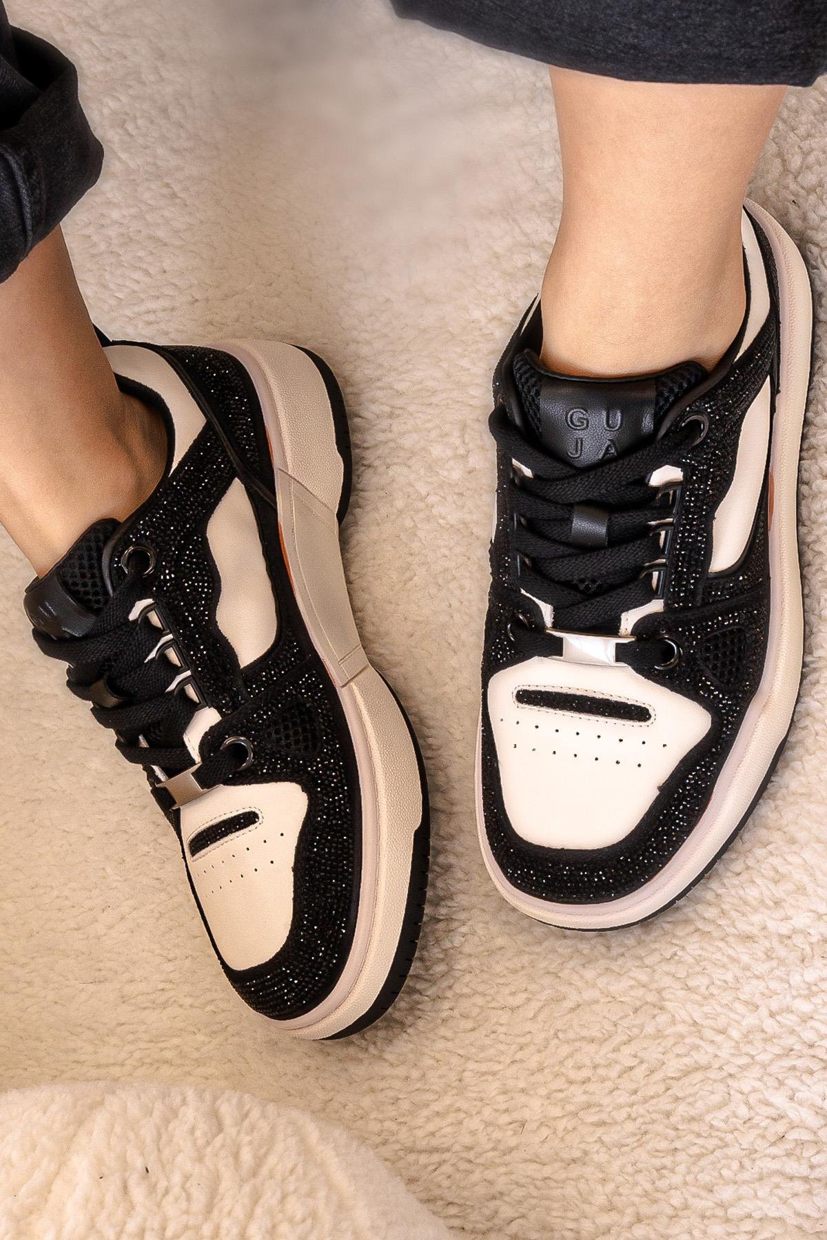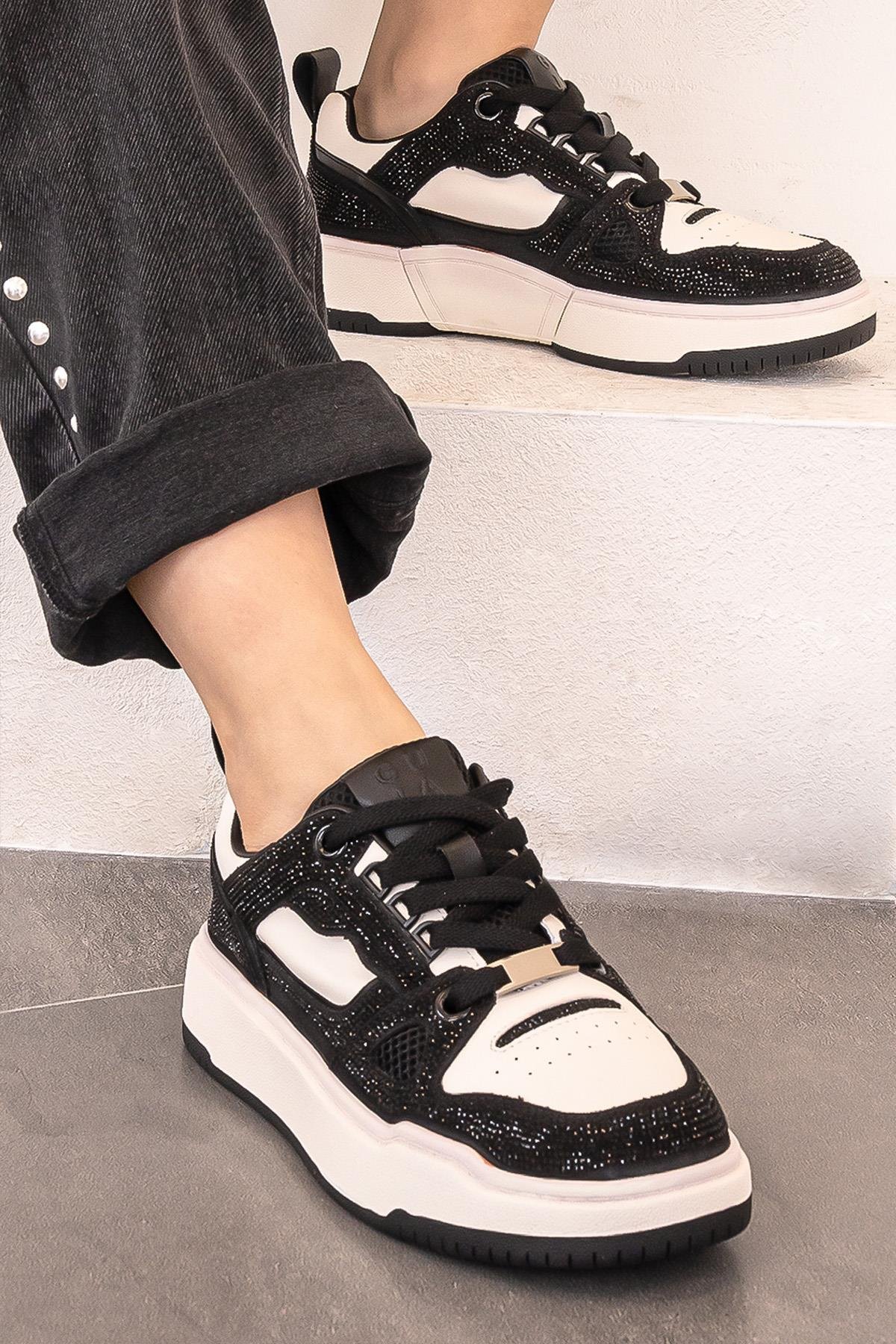 ELİZA GUJA İTHAL ÖZEL SERİ HAKİKİ DERİ TAŞ DETAYLI KADIN SPOR AYAKKABI SİYAH