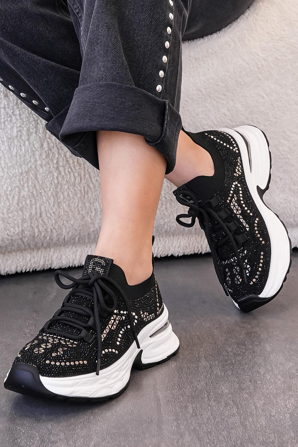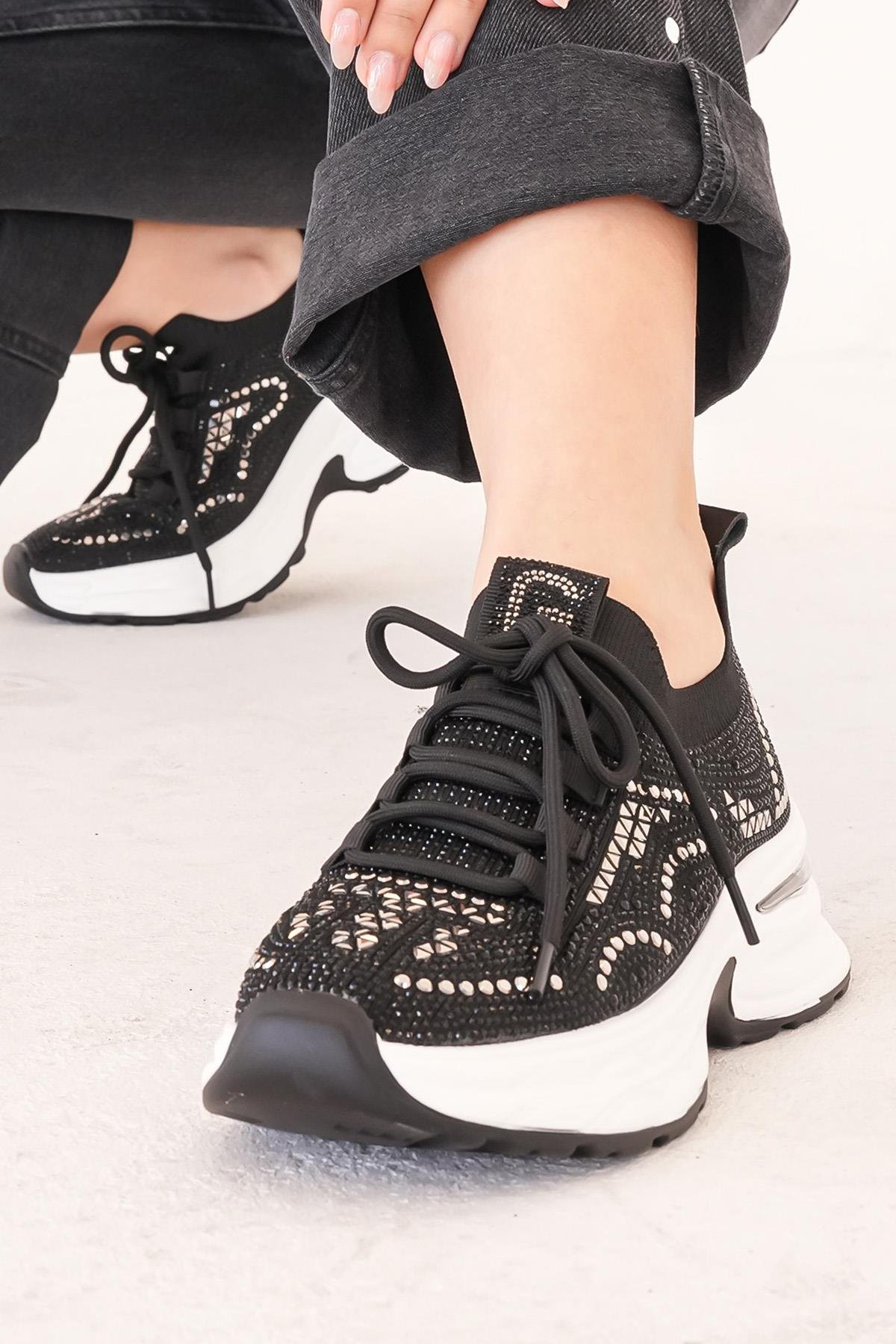 EMİLİA GUJA İTHAL ÖZEL SERİ TAŞ DETAYLI TRİKO KADIN SPOR AYAKKABI SİYAH