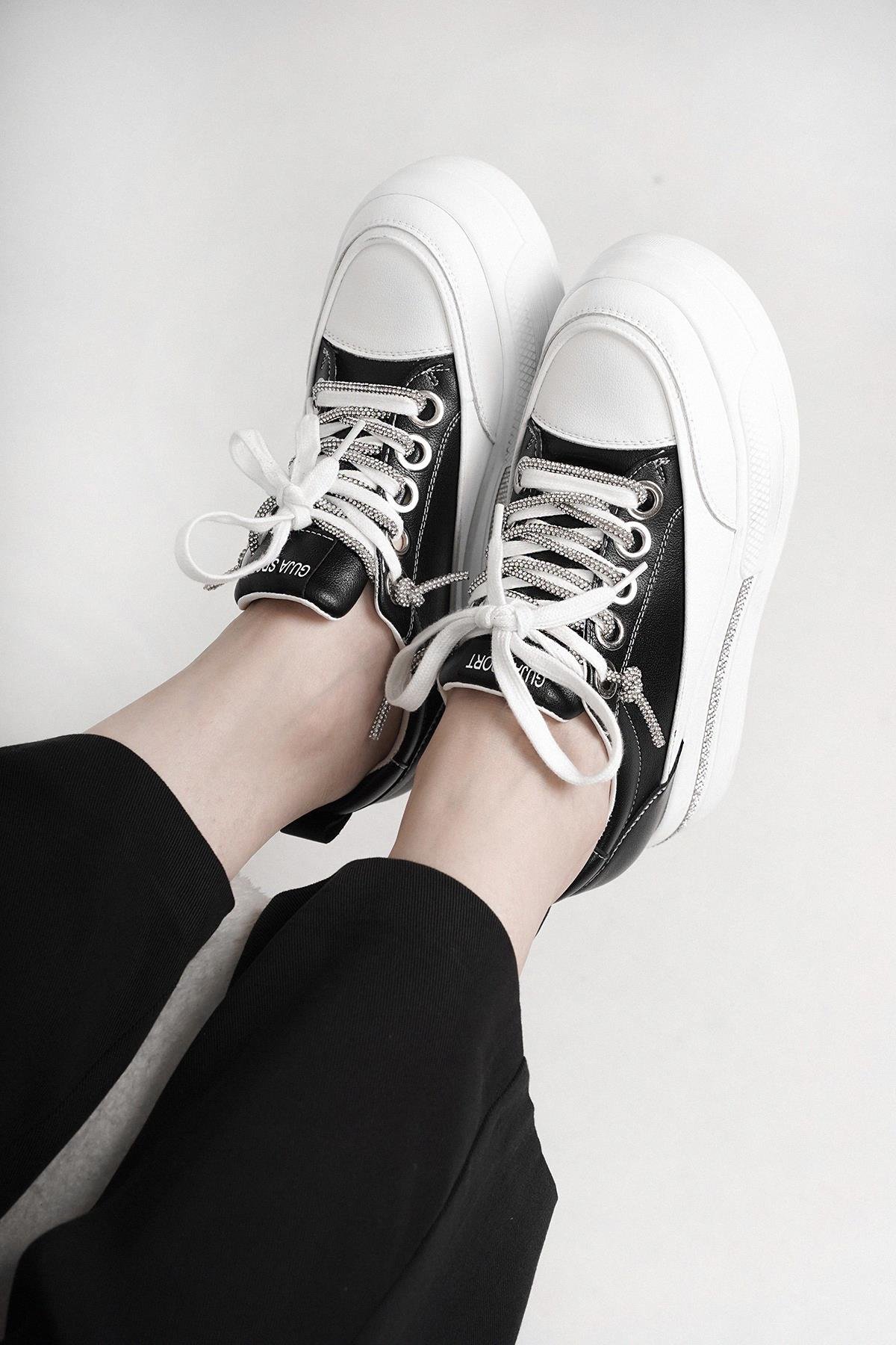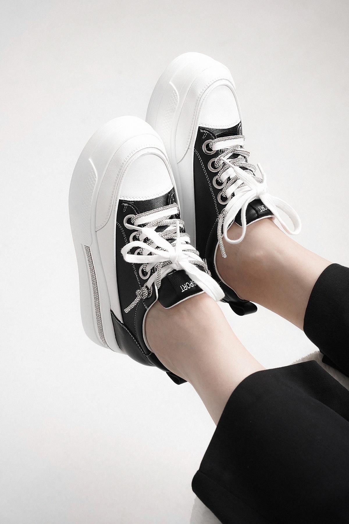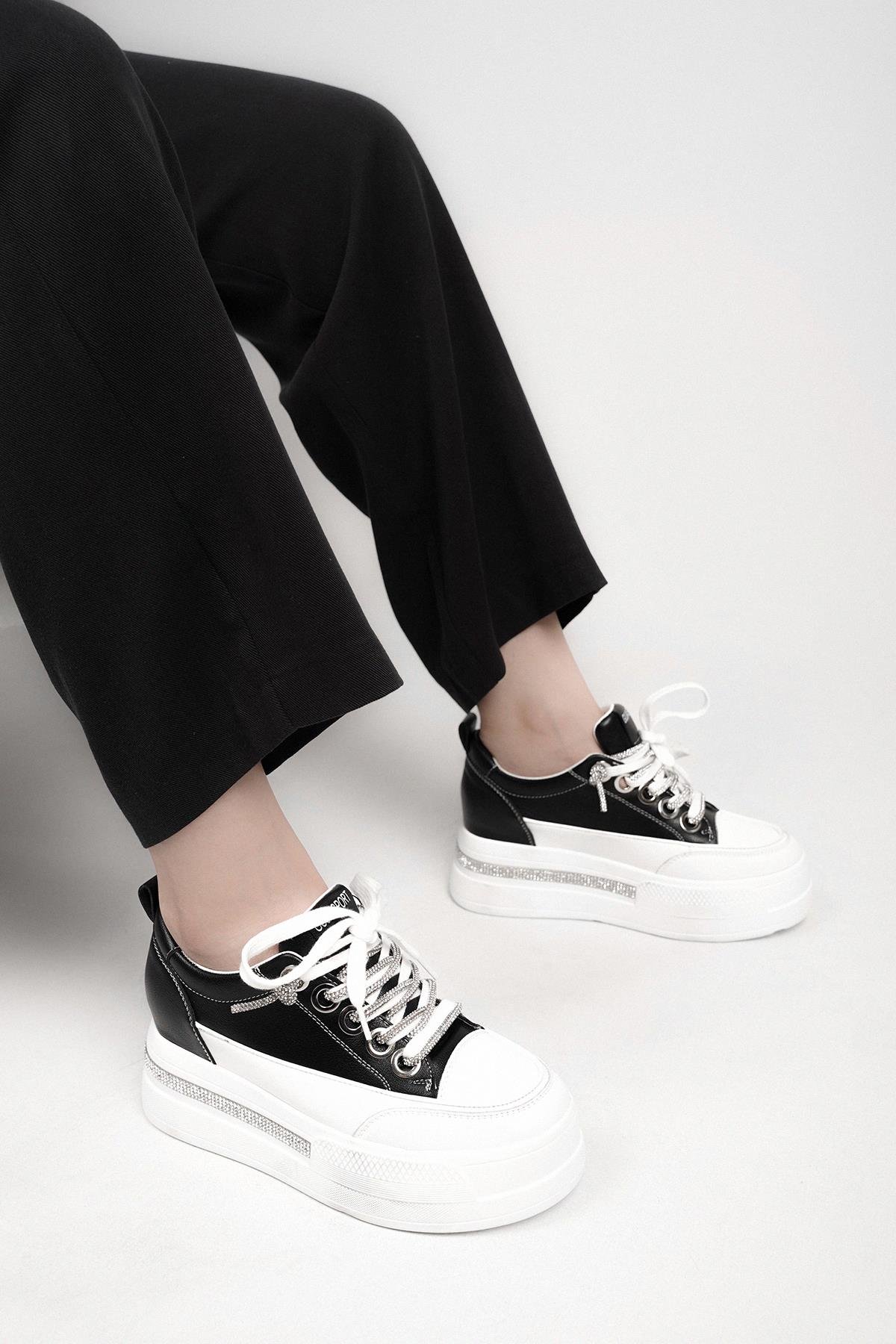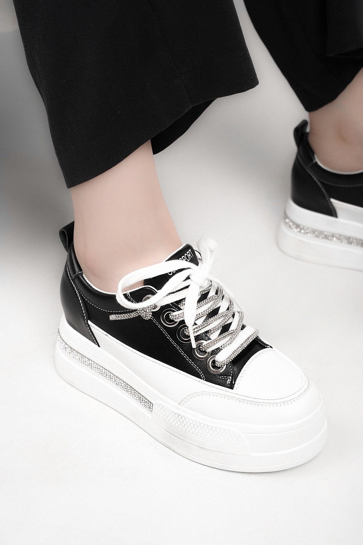 ENOLA GUJA İTHAL ÖZEL SERİ TABAN VE BAĞCIK TAŞ DETAYLI KADIN SPOR AYAKKABI SİYAH
