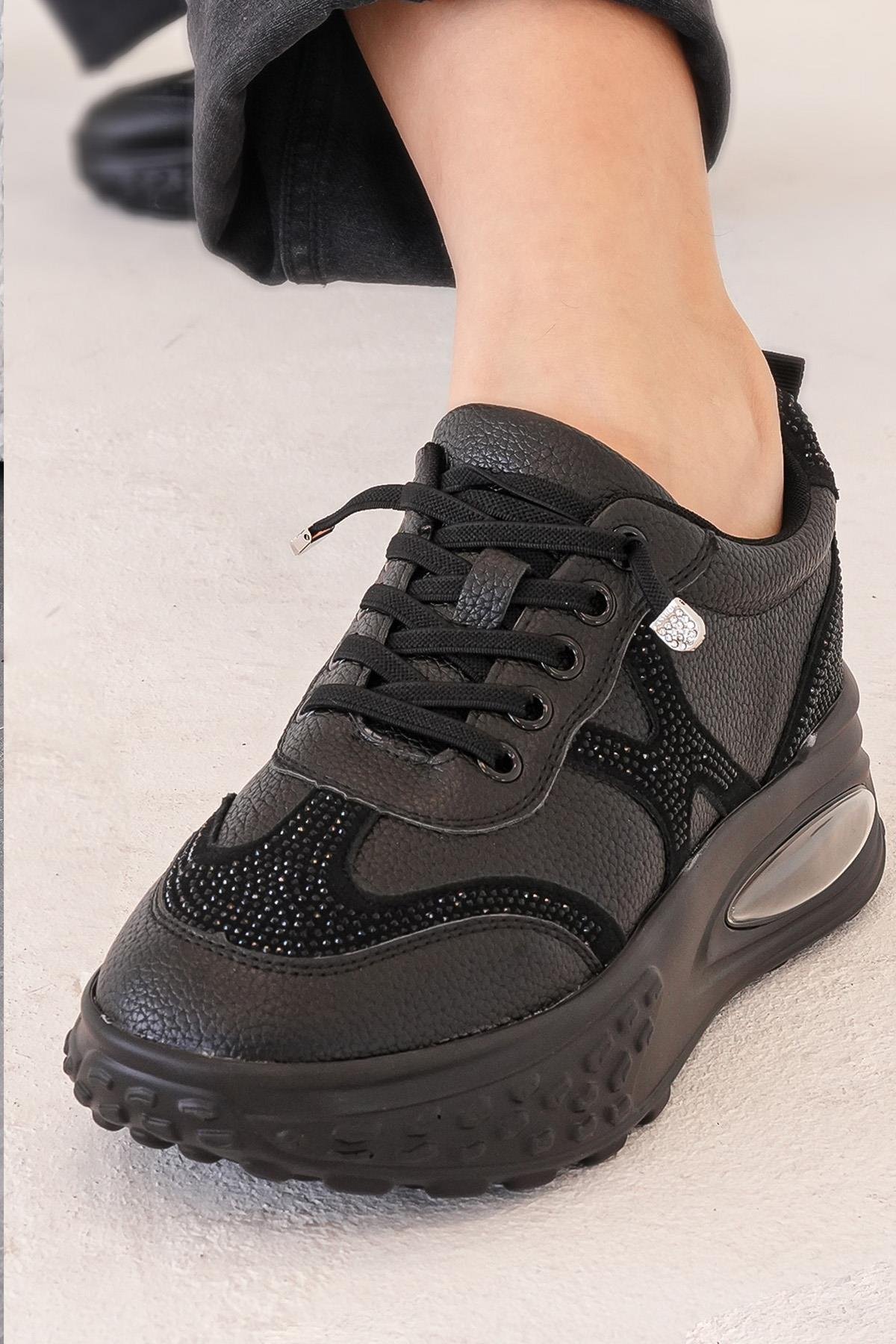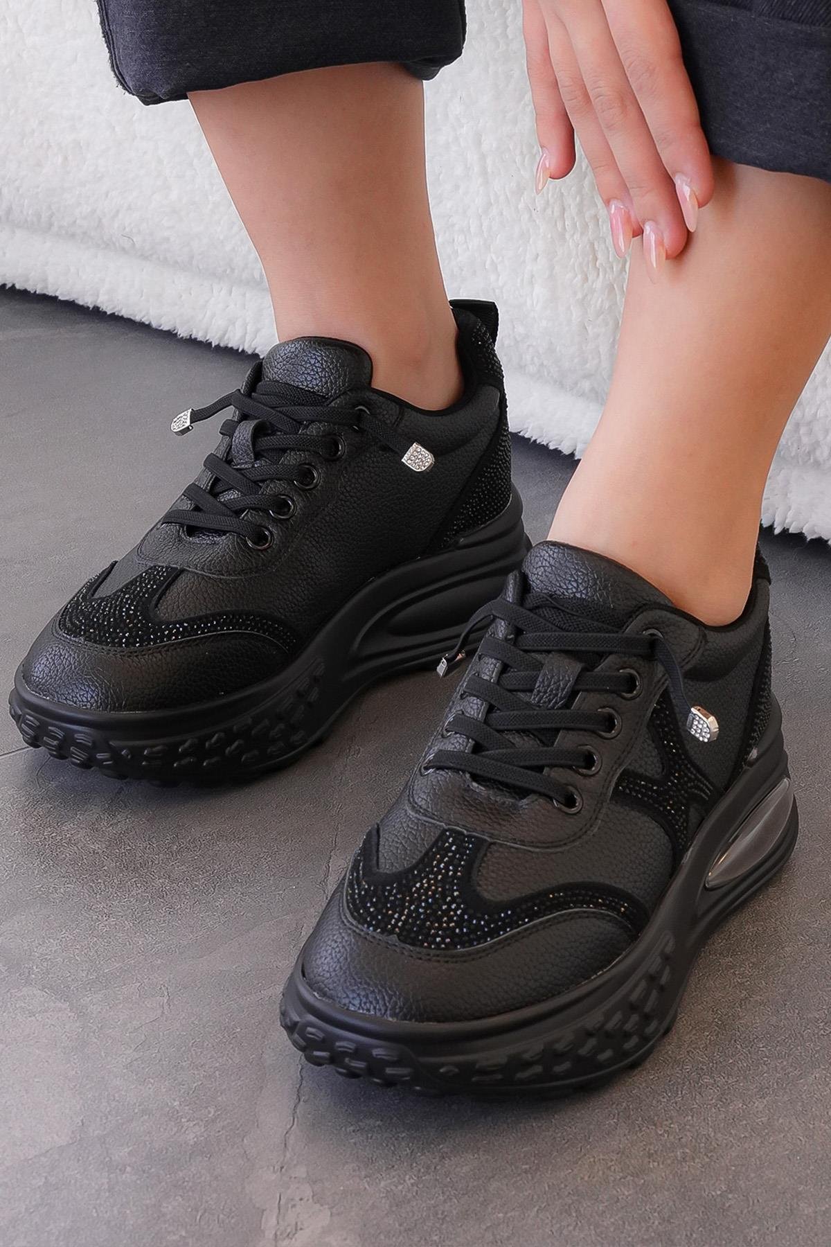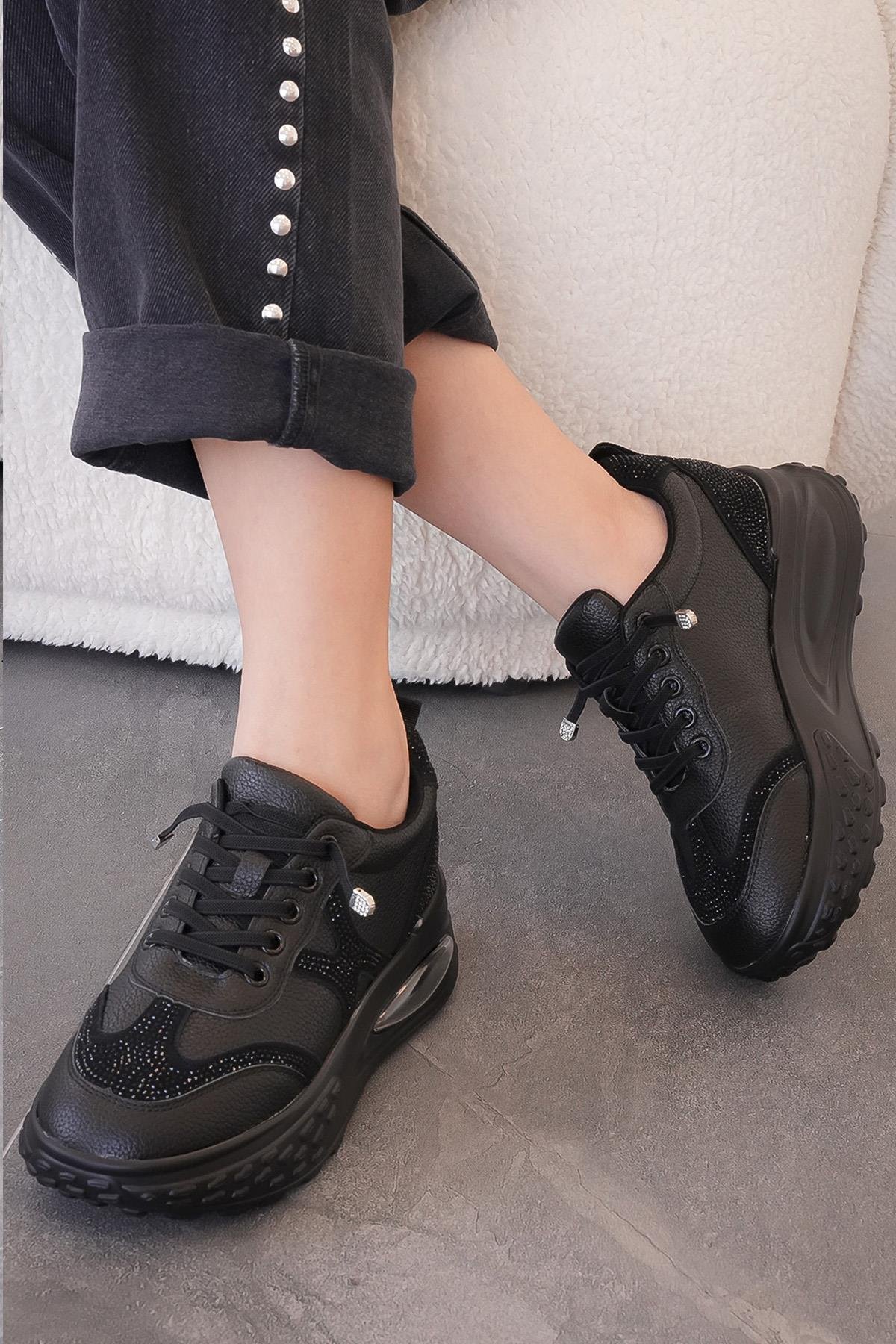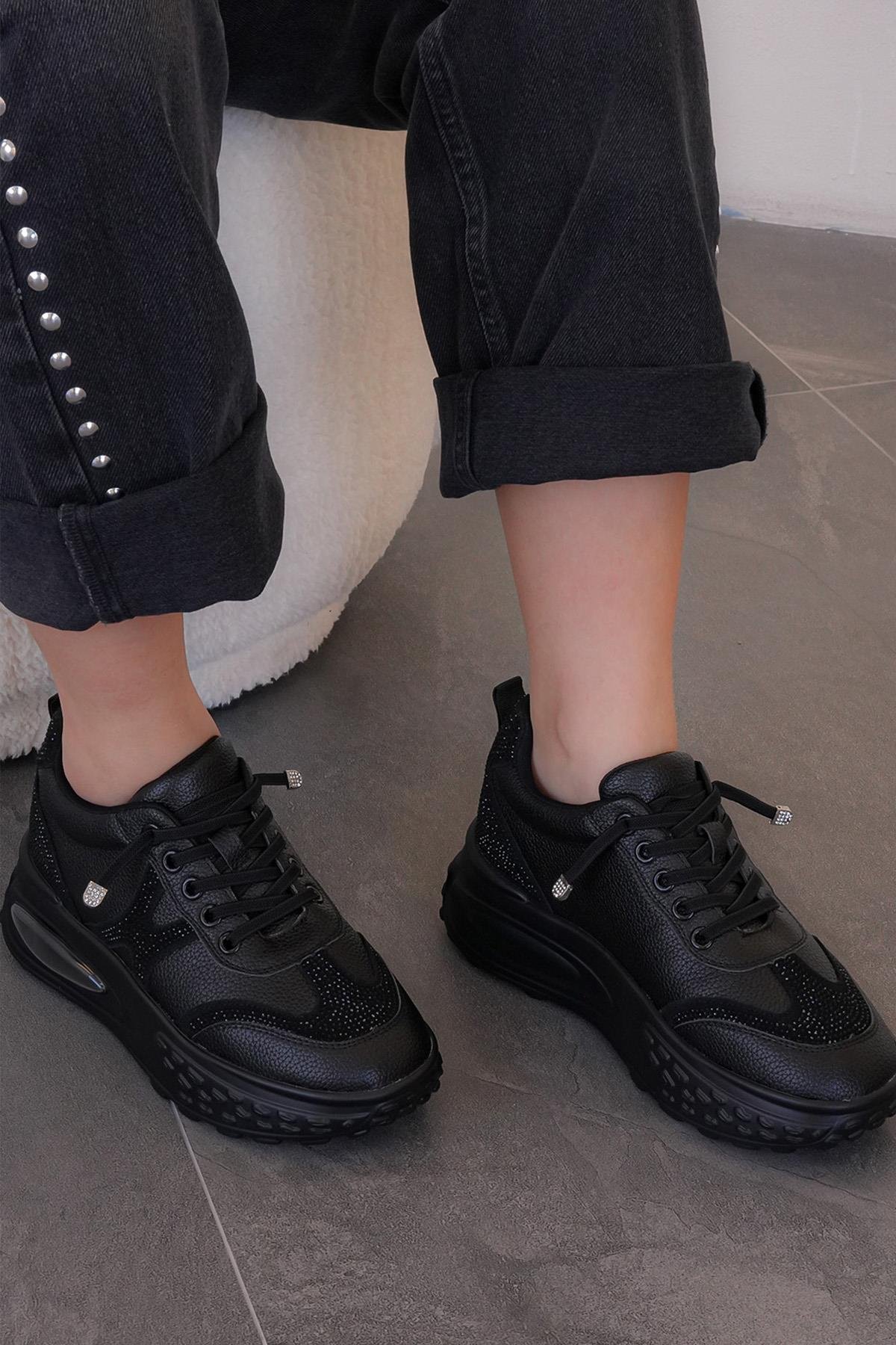 ERİCA GUJA İTHAL ÖZEL SERİ HAKİKİ DERİ TAŞ DETAYLI KADIN SPOR AYAKKABI SİYAH