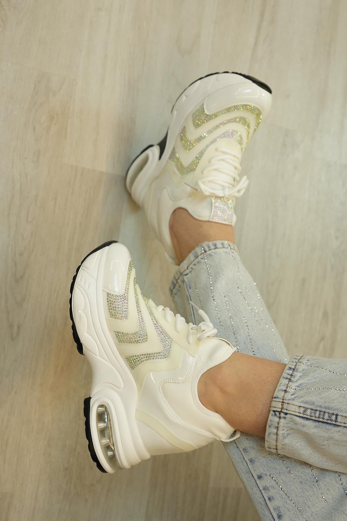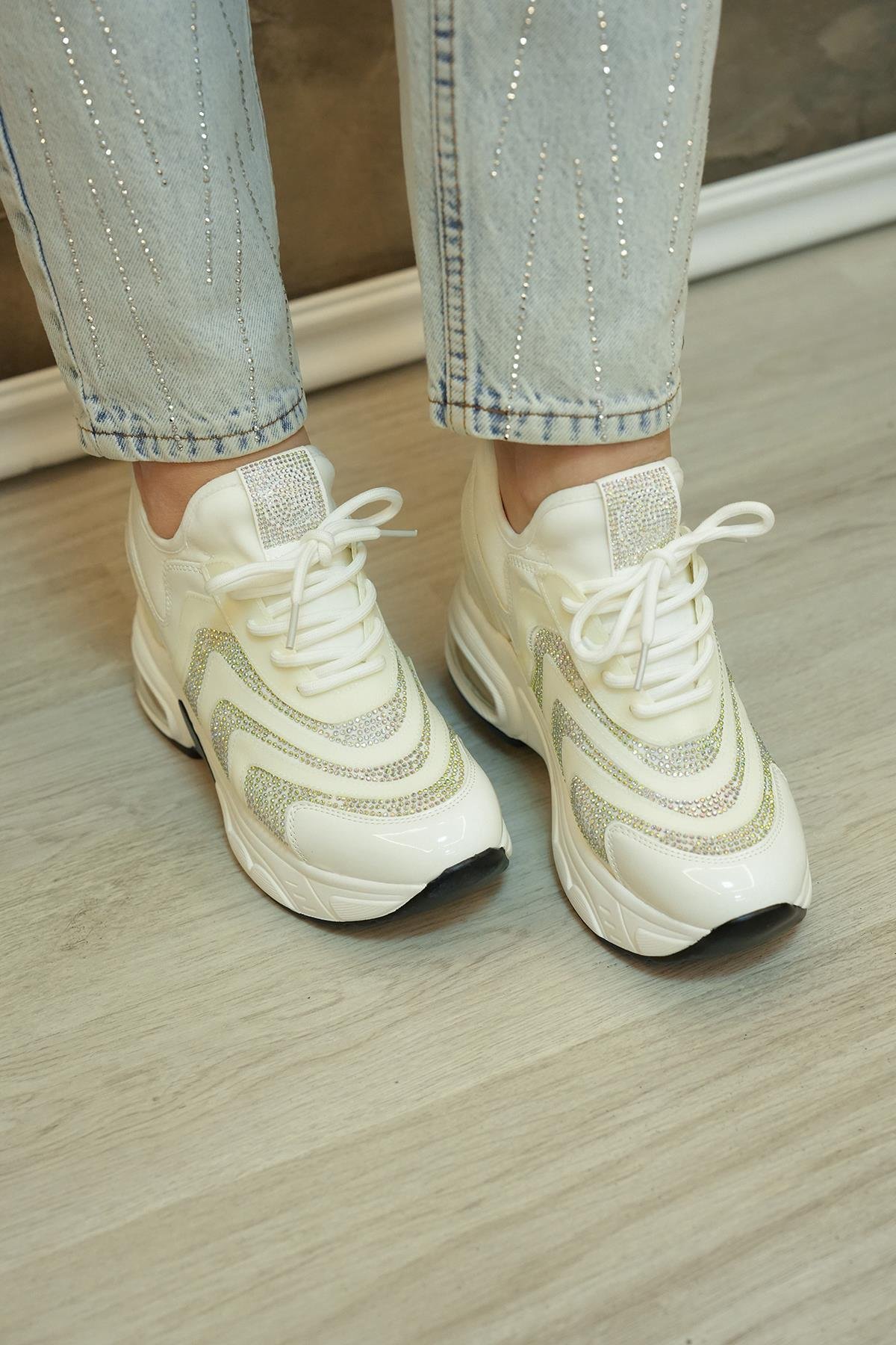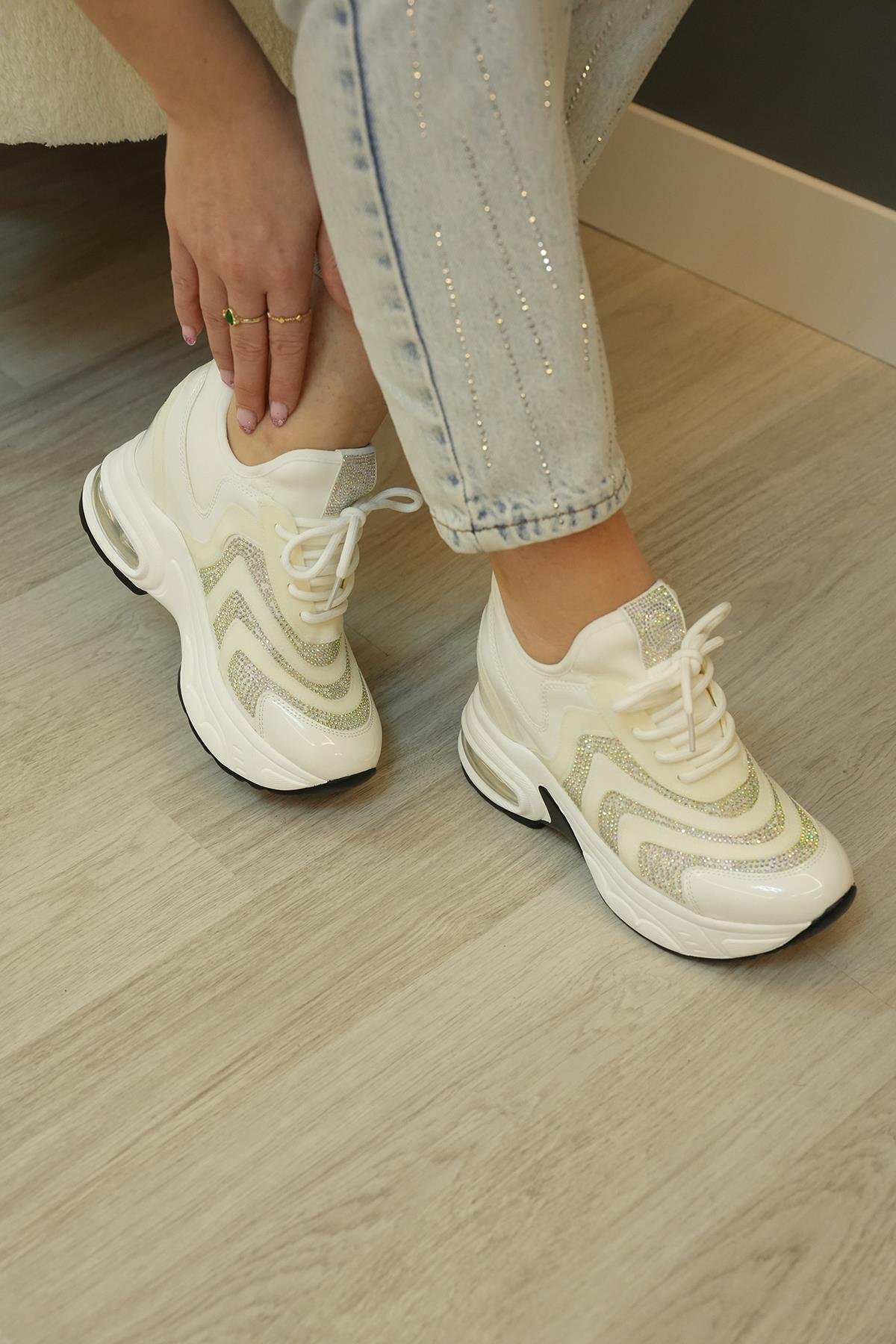 FREDA GUJA İTHAL ÖZEL SERİ İÇTEN GİZLİ DOLGU TAŞ DETAYLI TRİKO KADIN SPOR AYAKKABI BEYAZ