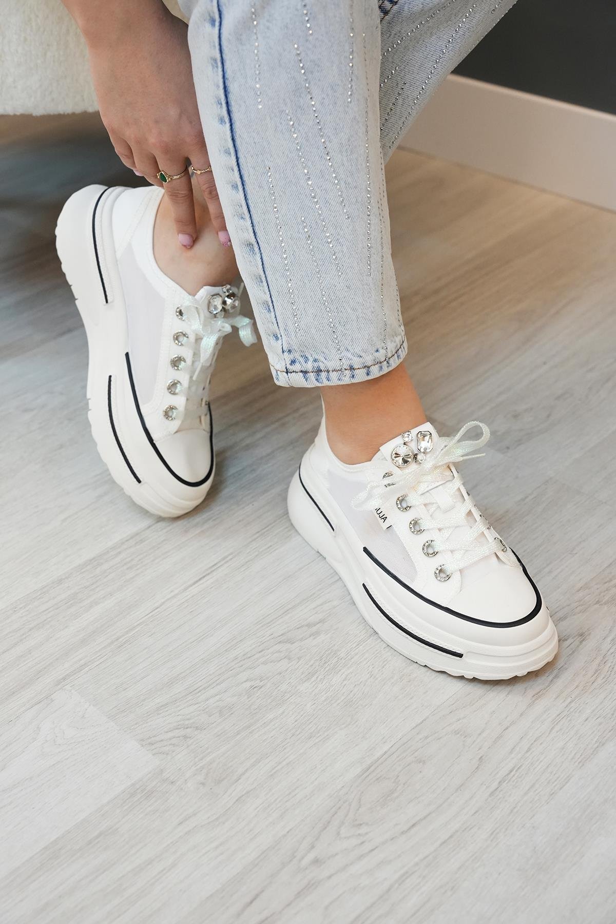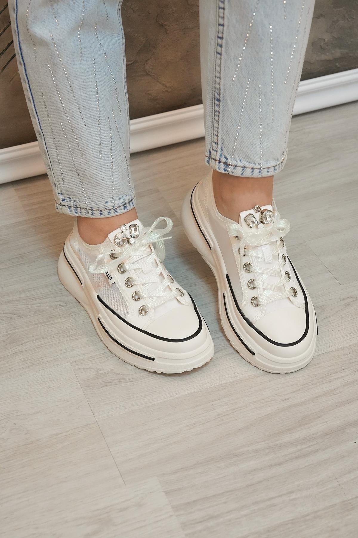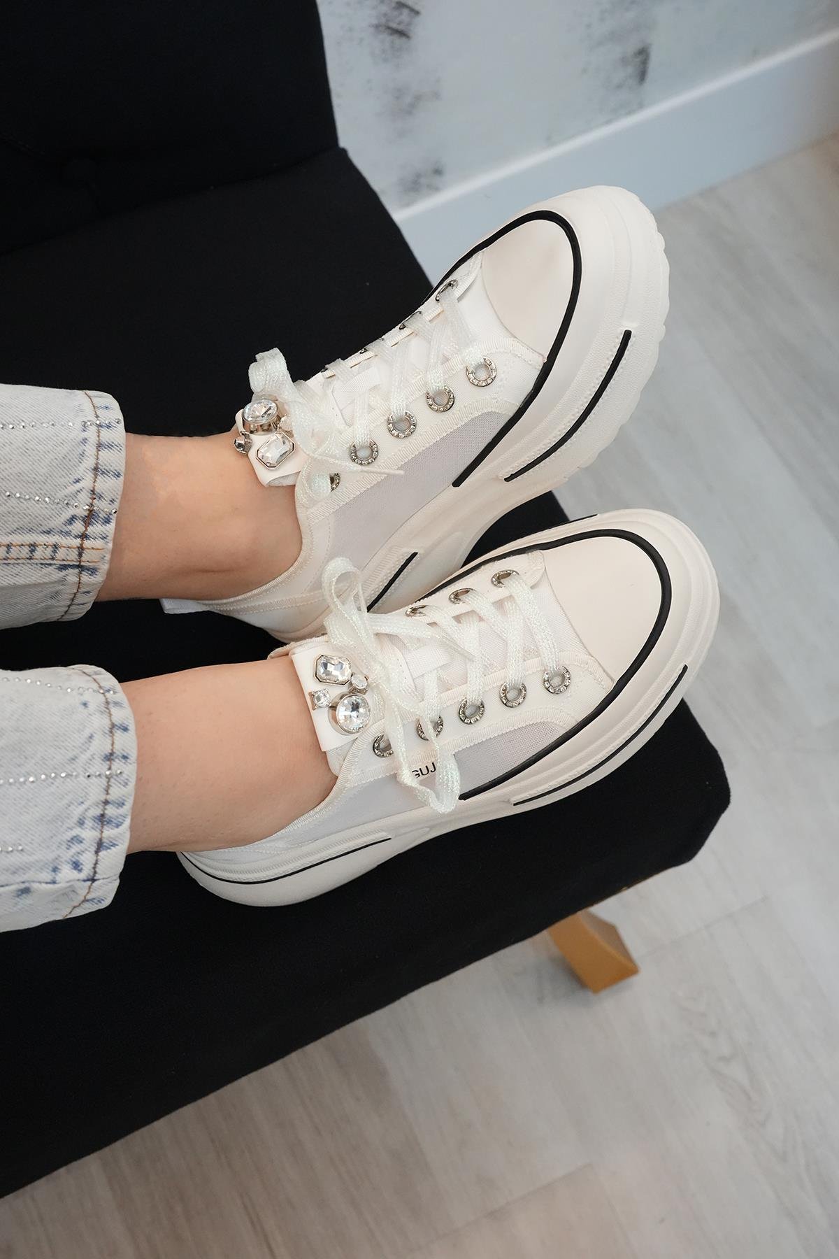 GİNA GUJA İTHAL ÖZEL SERİ TAŞ DETAYLI FİLELİ KADIN SPOR AYAKKABI BEYAZ