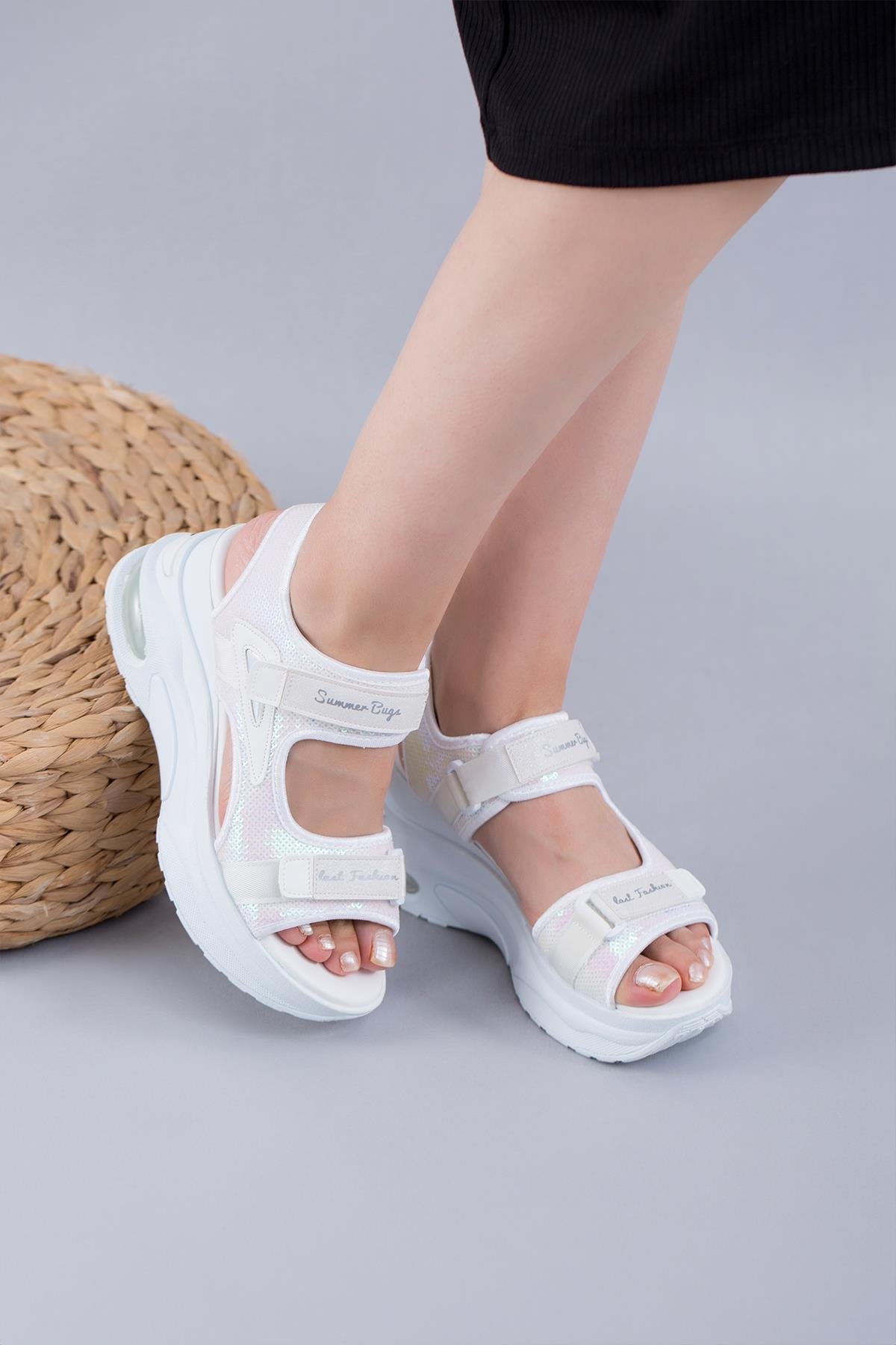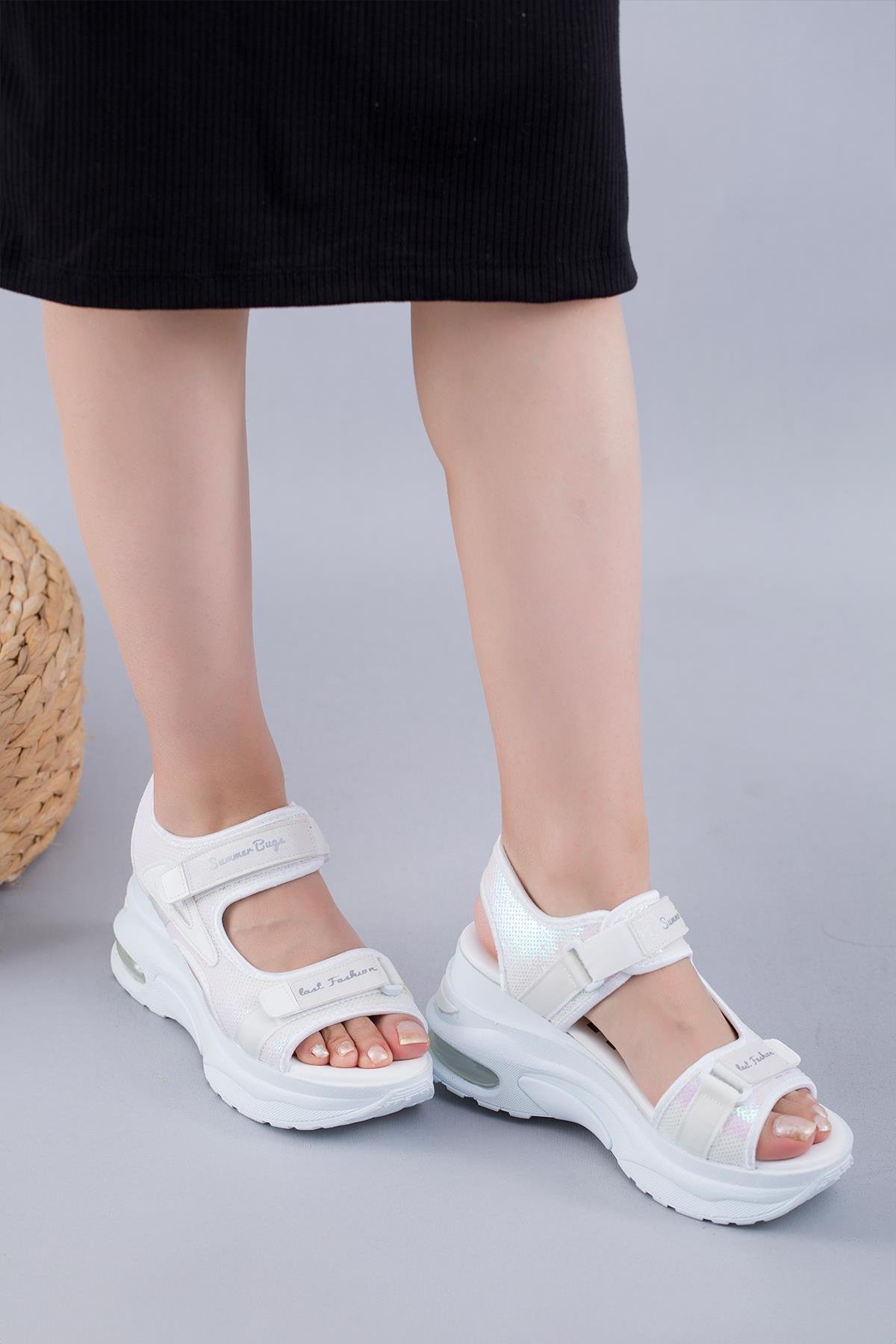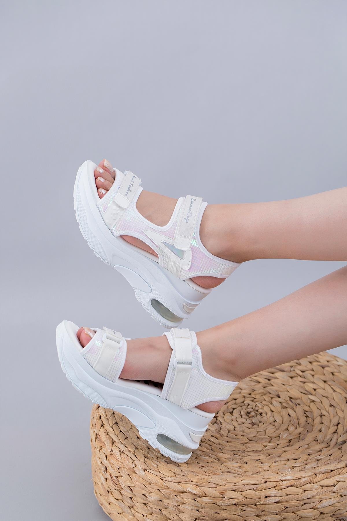 GLENNA PULLU KALIN TABAN KADIN SANDALET BEYAZ