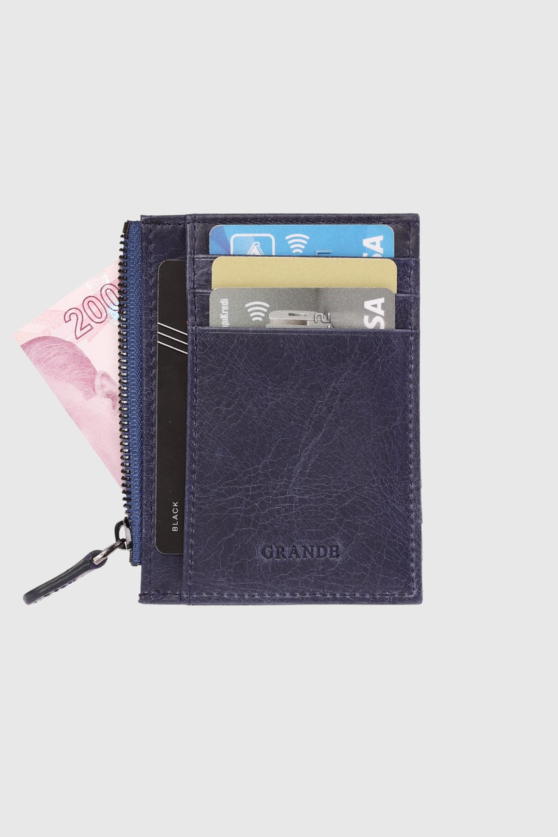 GRANDE HAKİKİ DERİ KARTLIK 853 CRAZY MAVİ