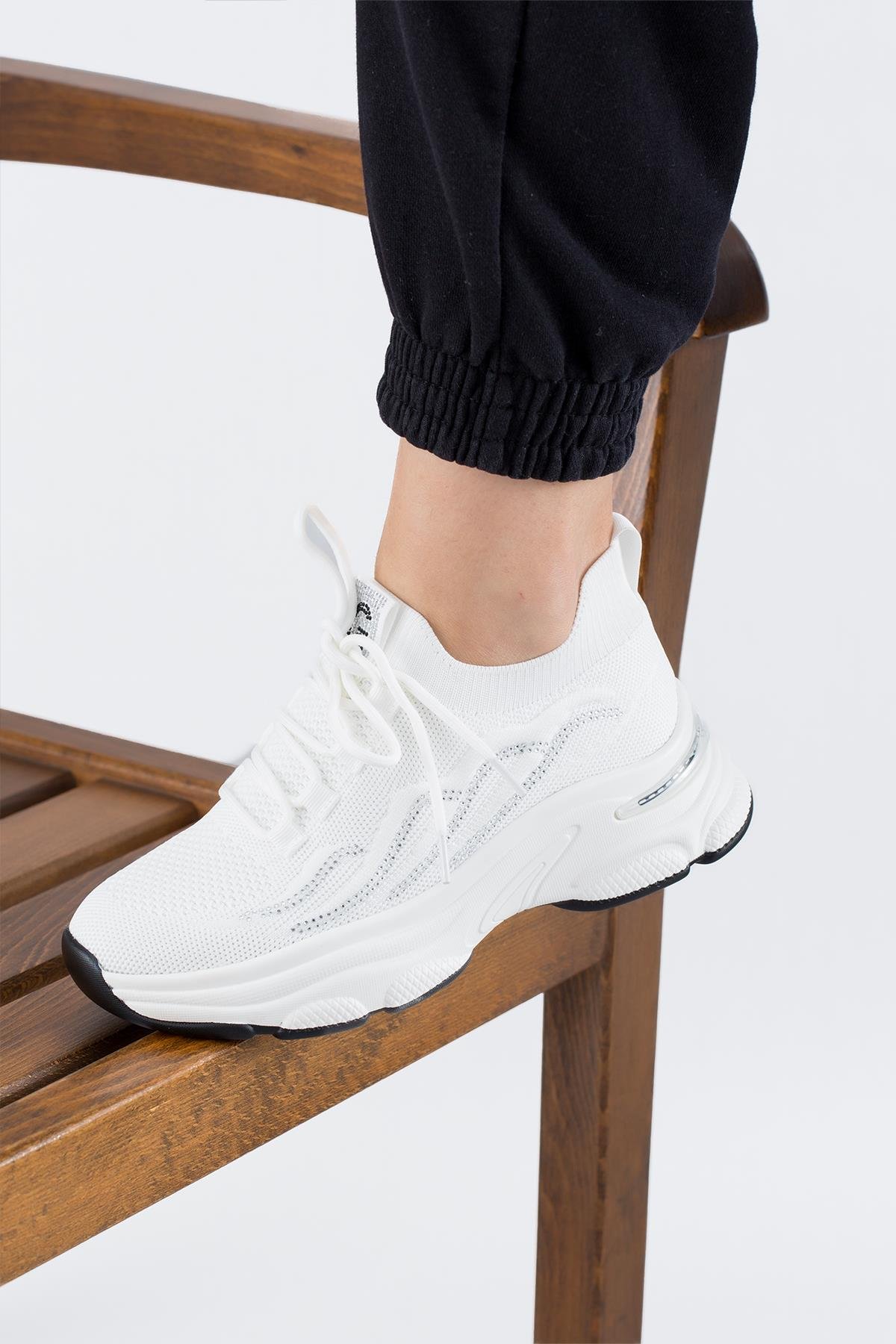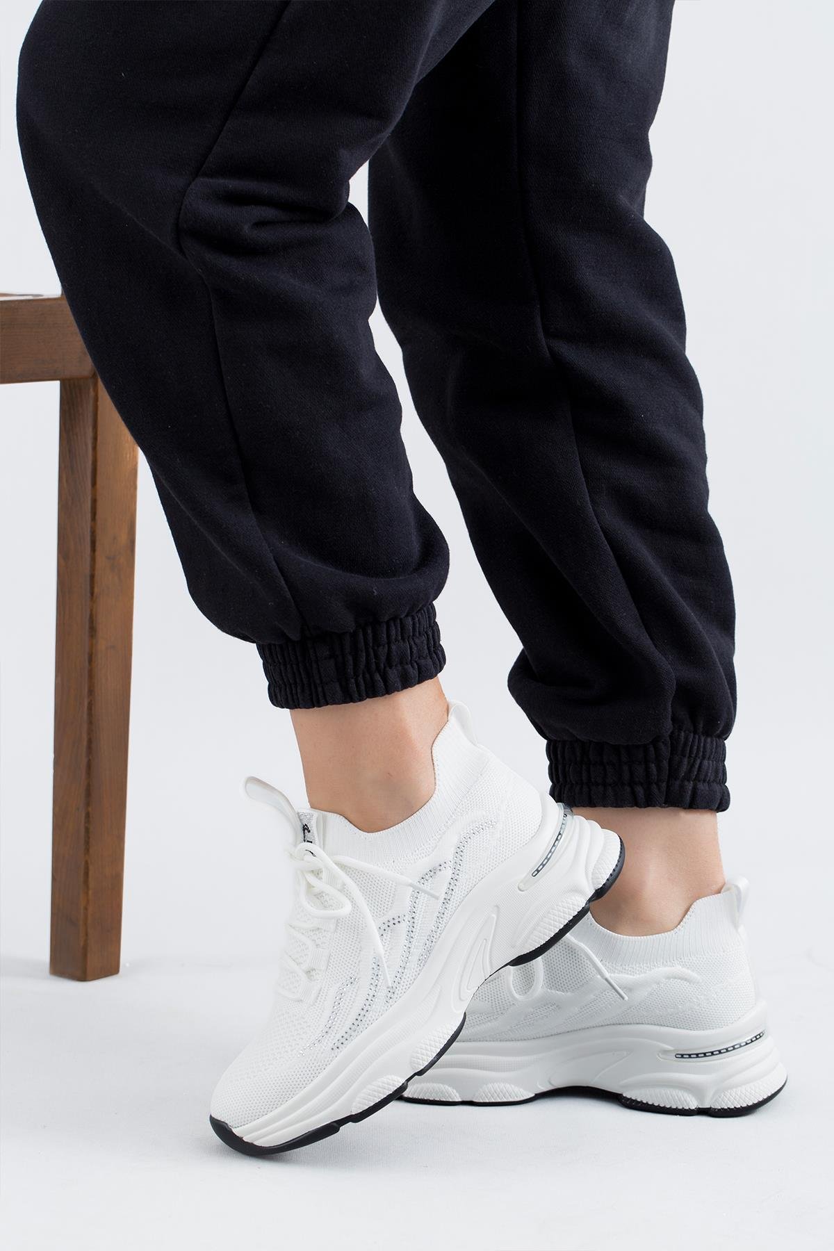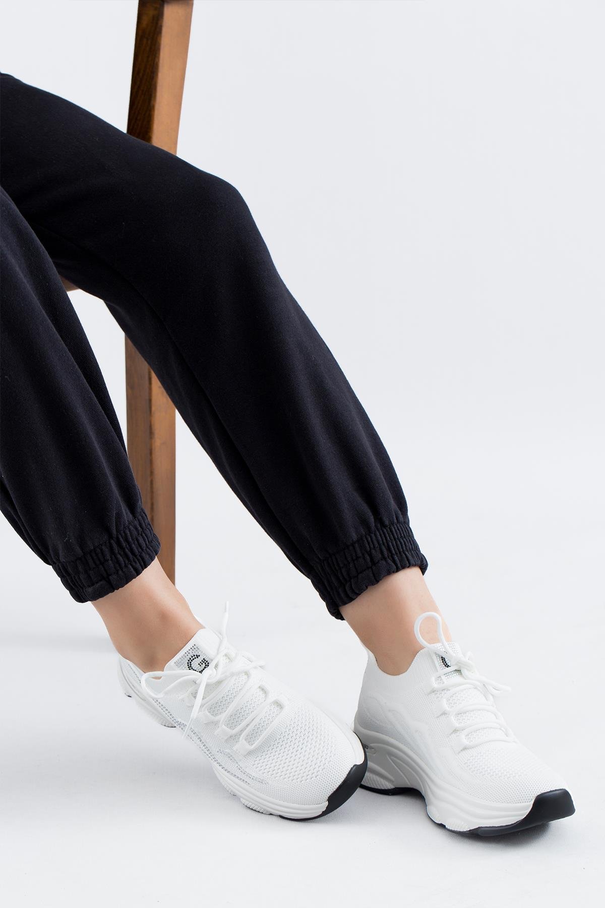 GUJA İTHAL ÖZEL SERİ TAŞ DETAYLI TRİKO KADIN SPOR AYAKKABI 24Y309 BEYAZ