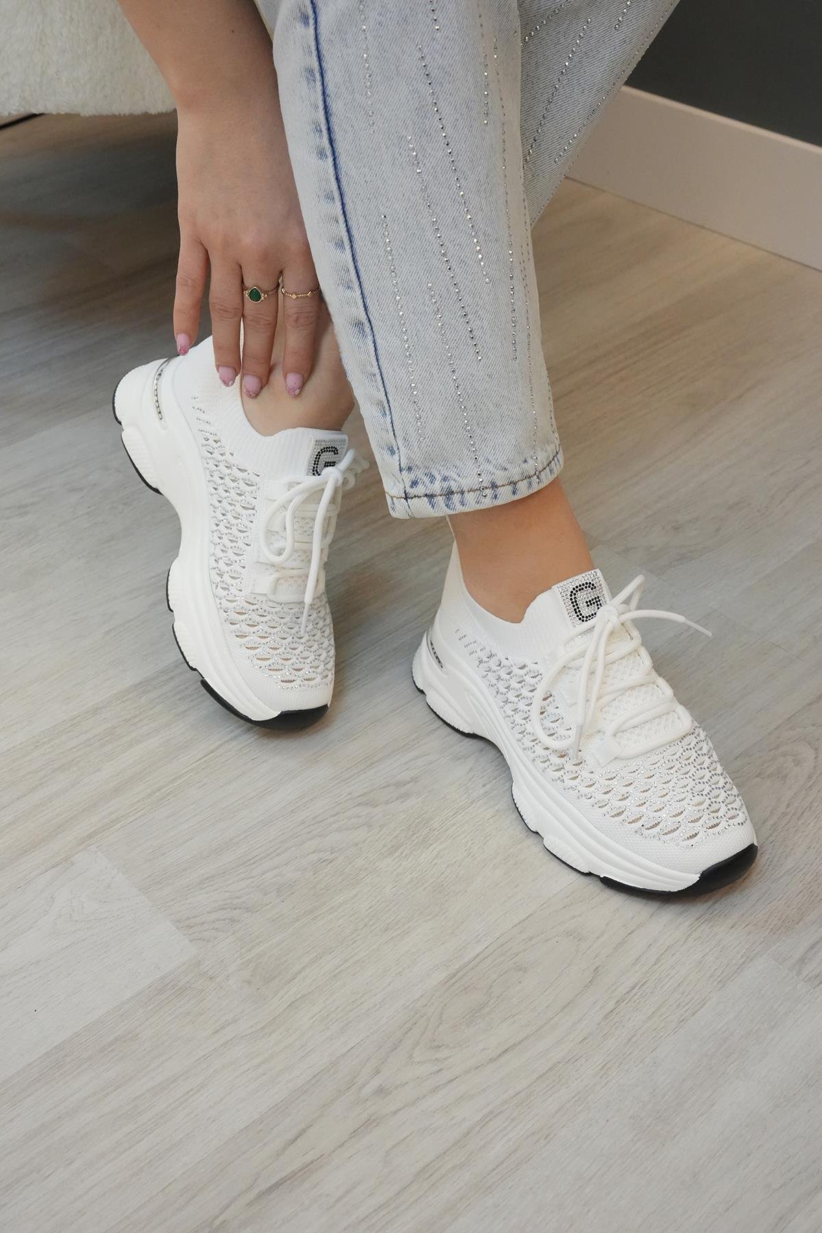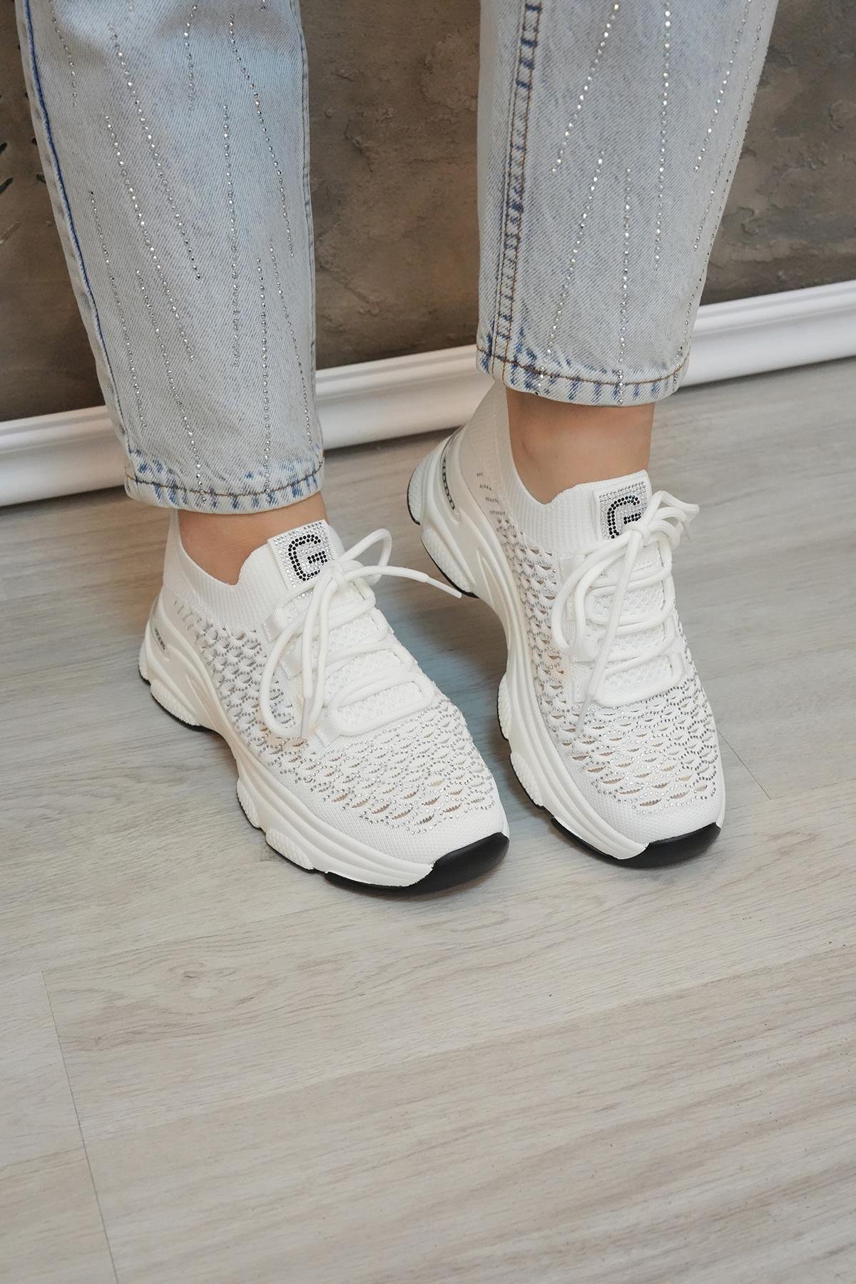 GUJA İTHAL ÖZEL TASARIM TRİKO KADIN SPOR AYAKKABI 24Y309-3 BEYAZ