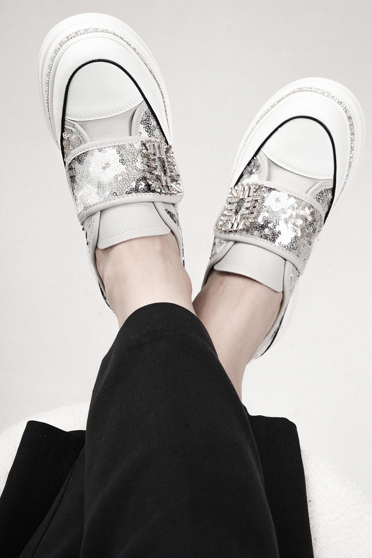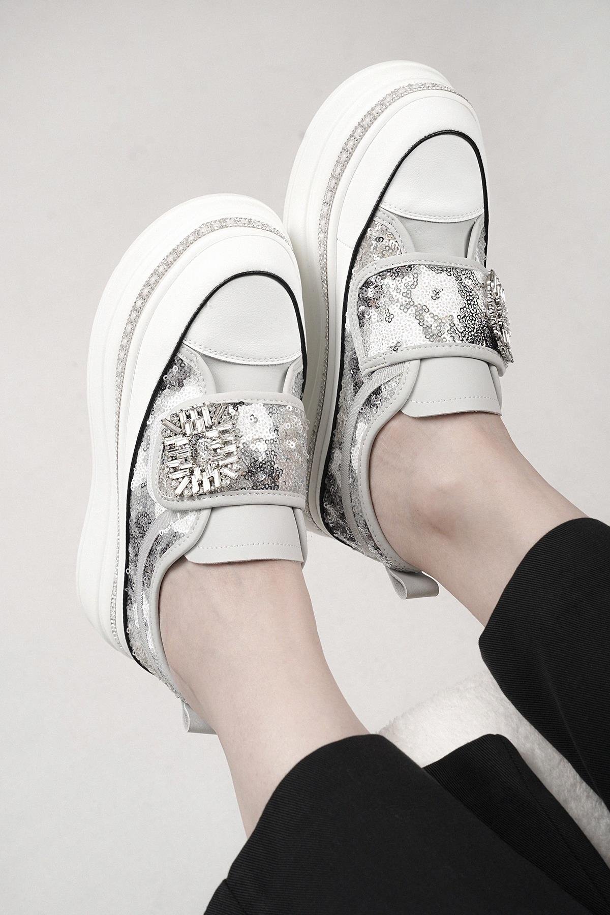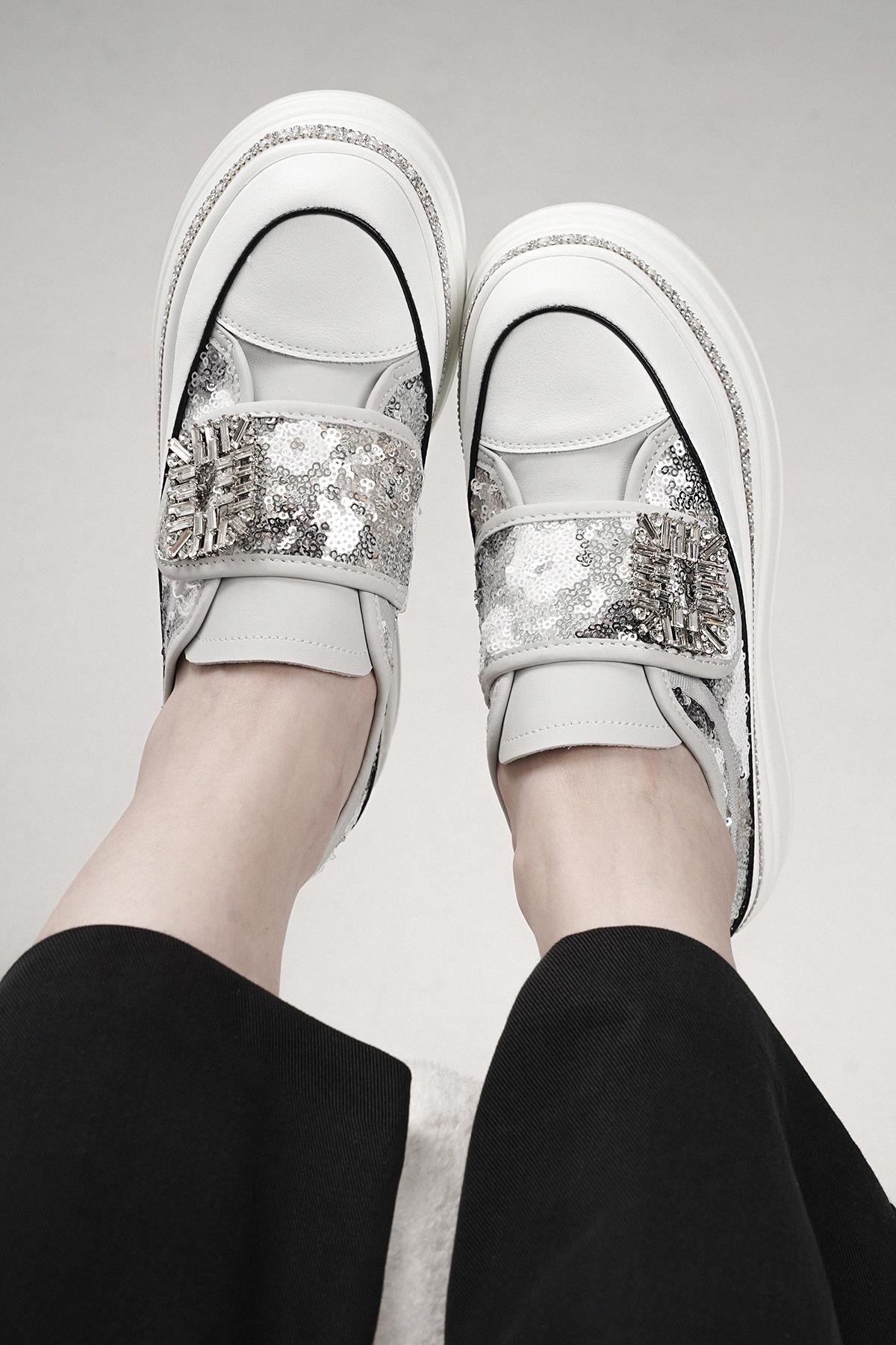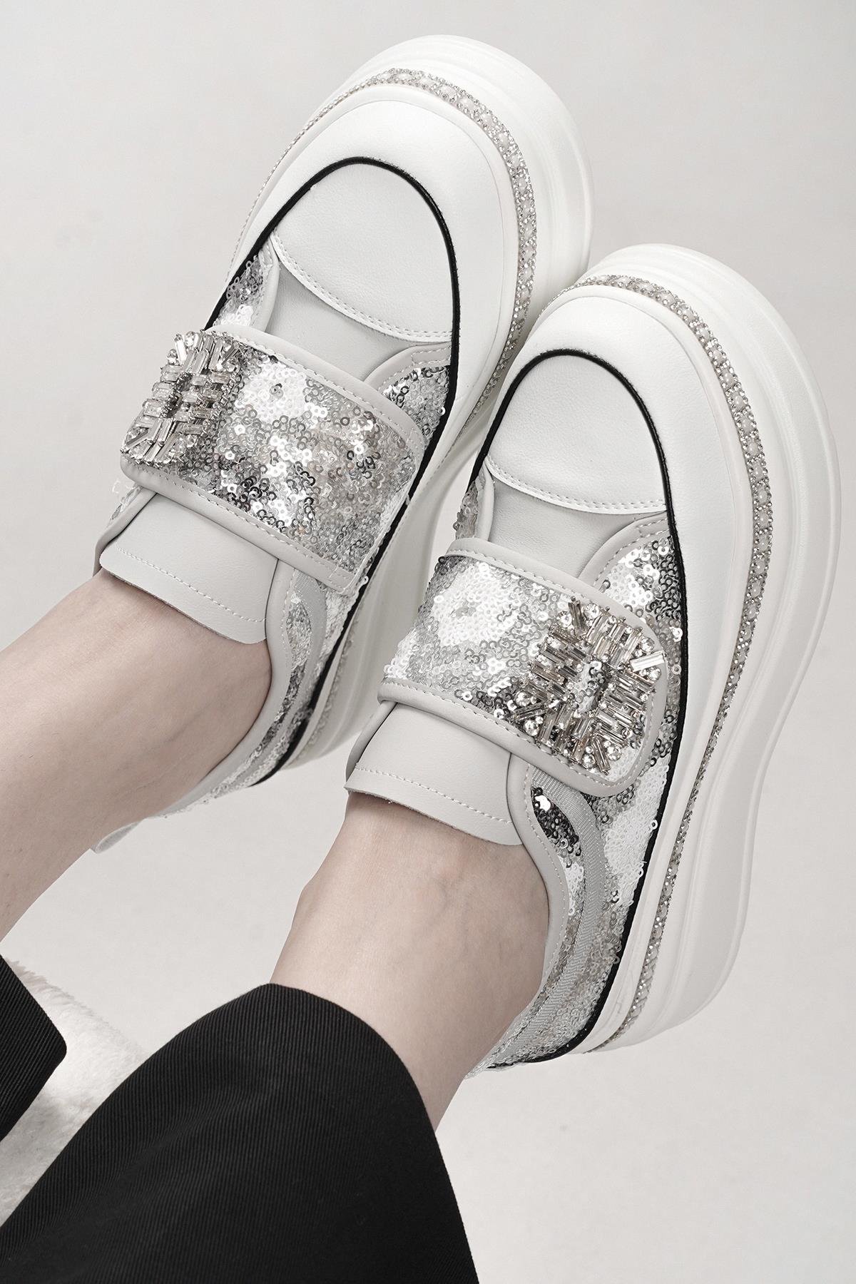 JAMİE GUJA İTHAL ÖZEL SERİ TABAN TAŞ DETAYLI PULLU CIRTLI KADIN SPOR AYAKKABI GRİ