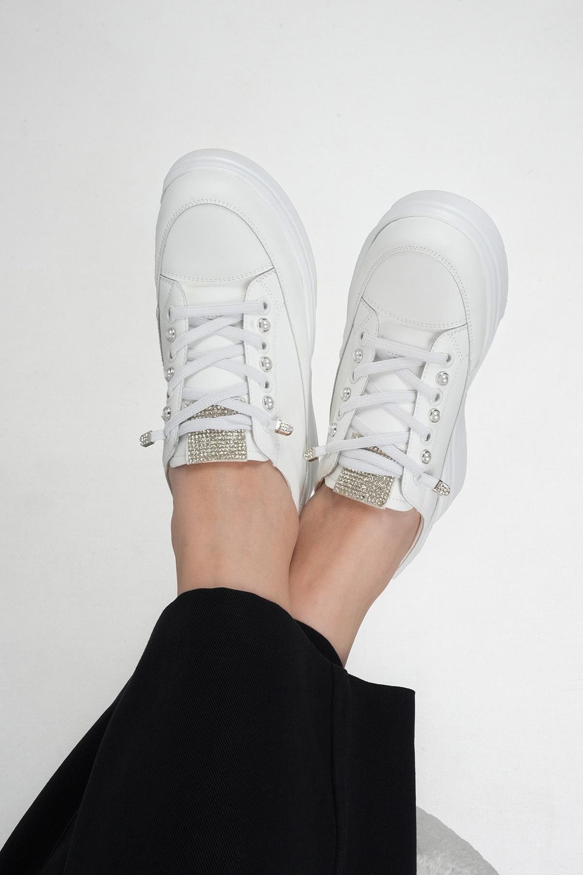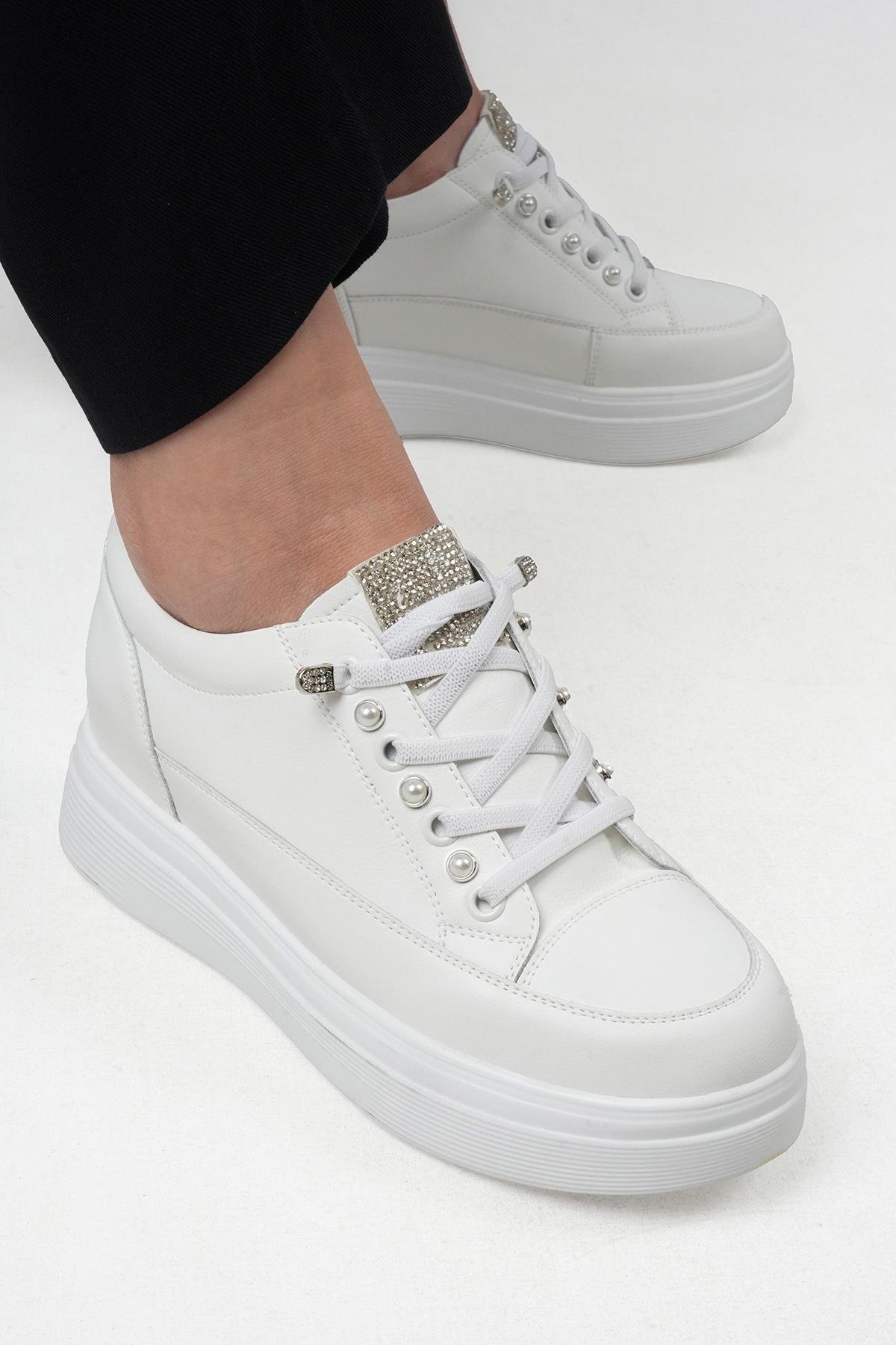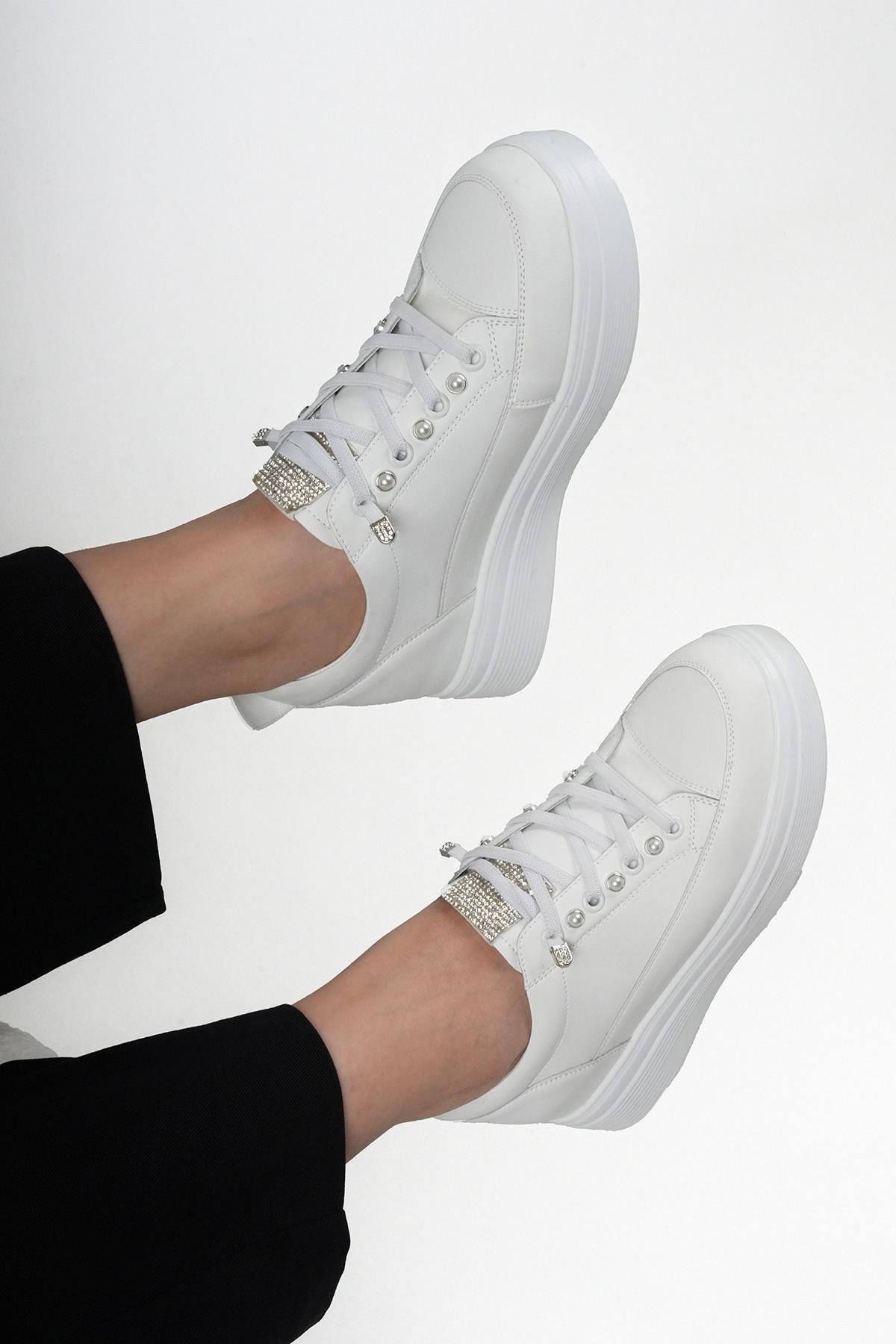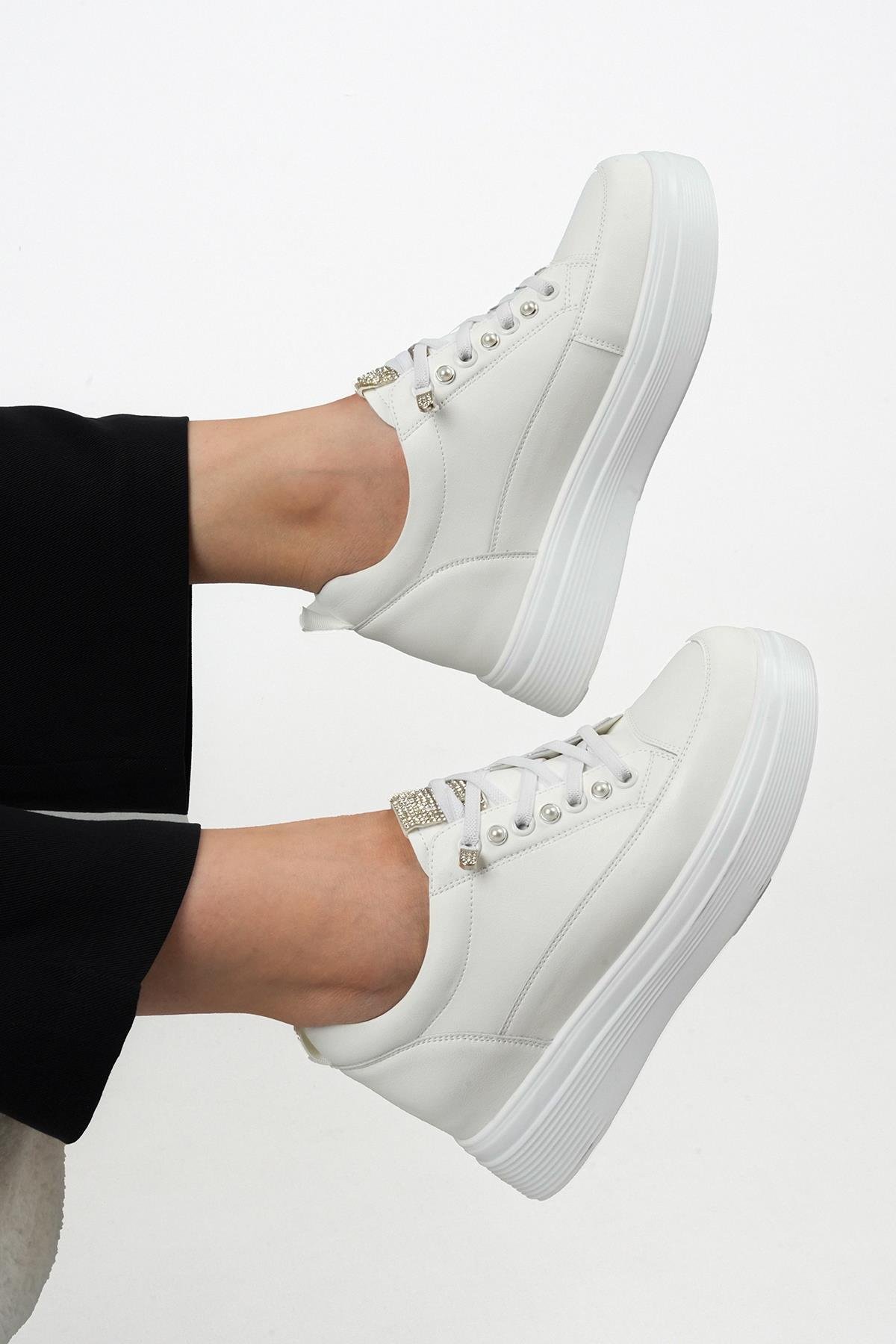 JASMİNE ORİJİNAL KRİSTE BELL ÖZEL SERİ İNCİ VE TAŞ DETAYLI KADIN SPOR AYAKKABI BEYAZ