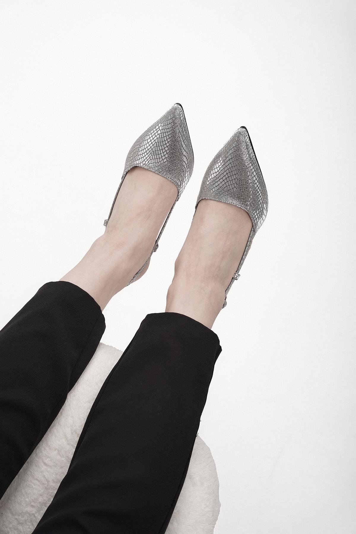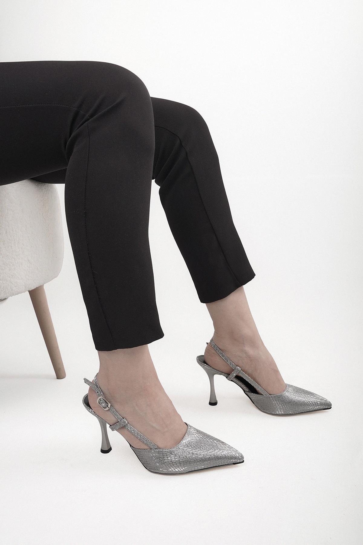 JEWEL ARKA AÇIK KADIN TOPUKLU AYAKKABI PLATİN