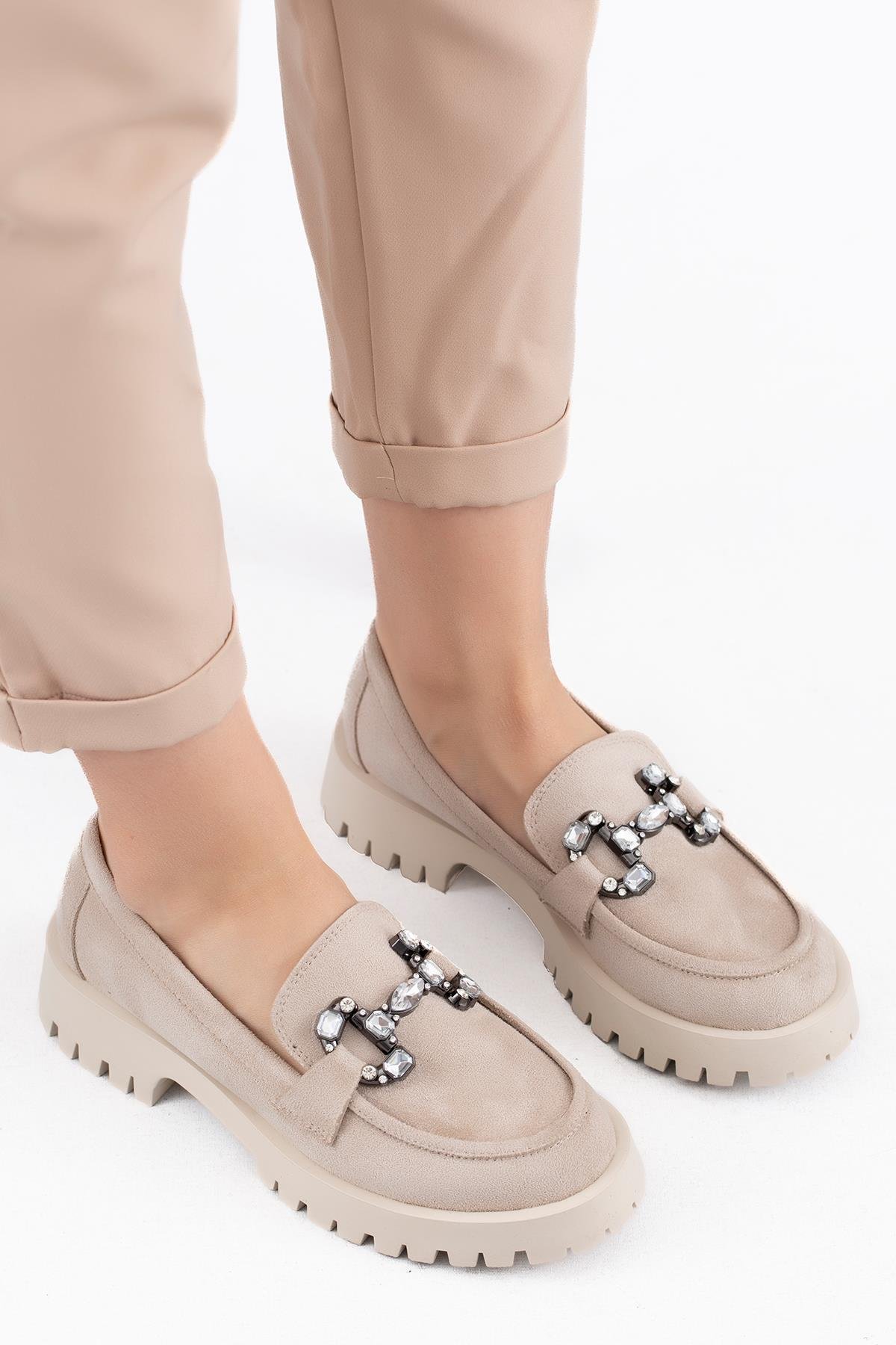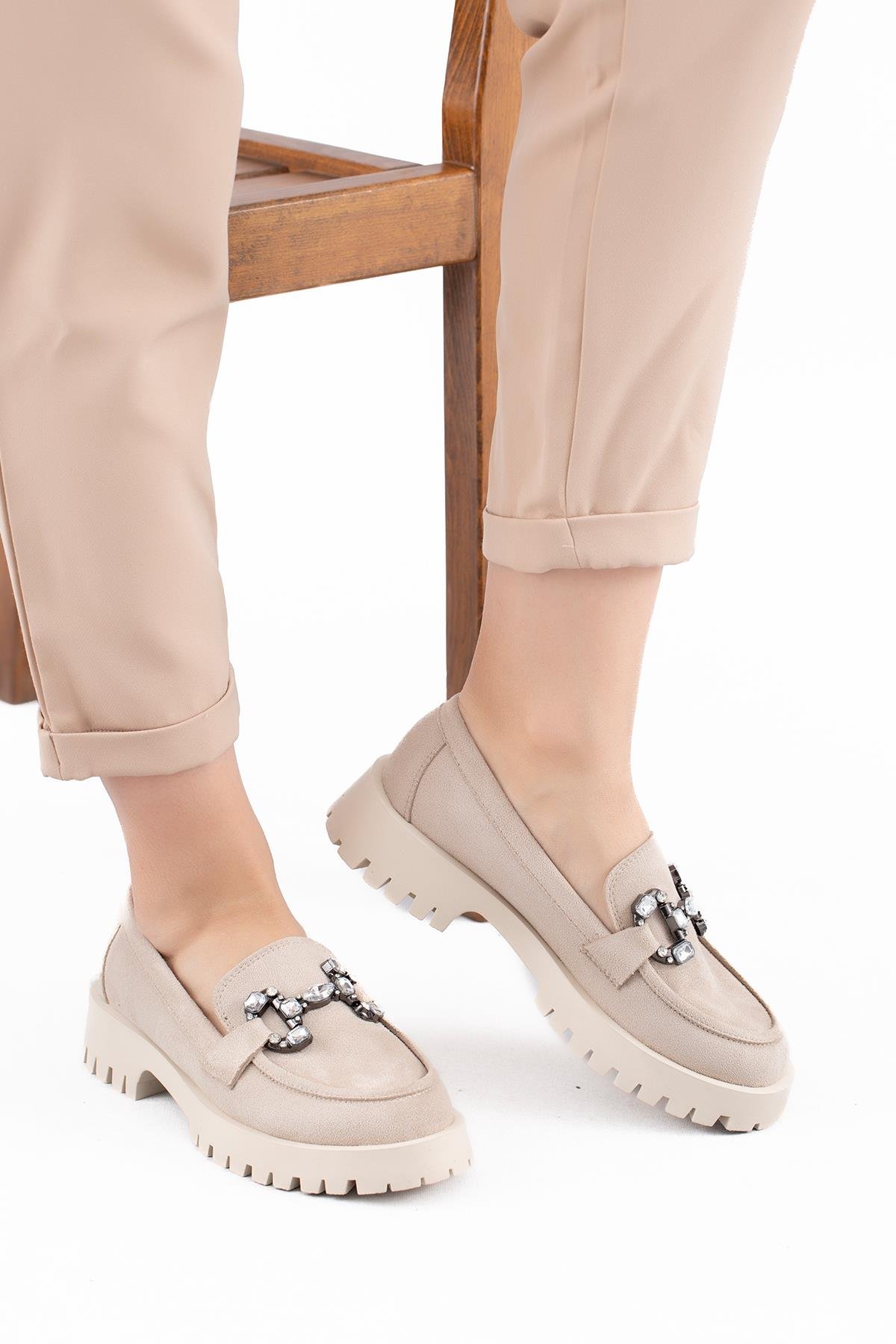 JİLLİAN TAŞ DETAYLI KADIN AYAKKABI SÜET BEJ
