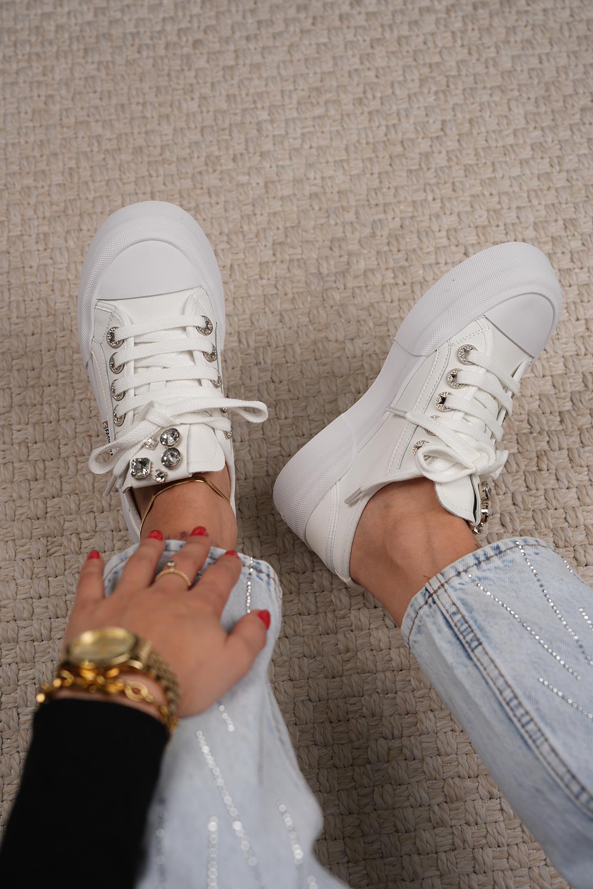 JODİ ORİJİNAL KRİTE BELL TAŞ DETAYLI İTHAL ÖZEL SERİ KADIN SPOR AYAKKABI BEYAZ
