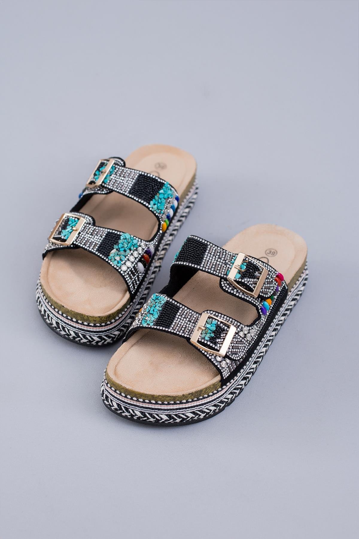 JULİANA ORİJİNAL GUJA İTHAL TAŞL DETAYLI KADIN TERLİK SİYAH