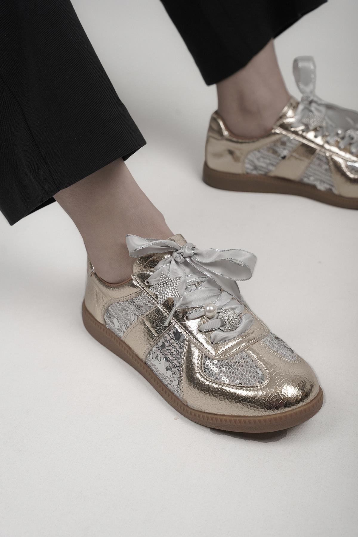 KAMİLA GUJA İTHAL ÖZEL SERİ TAŞ VE PUL DETAYLI KADIN SPOR AYAKKABI GÜMÜŞ KAMİLA GUJA İTHAL ÖZEL SERİ TAŞ VE PUL DETAYLI KADIN SPOR AYAKKABI ALTIN