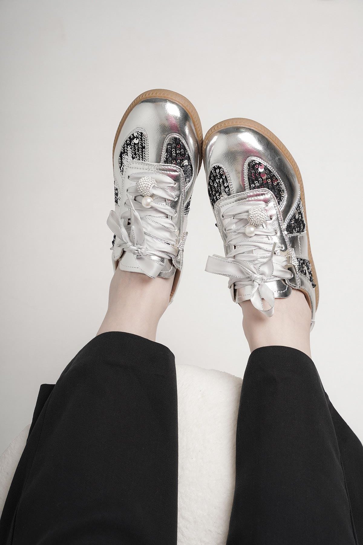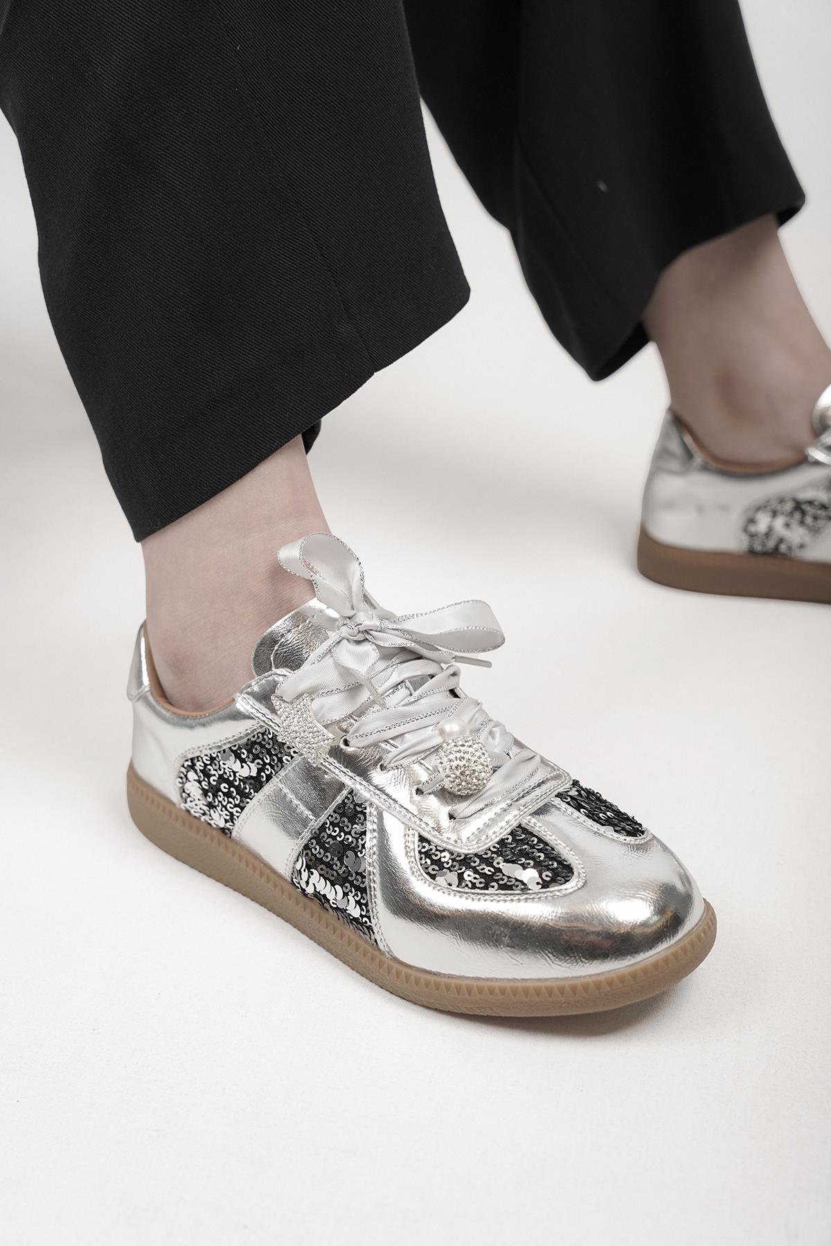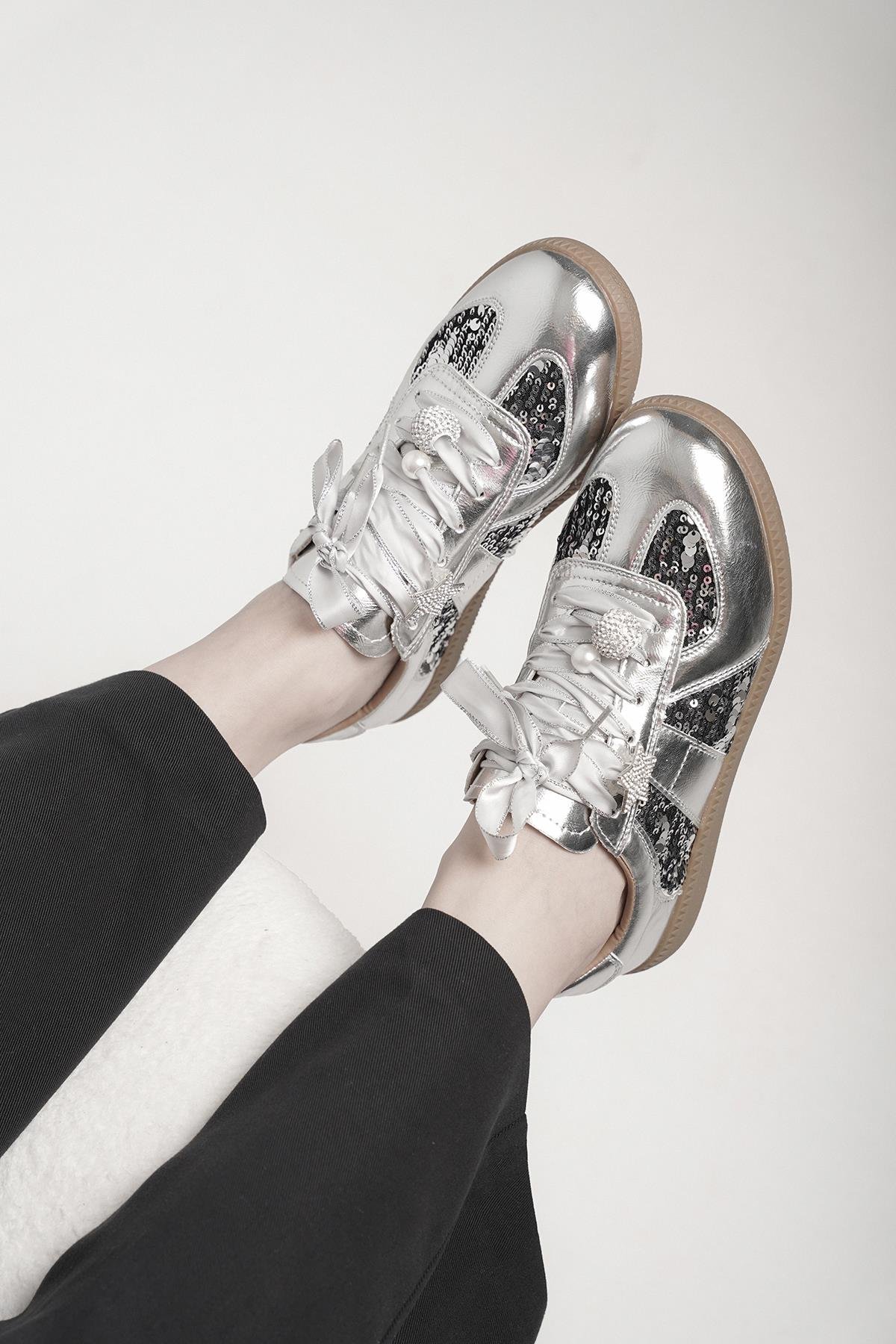KAMİLA GUJA İTHAL ÖZEL SERİ TAŞ VE PUL DETAYLI KADIN SPOR AYAKKABI GÜMÜŞ