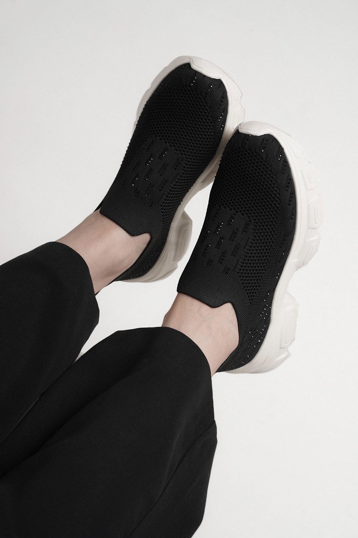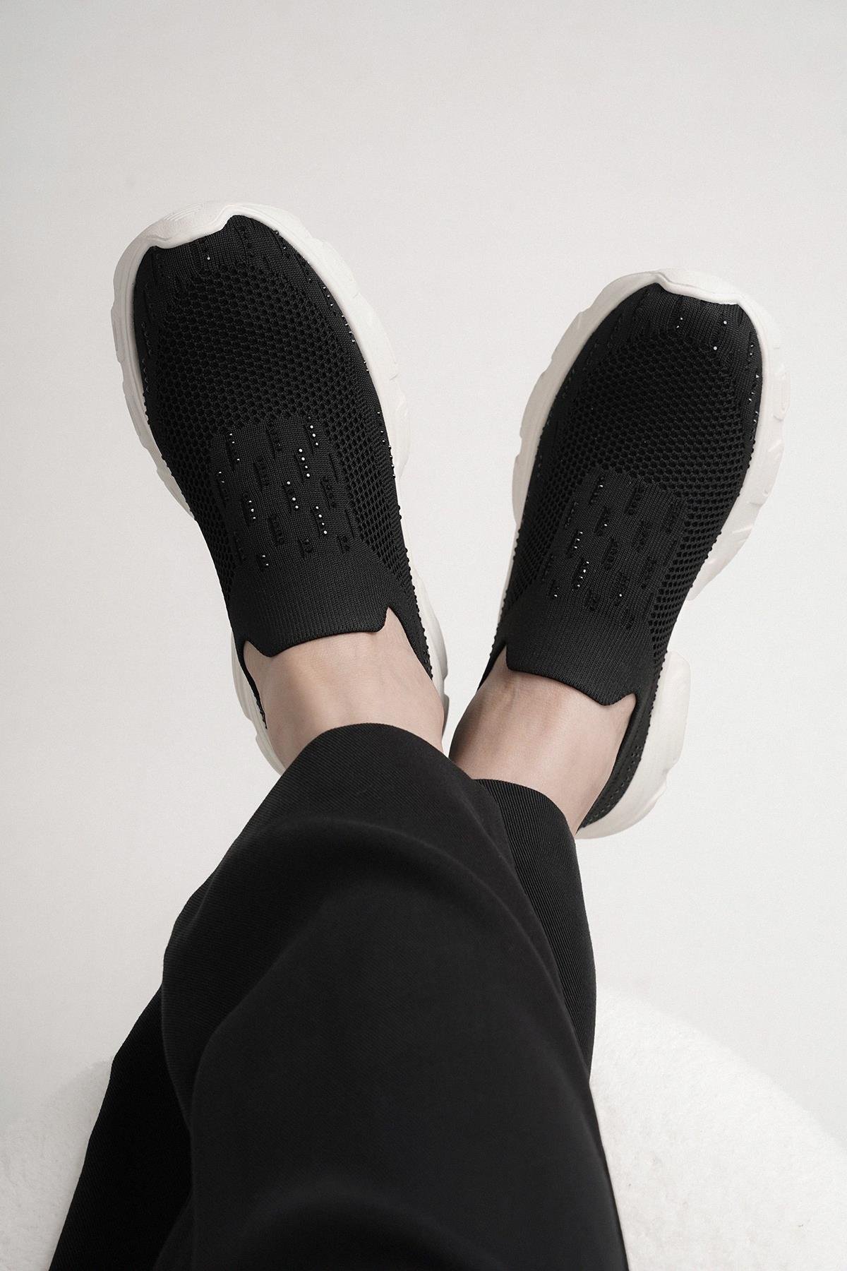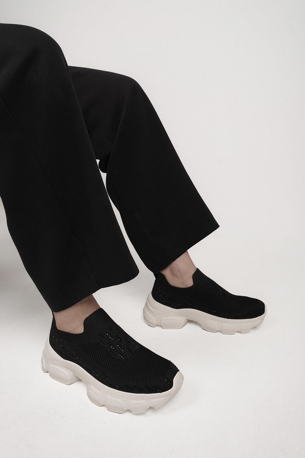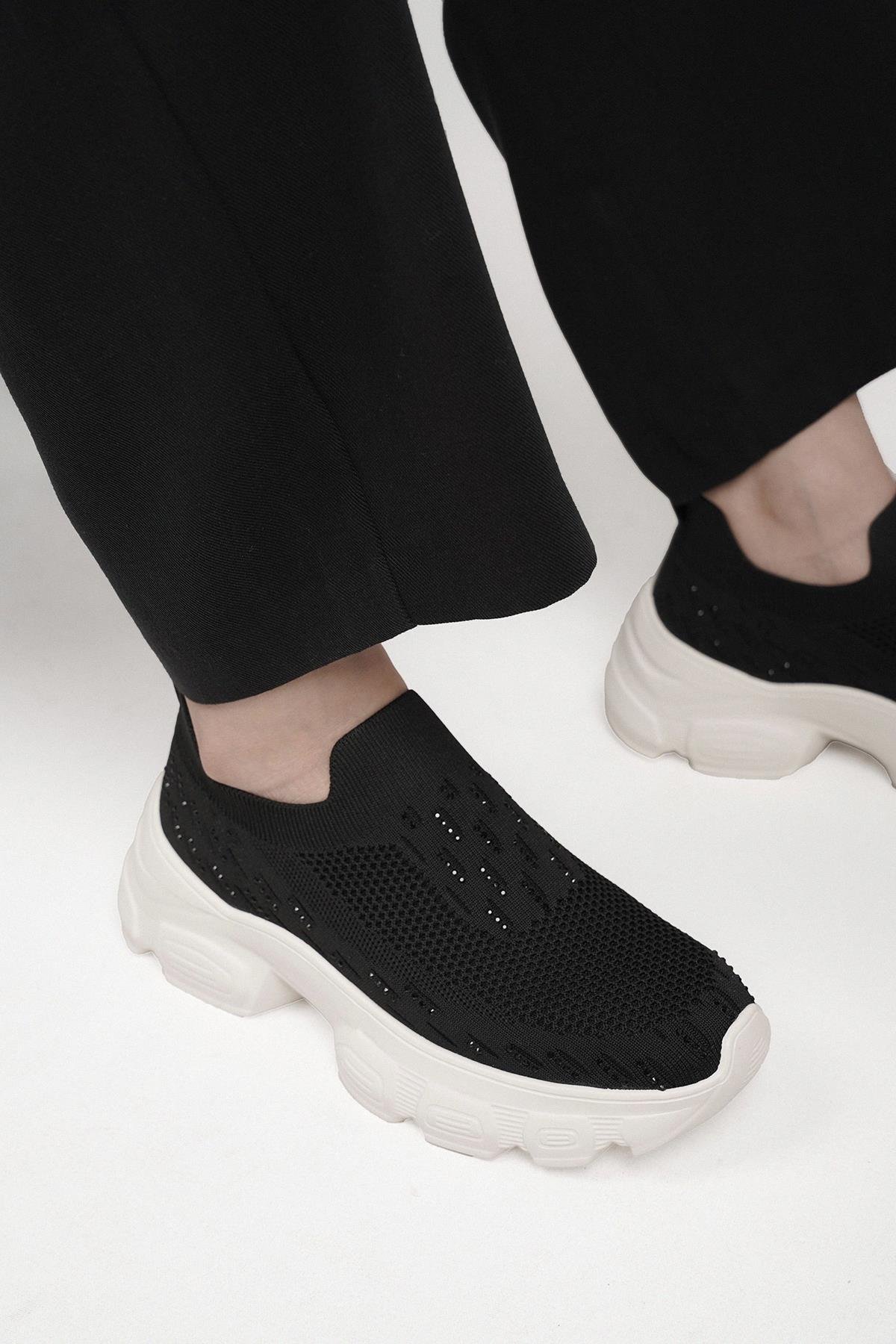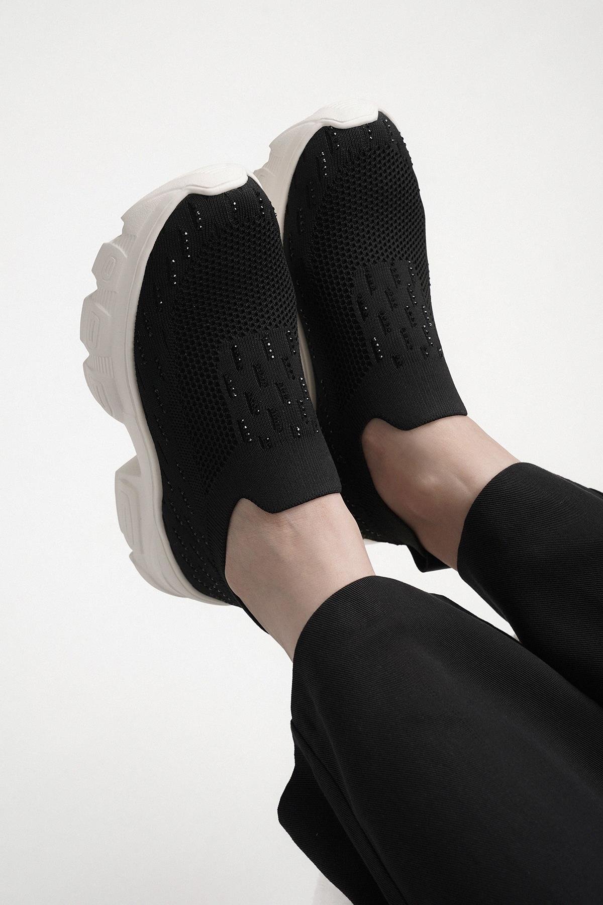LEOLA GUJA İTHAL ÖZEL SERİ TAŞ DETAYLI TRİKO KADIN SPOR AYAKKABI SİYAH