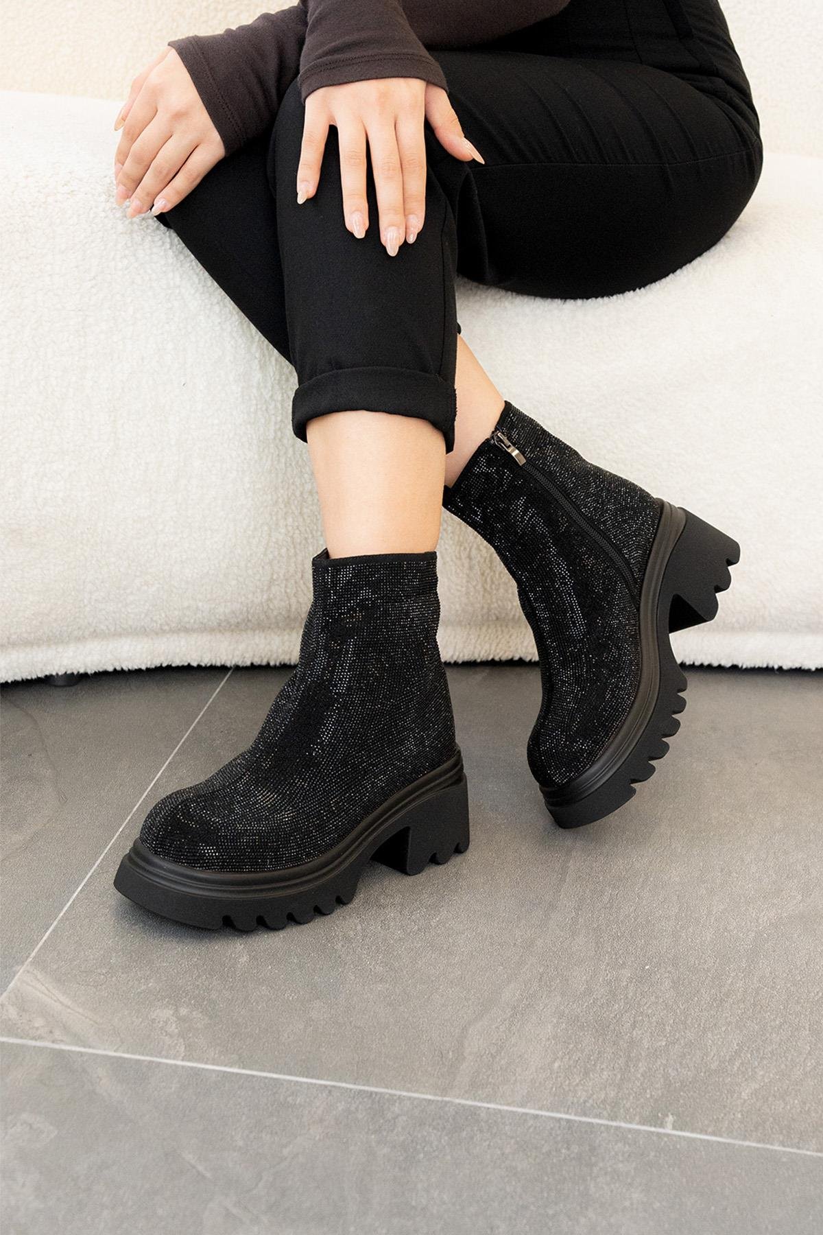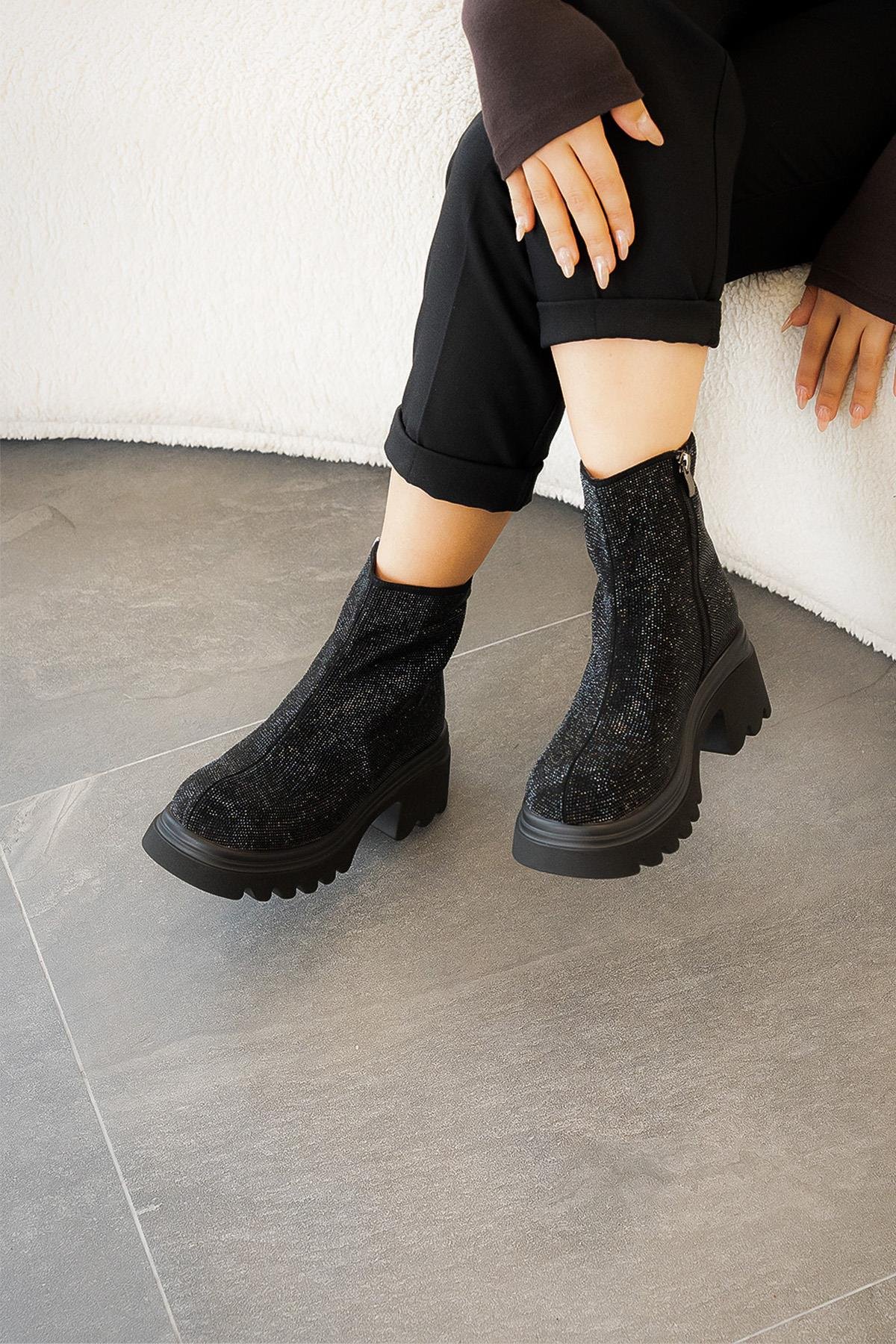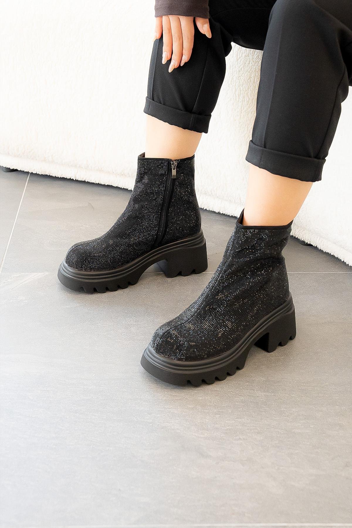 LESLİE ORİJİNAL KRİSTE BELL İTHAL ÖZEL SERİ TAŞ DETAYLI KADIN BOT SİYAH