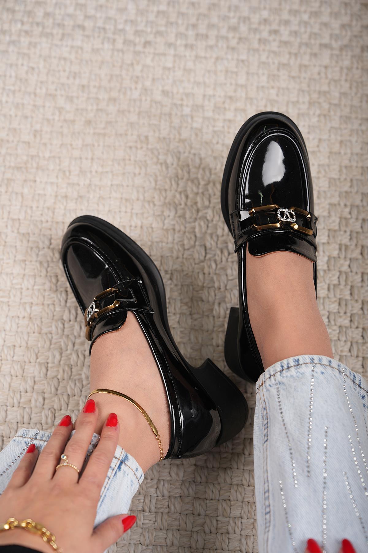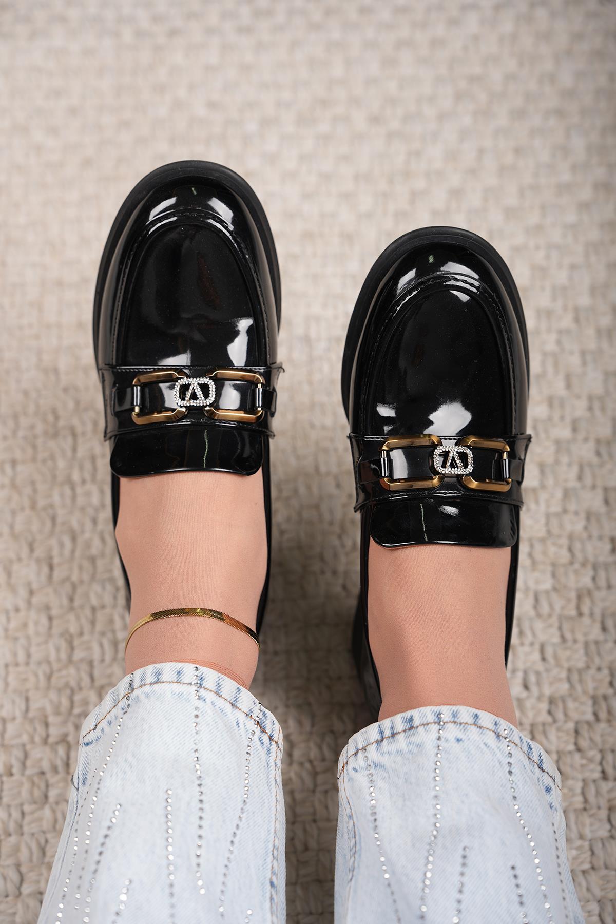 LETA İTHAL TAŞ TOKA DETAYLI RUGAN KADIN AYAKKABI RUGAN SİYAH