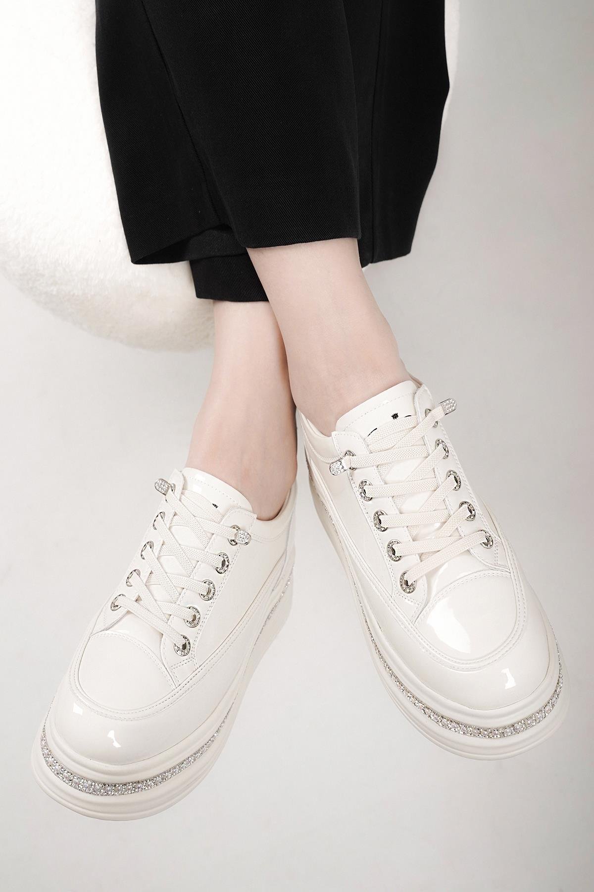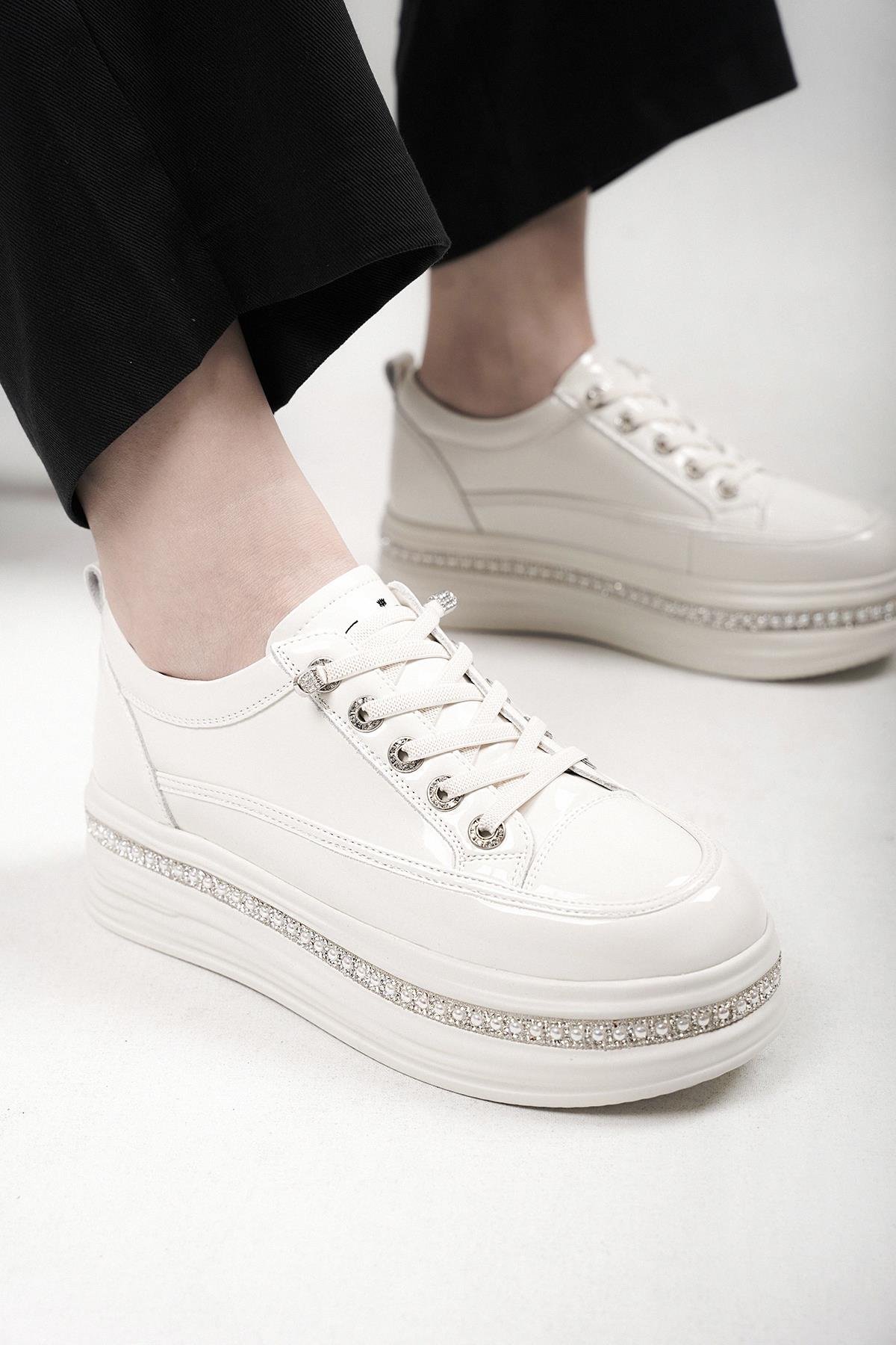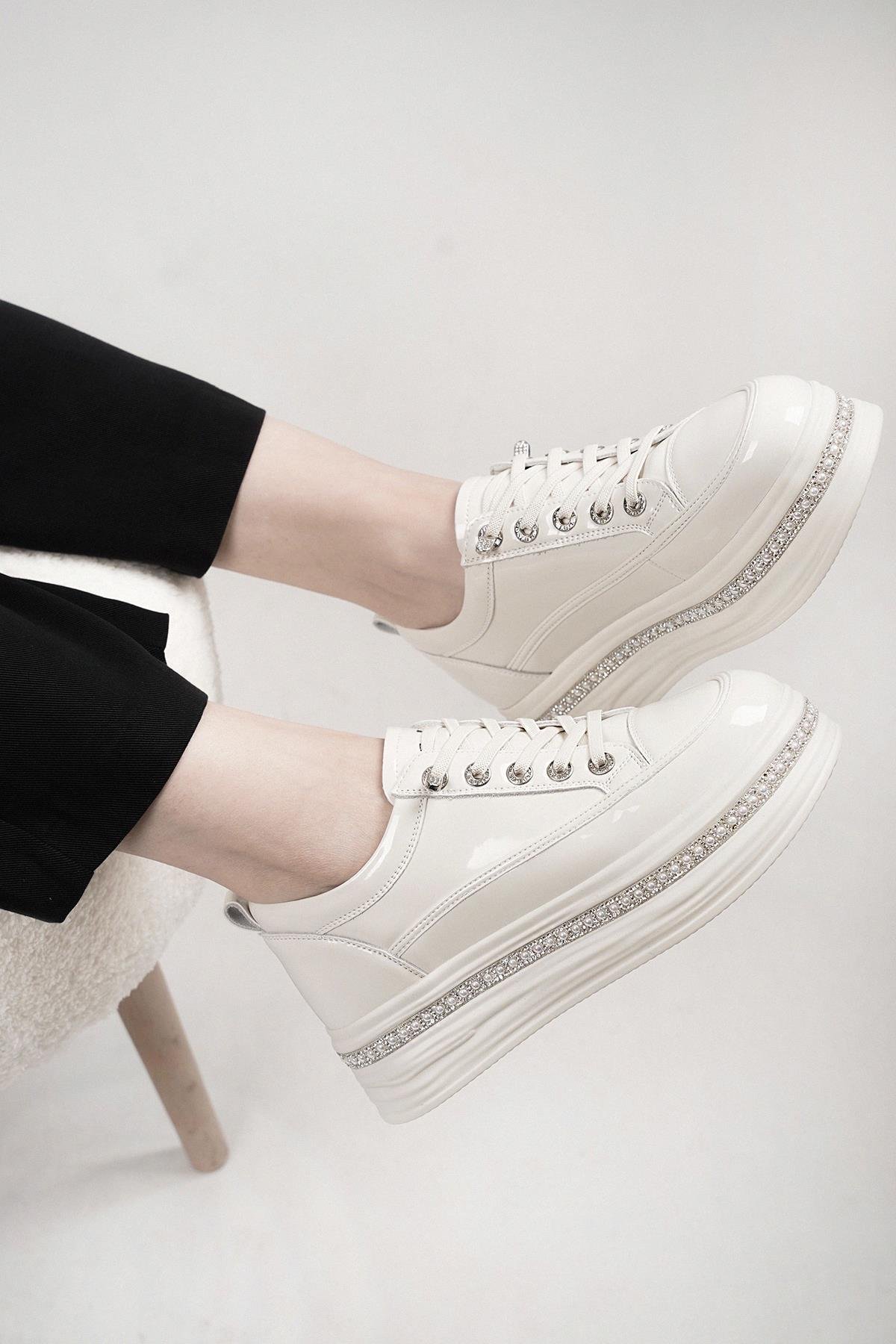 LONA GUJA İTHAL ÖZEL SERİ TABAN İNCİ DETAYLI RUGAN KADIN SPOR AYAKKABI BEJ