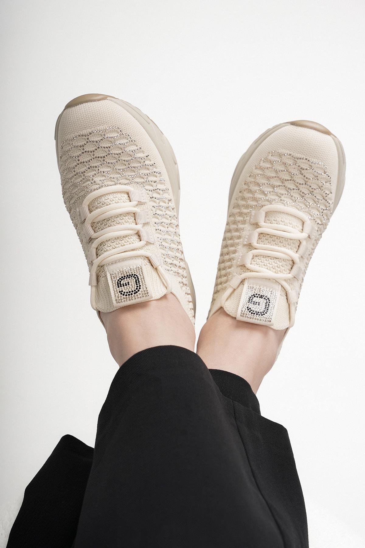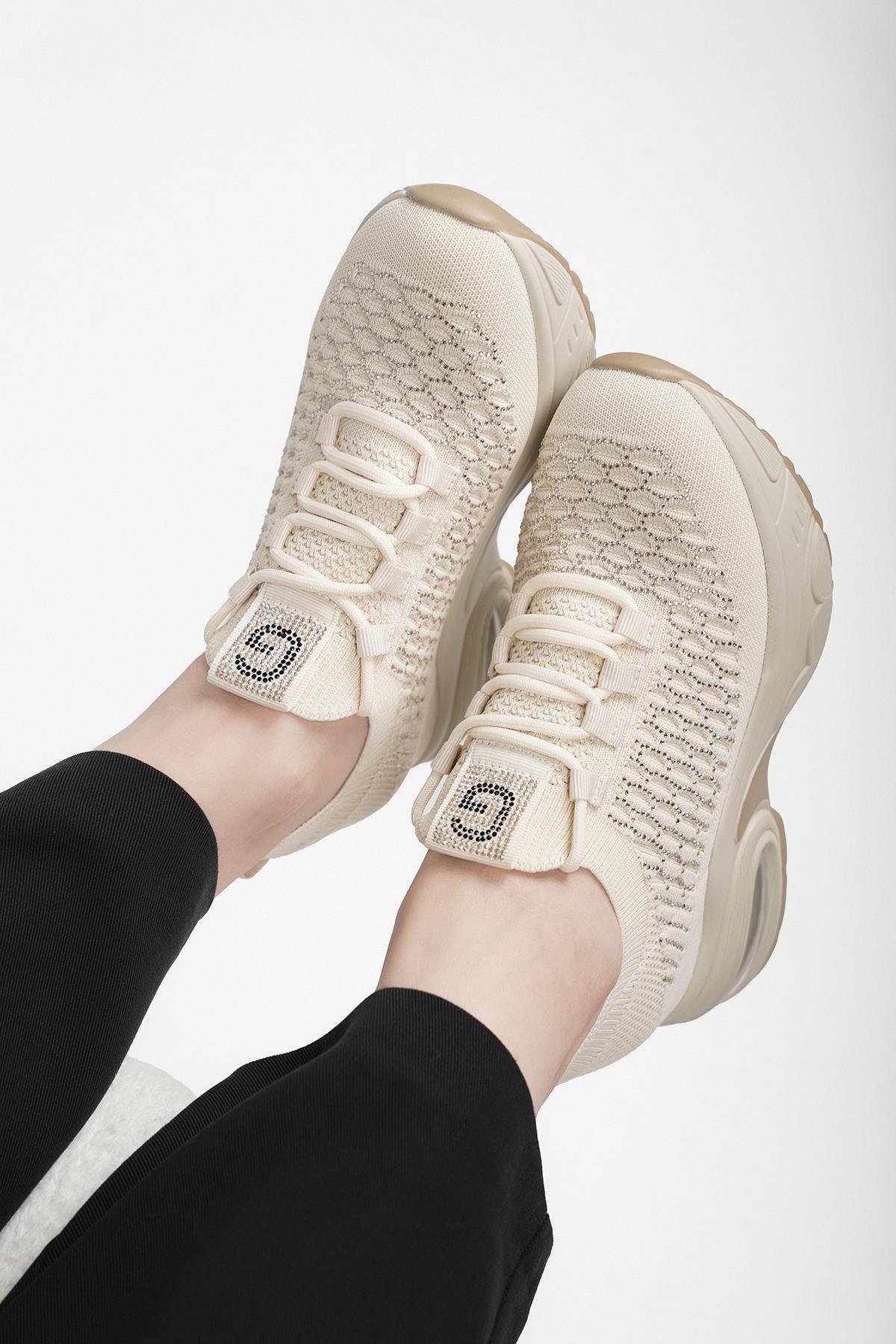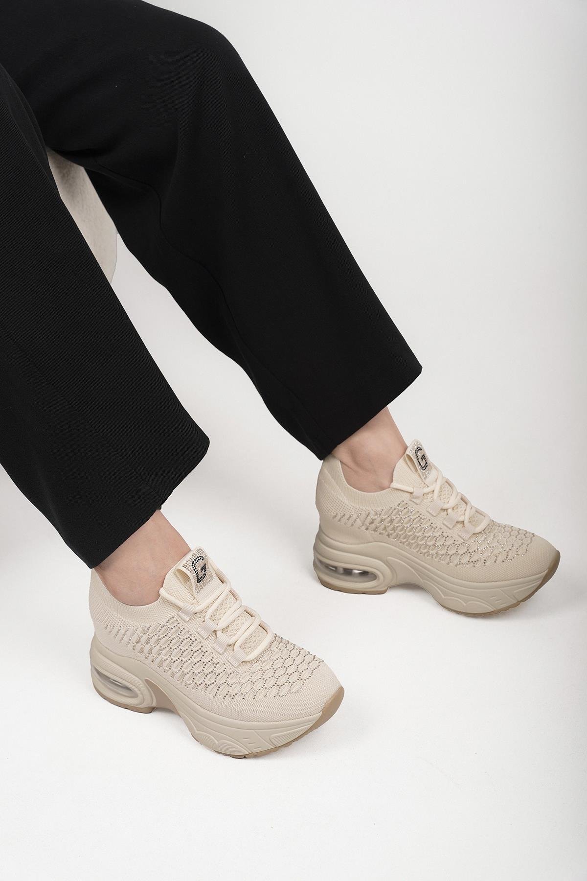 LORETTA GUJA İTHAL ÖZEL SERİ İÇTEN GİZLİ DOLGU TAŞ DETAYLI TRİKO KADIN SPOR AYAKKABI BEJ