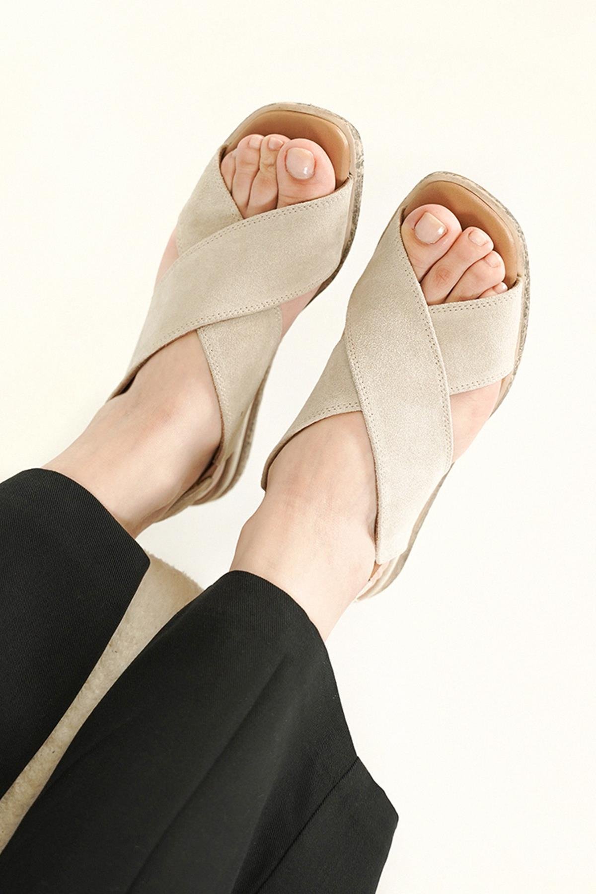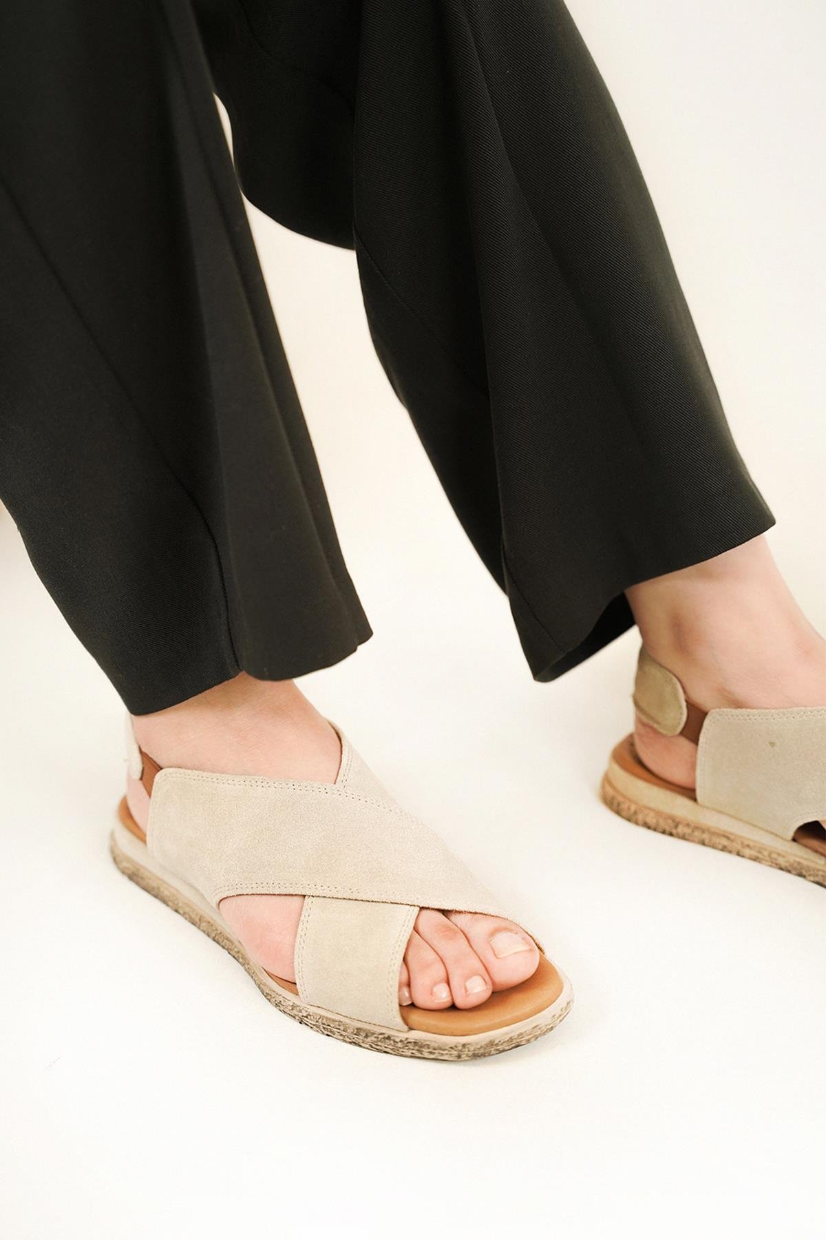 LORNA ÇAPRAZ BANTLI HAKİKİ DERİ SÜET KADIN SANDALET BEJ