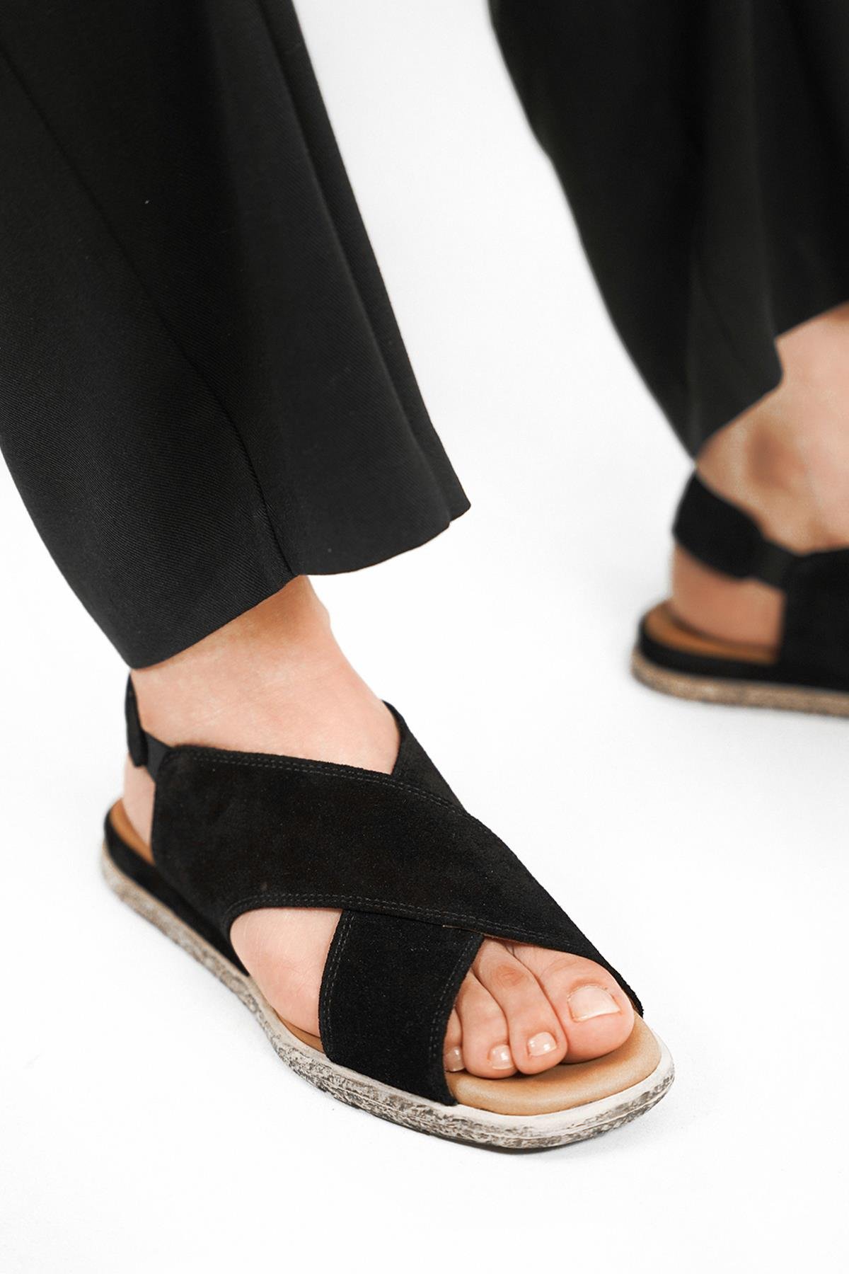 LORNA ÇAPRAZ BANTLI HAKİKİ DERİ SÜET KADIN SANDALET SİYAH