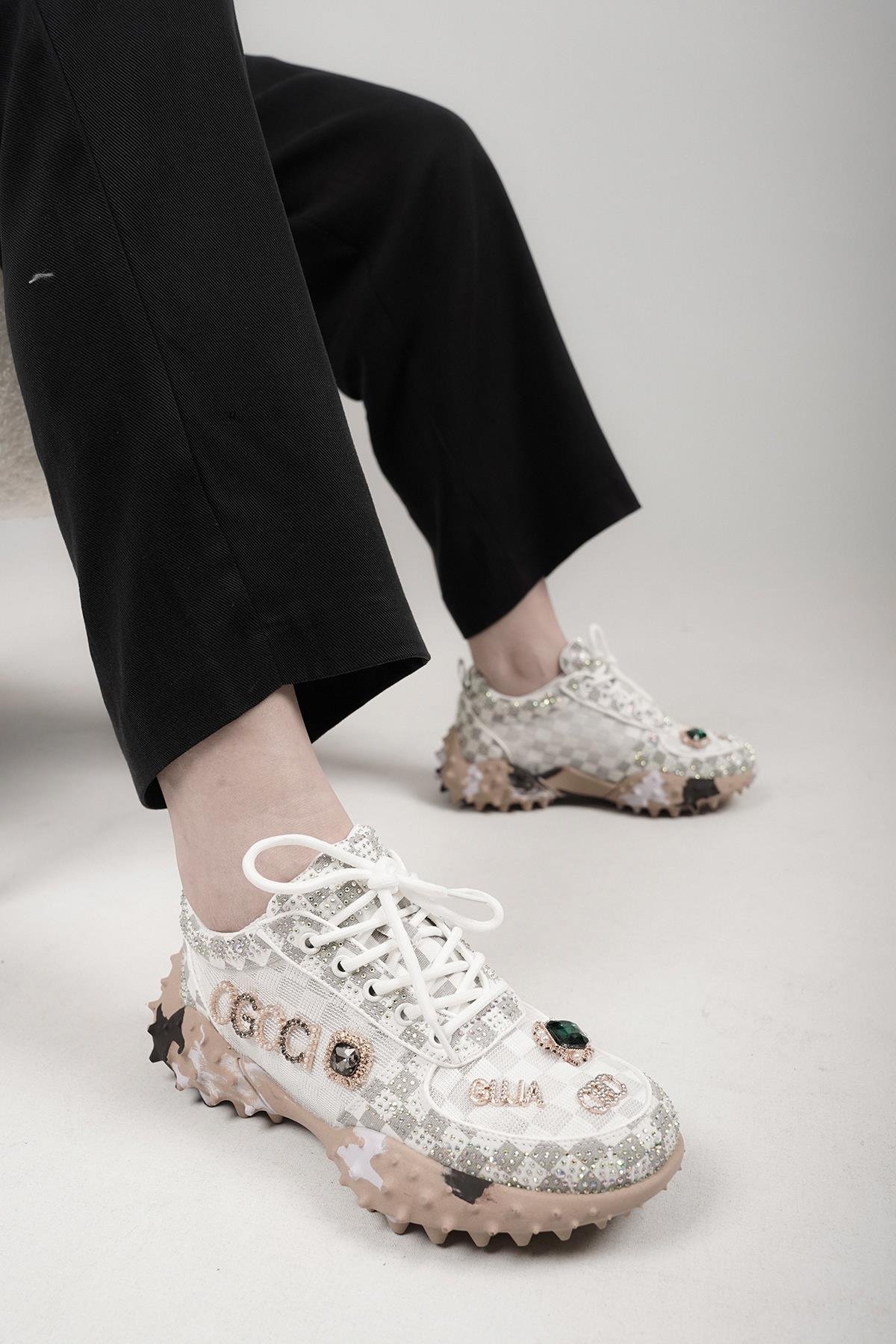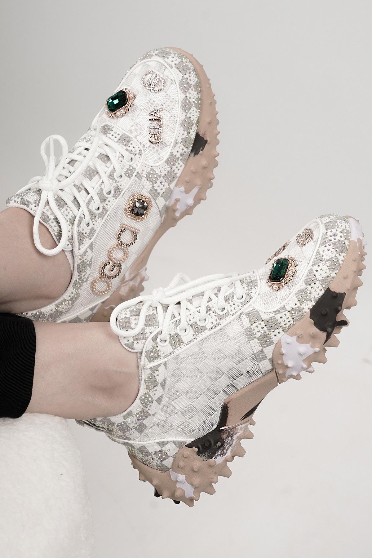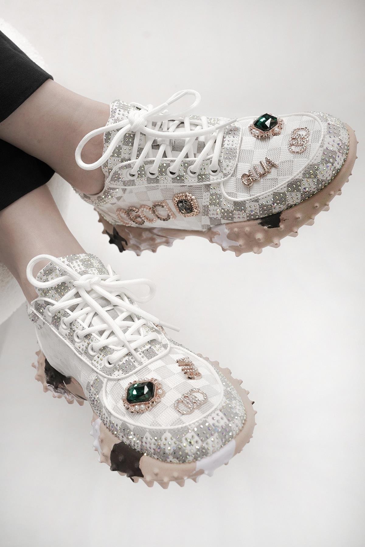 LUİSA ORİJİNAL GUJA ÖZEL SERİ TAŞ DETAYLI KADIN SPOR AYAKKABI BEYAZ