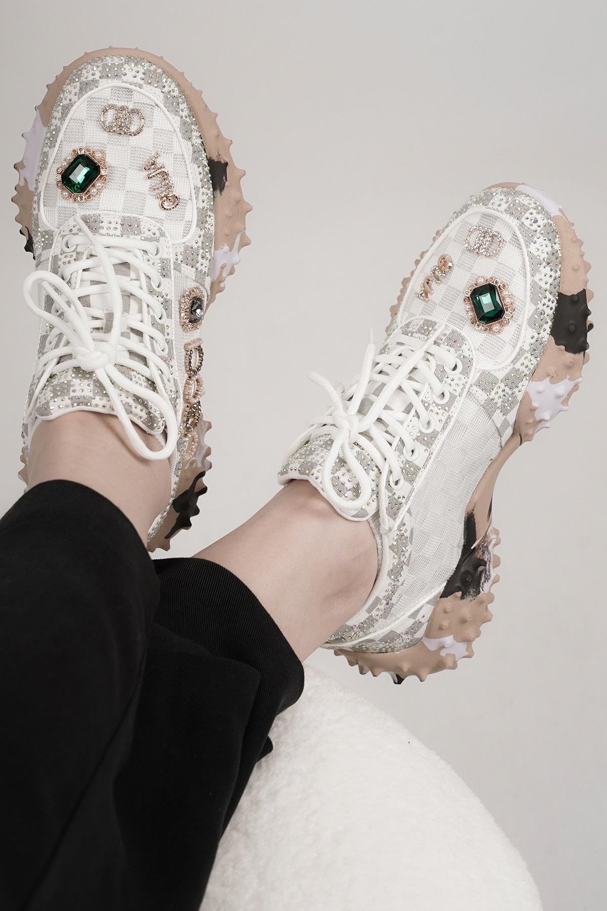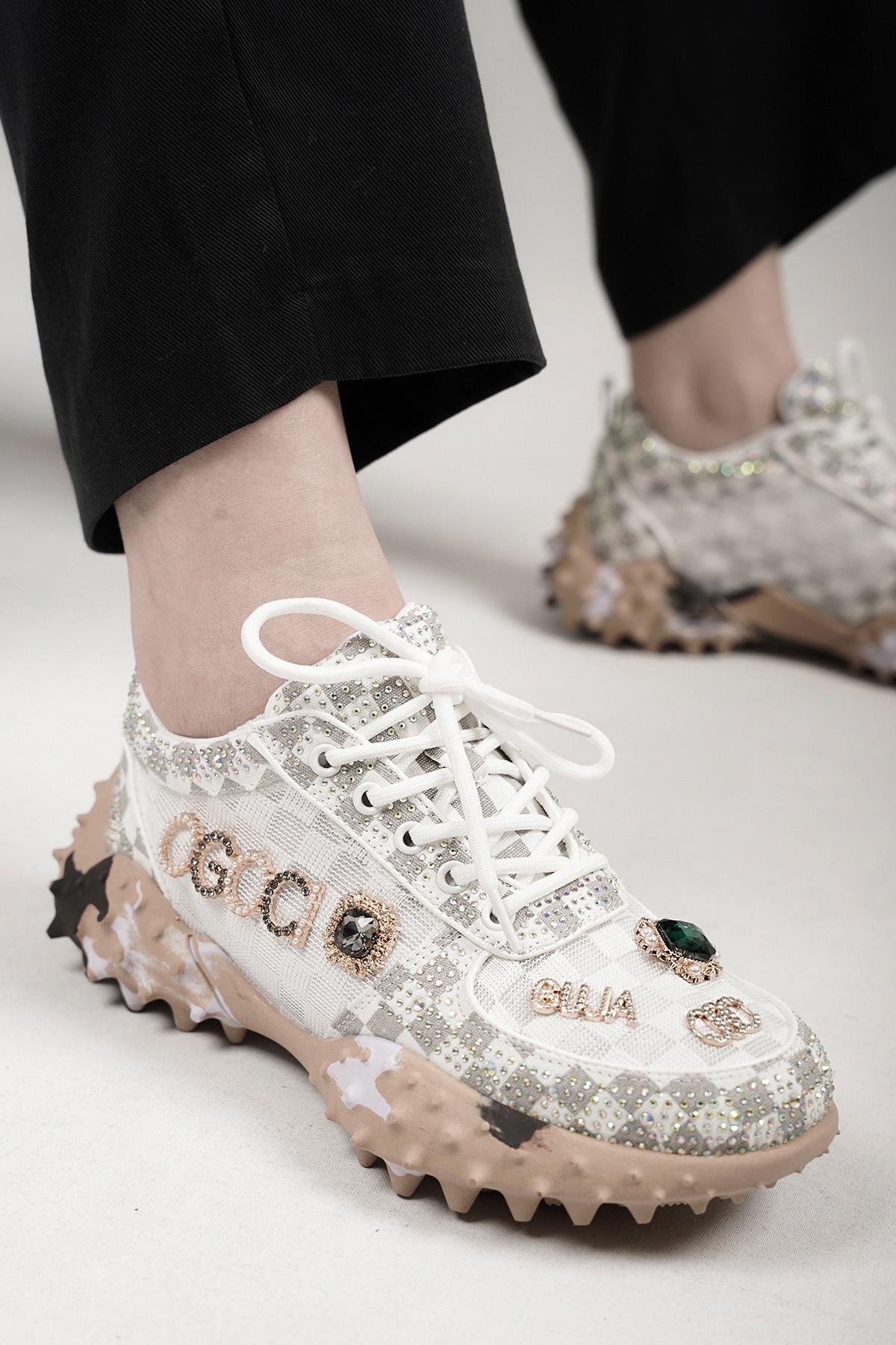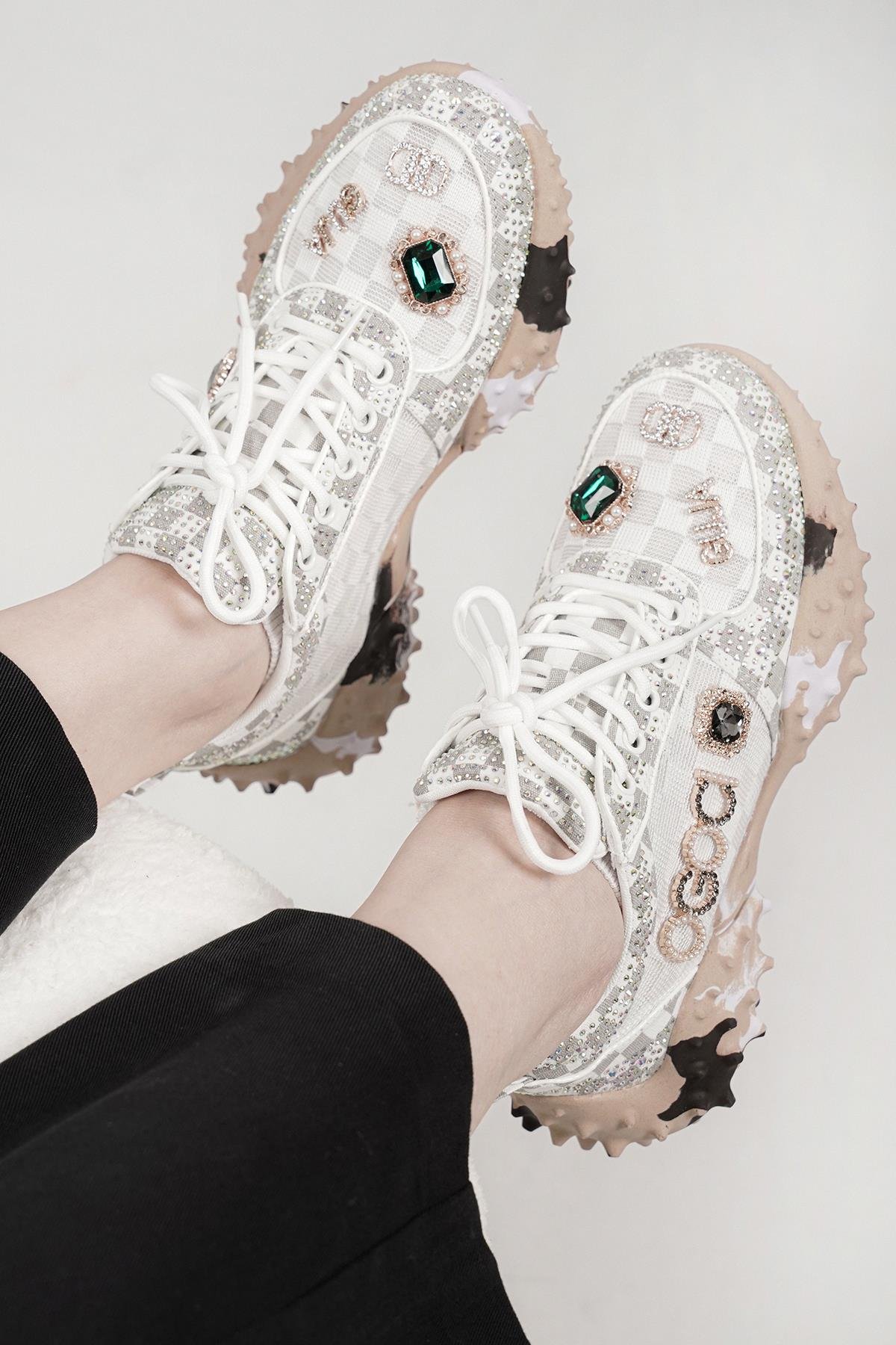 LUİSA ORİJİNAL GUJA ÖZEL SERİ TAŞ DETAYLI KADIN SPOR AYAKKABI BEYAZ