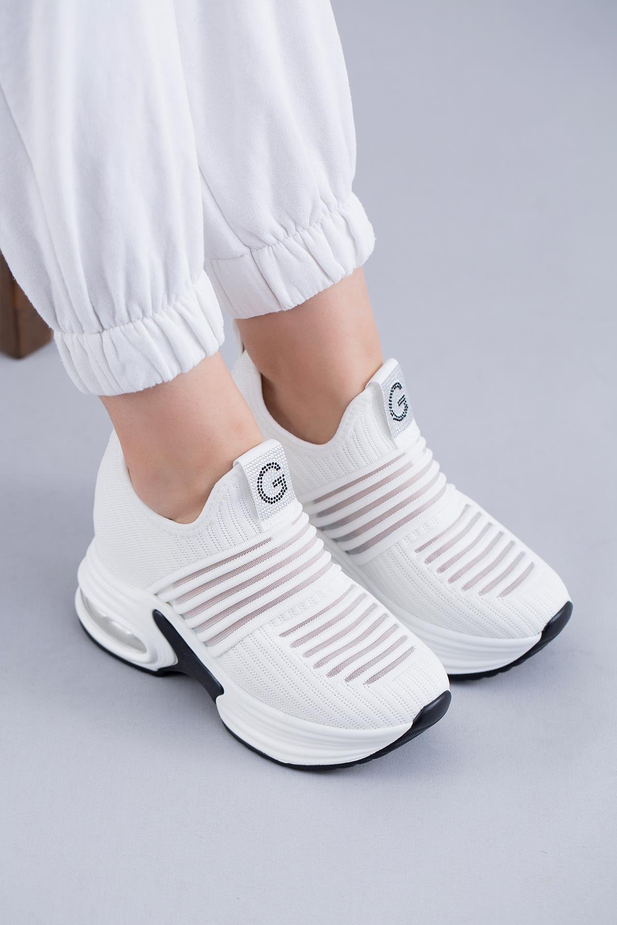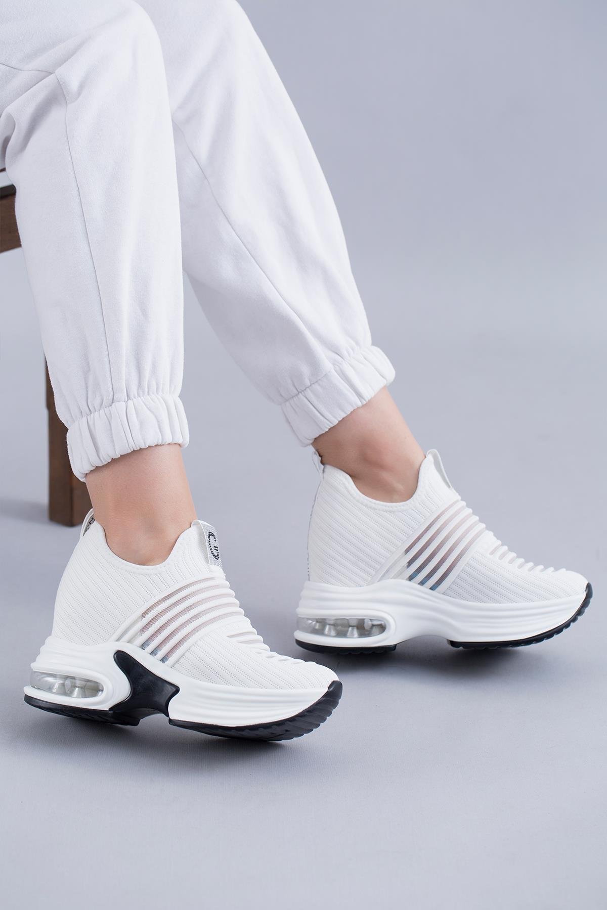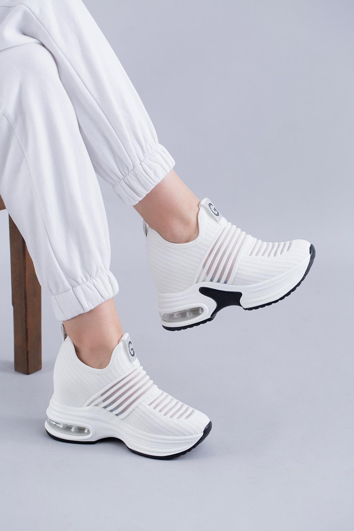 MARİAN ORİJİNAL GUJA İTHAL İÇTEN GİZLİ DOLGU TOPUK TRİKO KADIN SPOR AYAKKABI BEYAZ