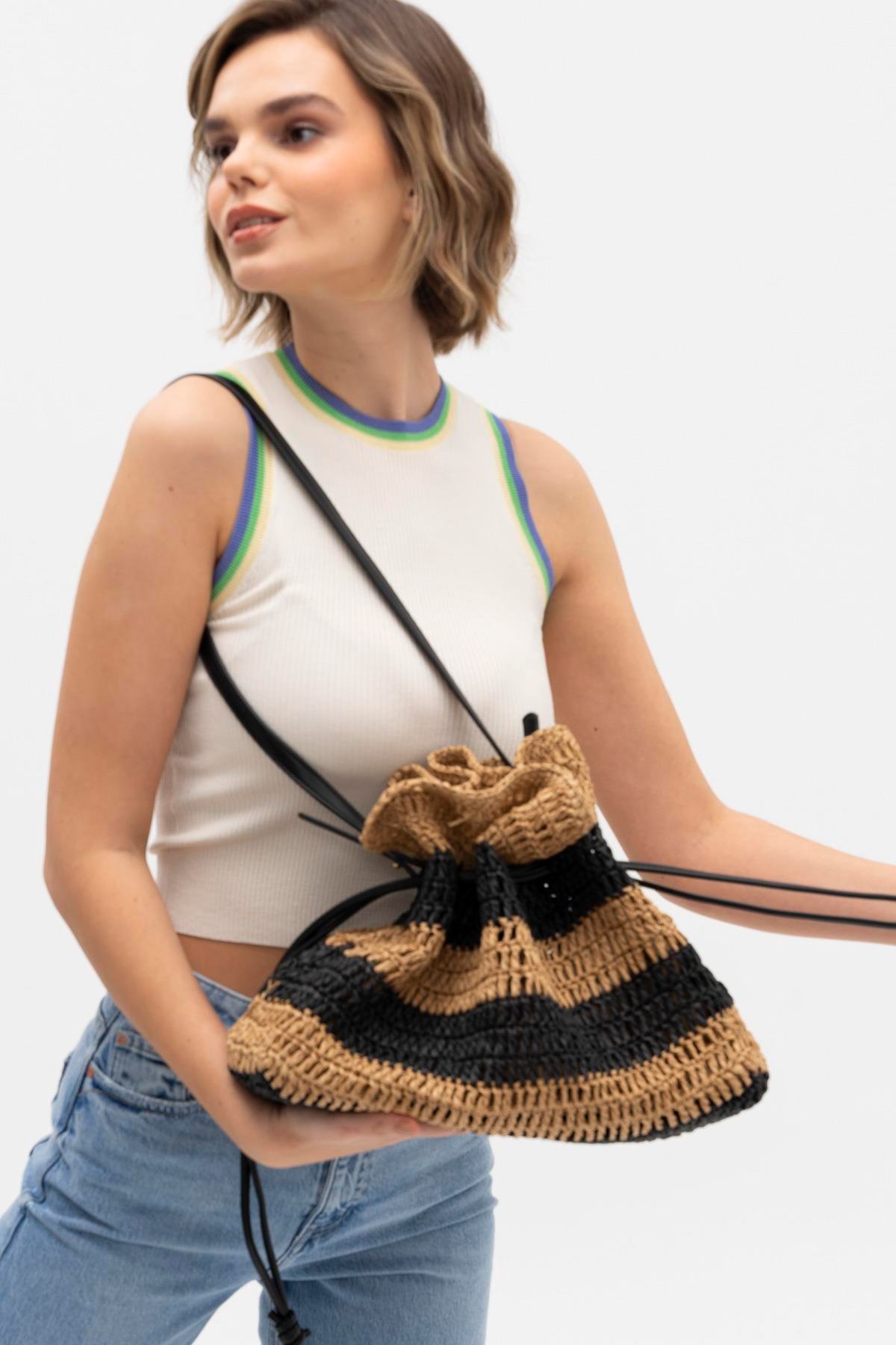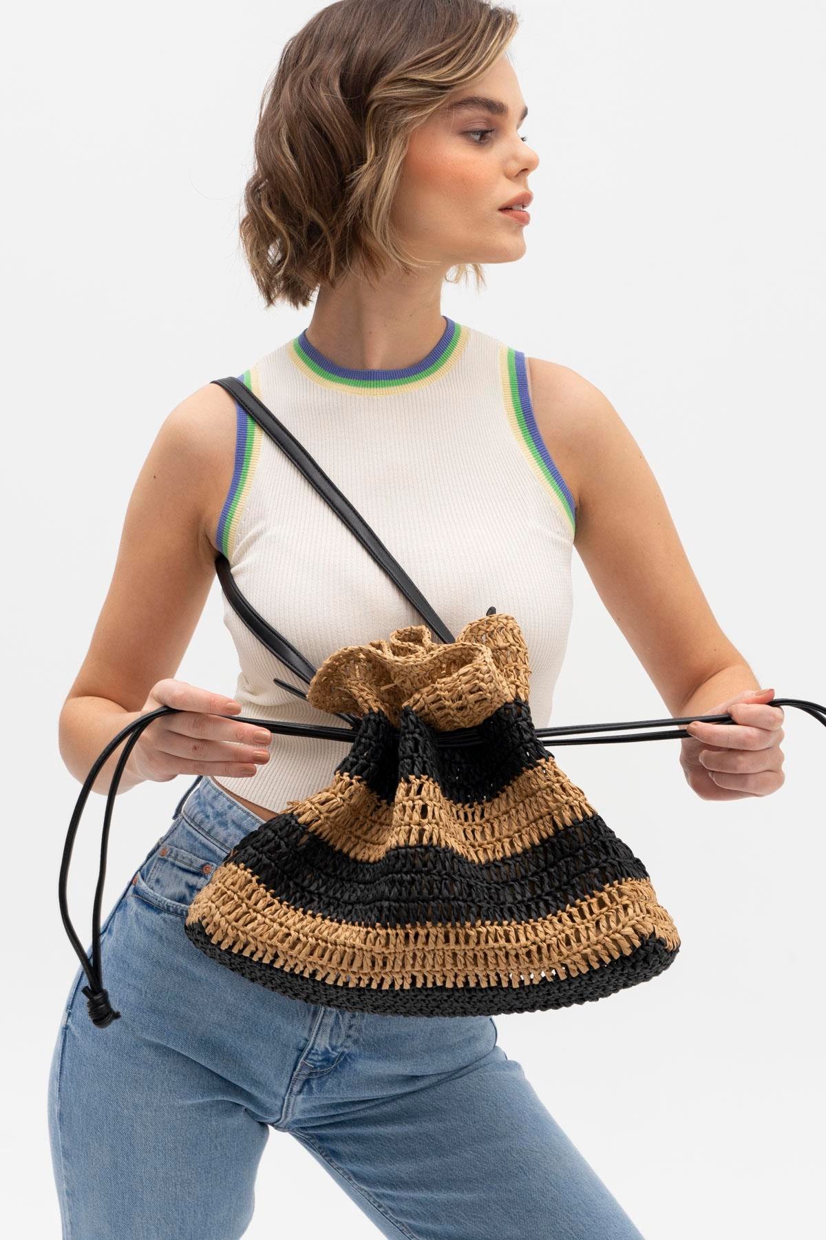 MATTHEWCOX BÜZGÜLÜ HASIR KADIN OMUZ ÇANTASI HSR1194 CAMEL SİYAH