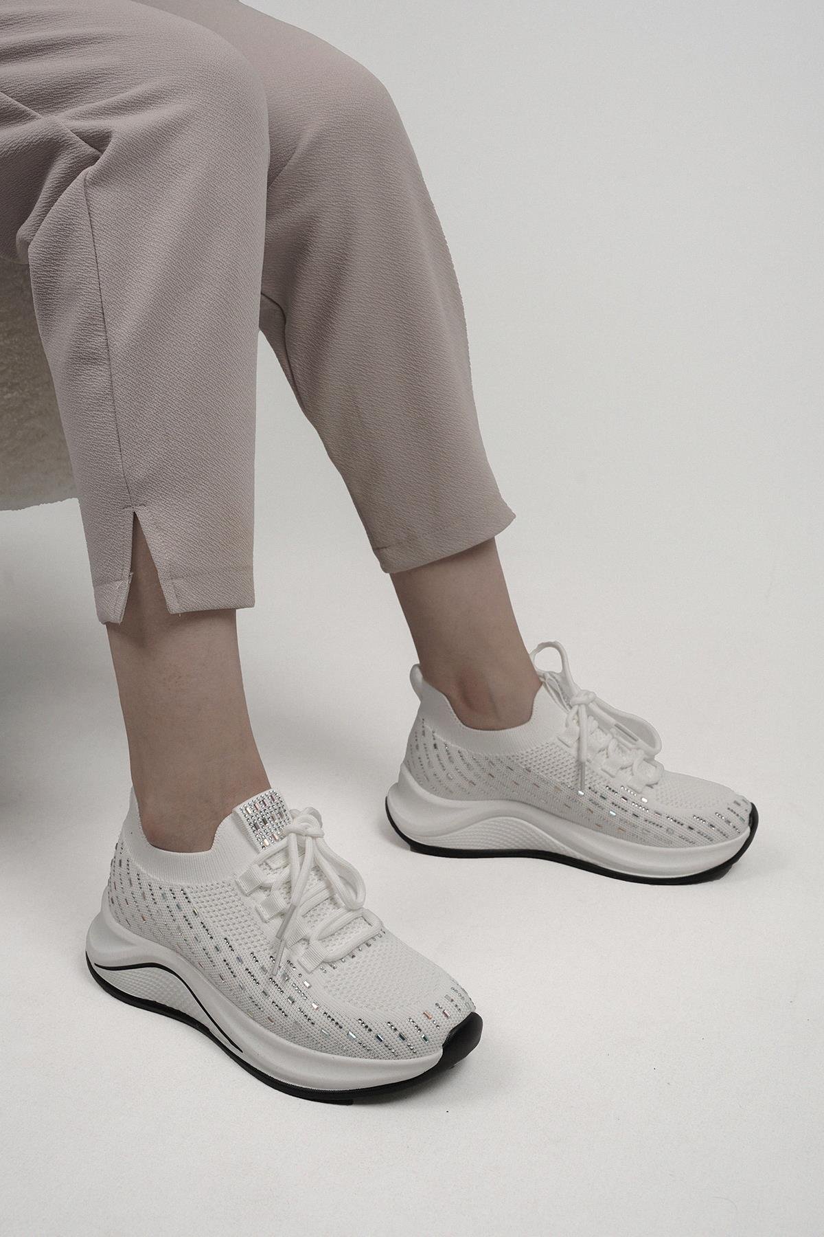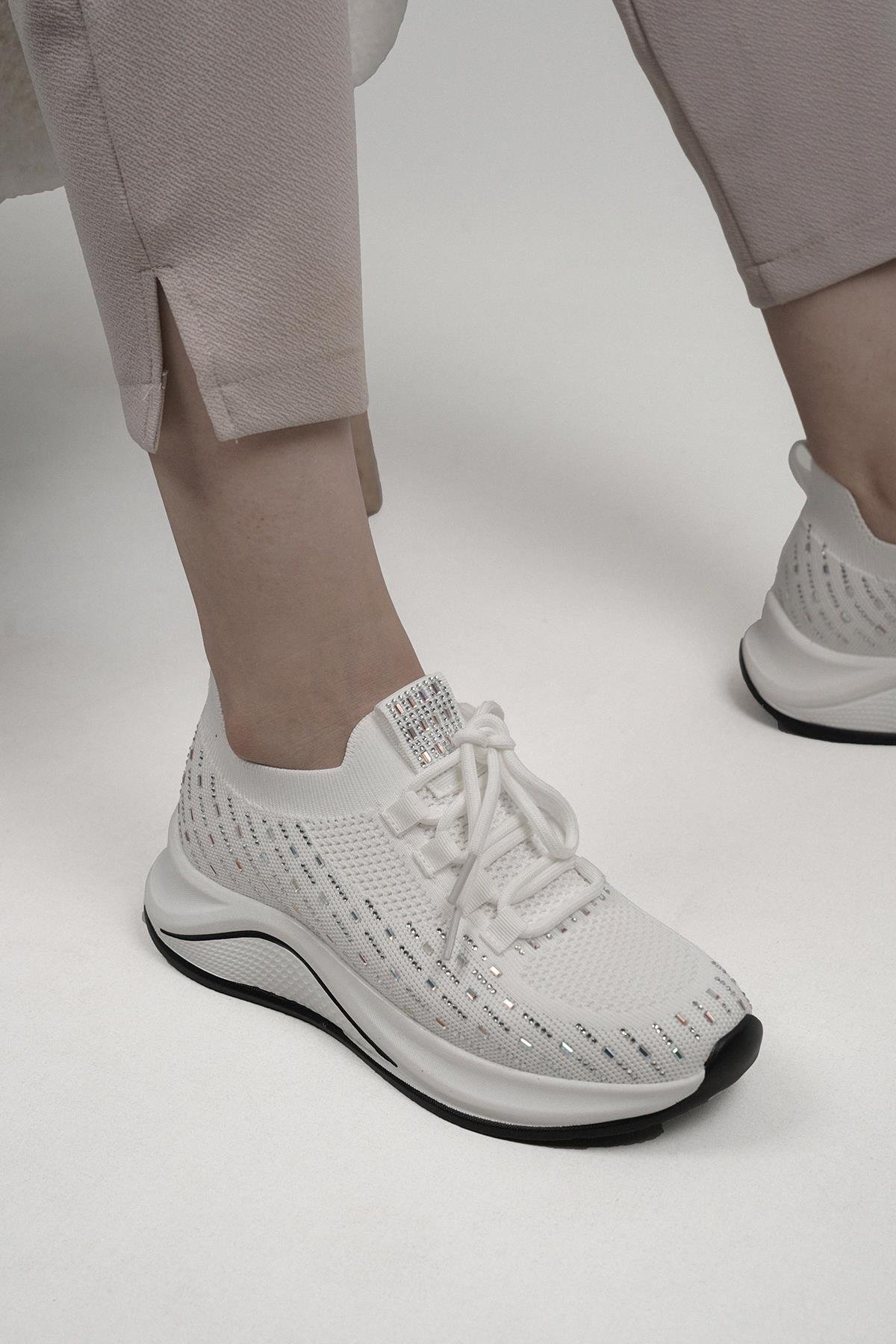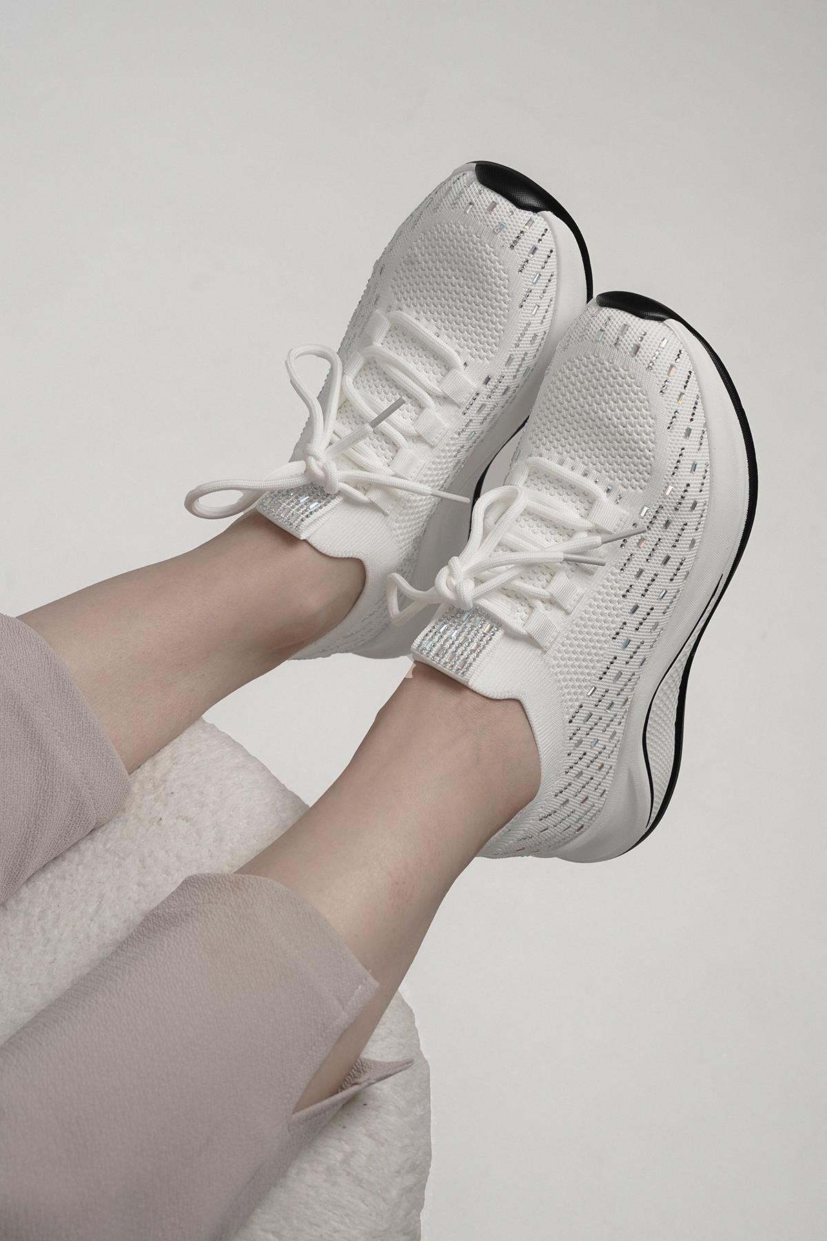 MAXİNE GUJA İTHAL ÖZEL SERİ TAŞ DETAYLI TRİKO KADIN SPOR AYAKKABI BEYAZ