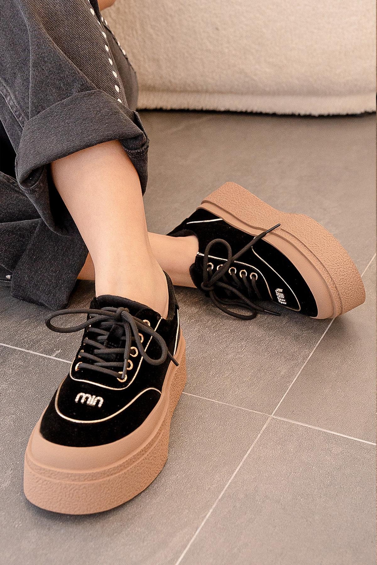 MOLLY GUJA İTHAL ÖZEL SERİ KADİFE KADIN SPOR AYAKKABI SİYAH