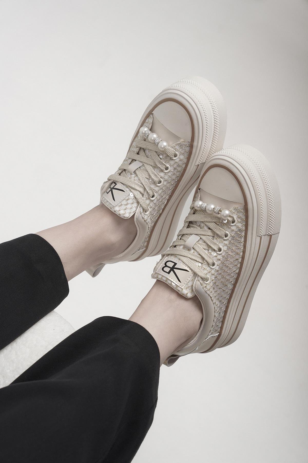MONİCA ORİJİNAL KRİSTE BELL İTHAL ÖZEL SERİ İNCİ DETAYLI KADIN SPOR AYAKKABI ALTIN