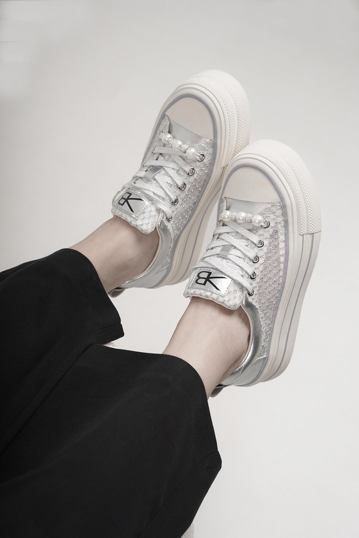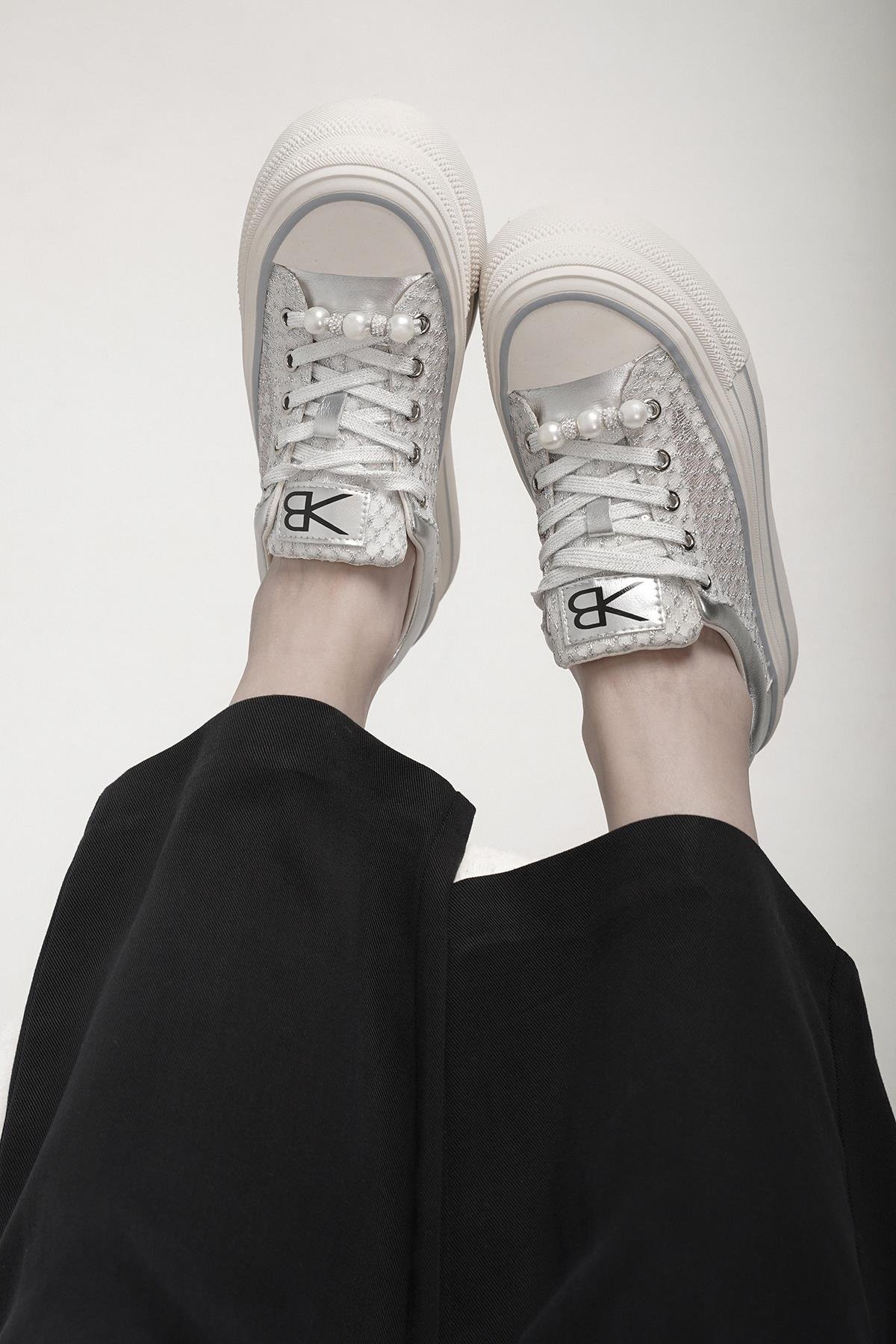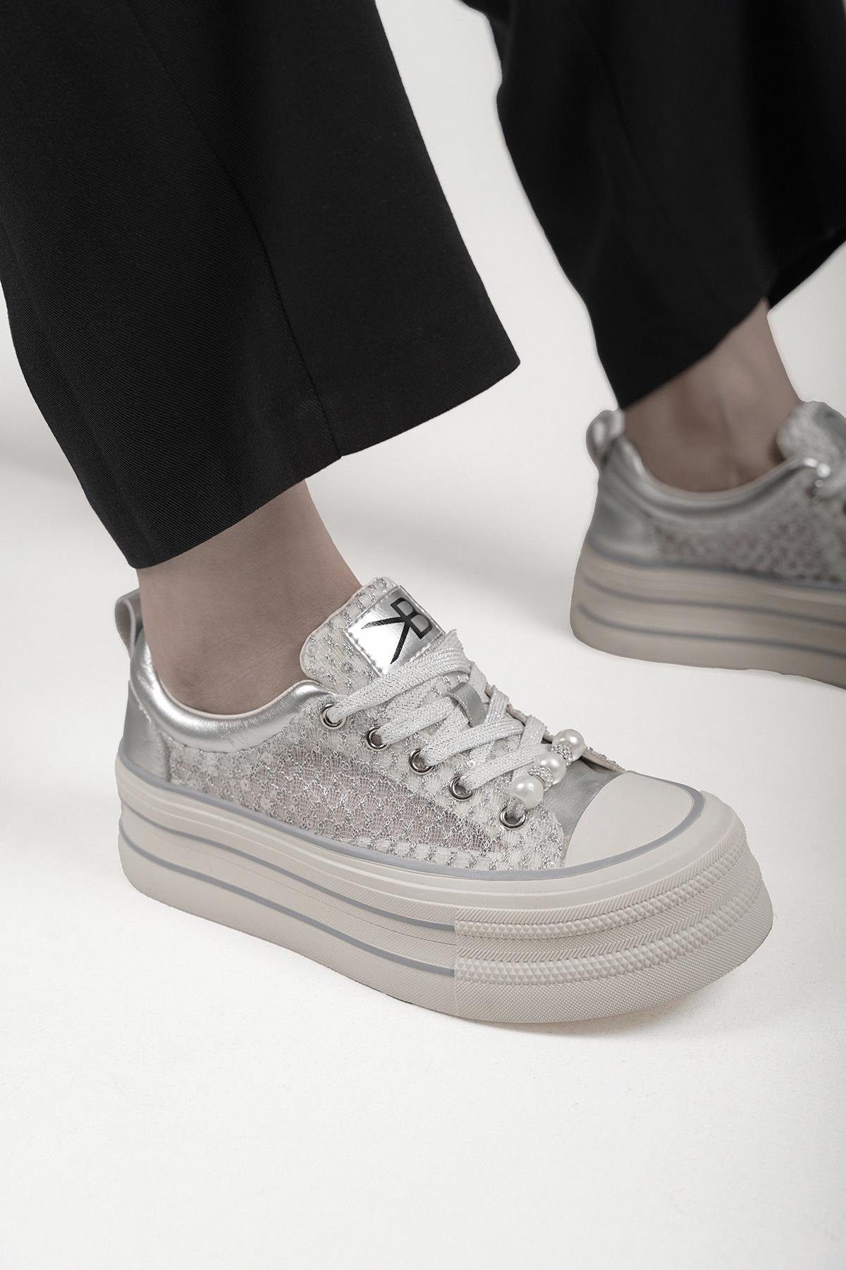 MONİCA ORİJİNAL KRİSTE BELL İTHAL ÖZEL SERİ İNCİ DETAYLI KADIN SPOR AYAKKABI GÜMÜŞ