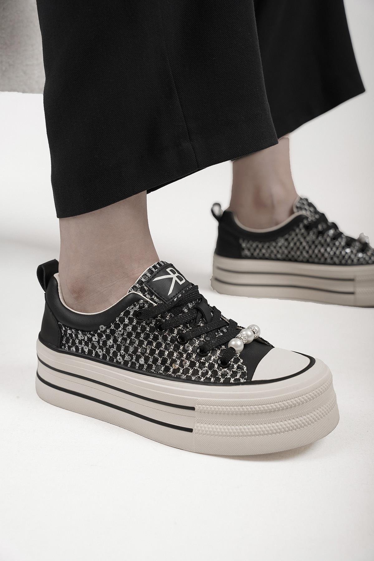 MONİCA ORİJİNAL KRİSTE BELL İTHAL ÖZEL SERİ İNCİ DETAYLI KADIN SPOR AYAKKABI SİYAH