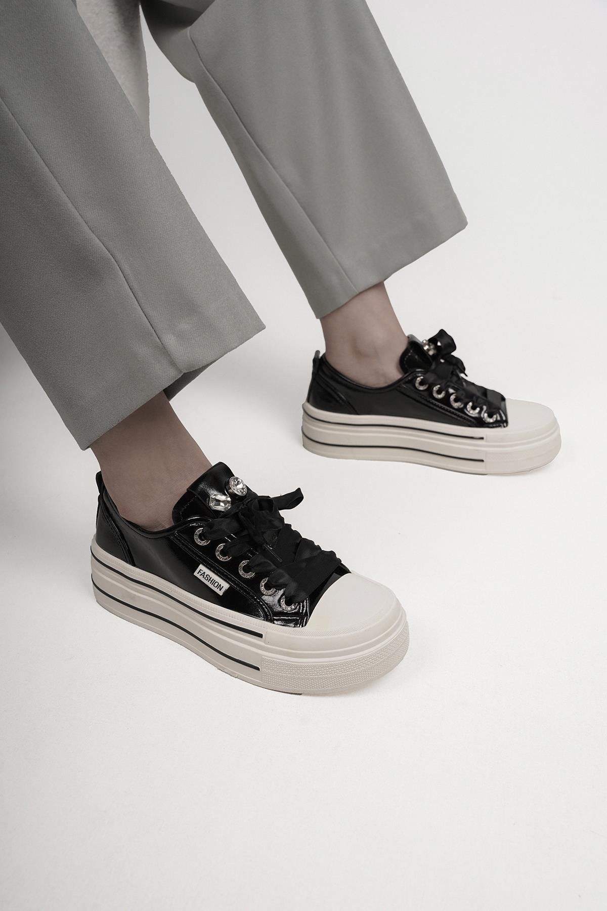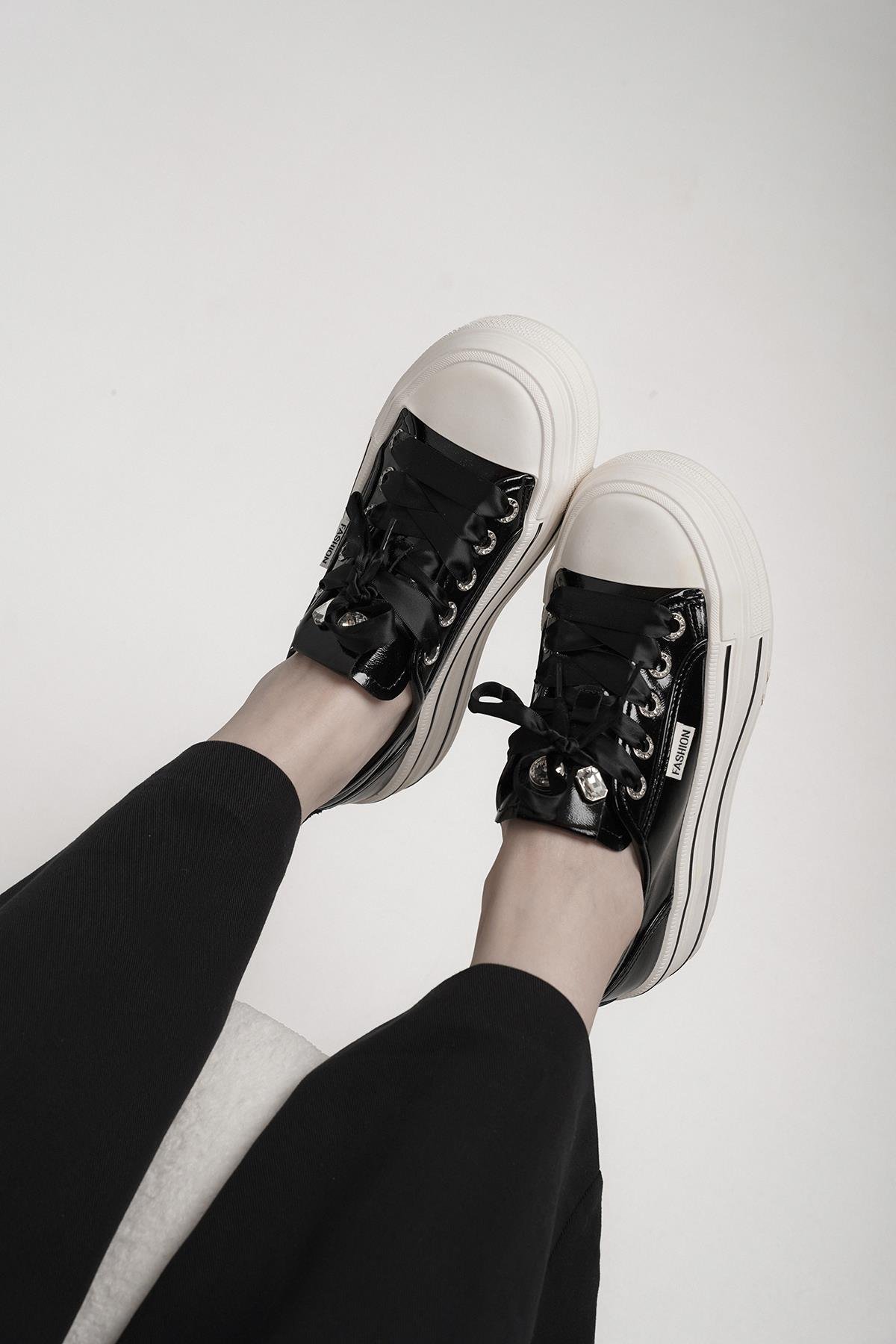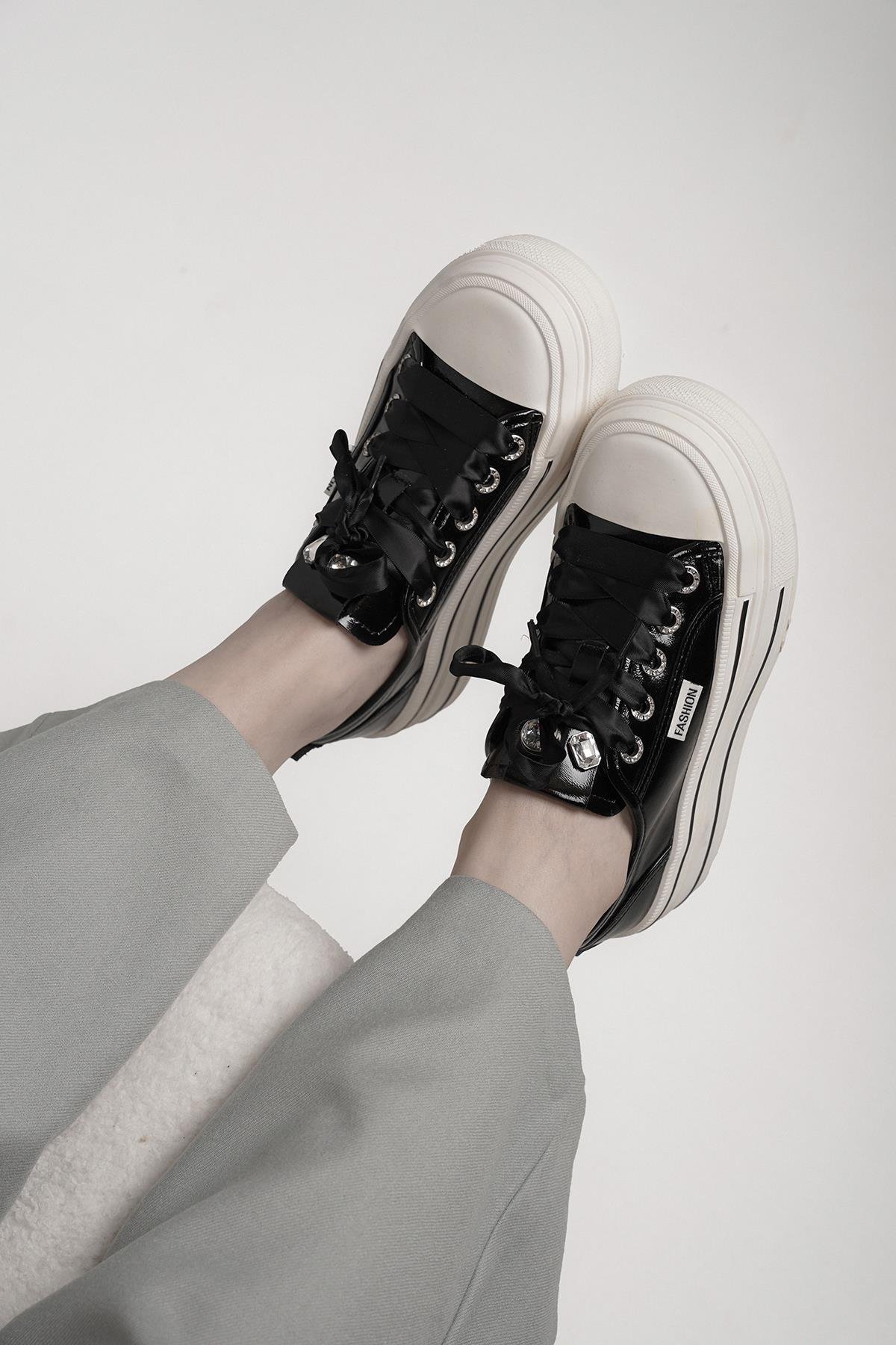 NİTA ORİJİNAL KRİSTE BELL İTHAL ÖZEL SERİ TAŞ DETAYLI KADIN SPOR AYAKKABI SİYAH