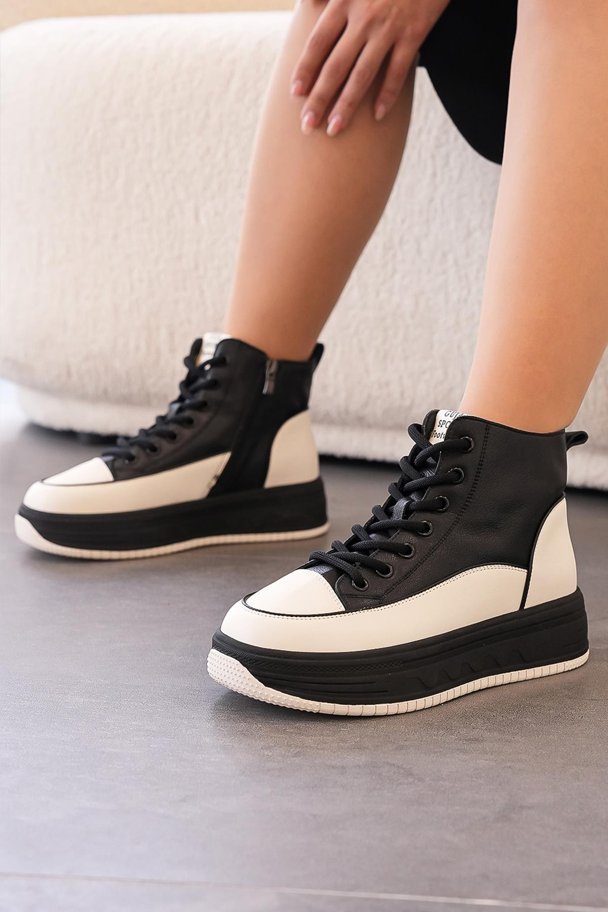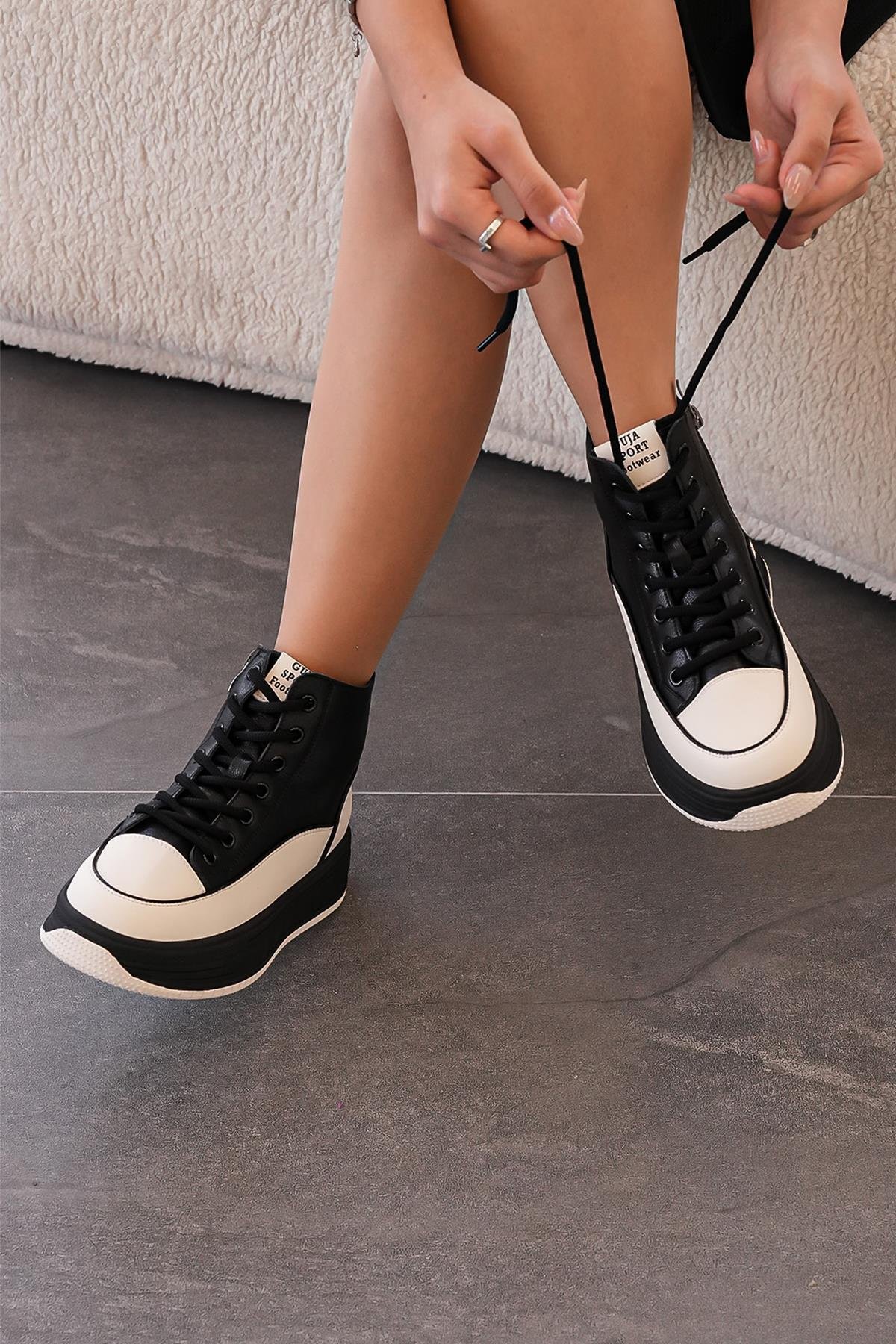 POPPY GUJA İTHAL ÖZEL SERİ HAKİKİ DERİ KADIN SPOR BOT SİYAH