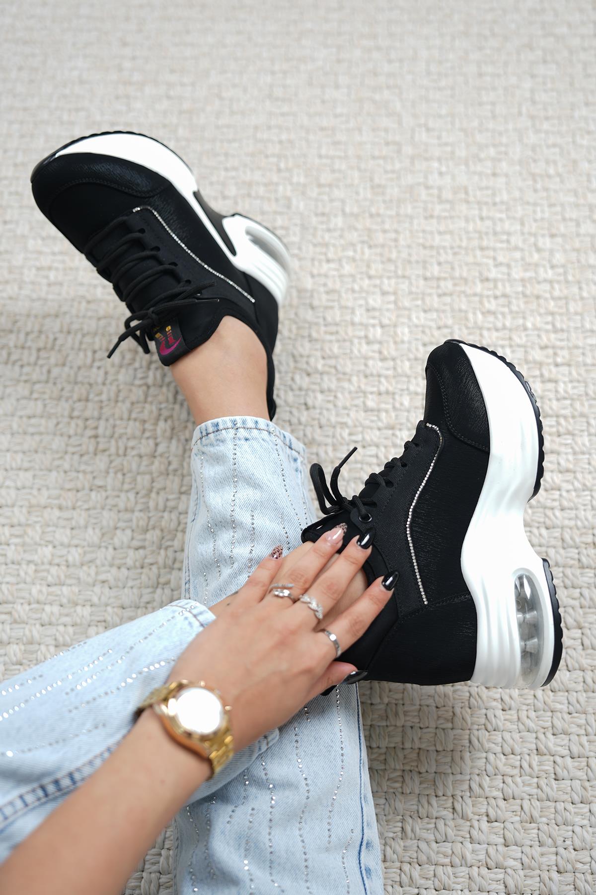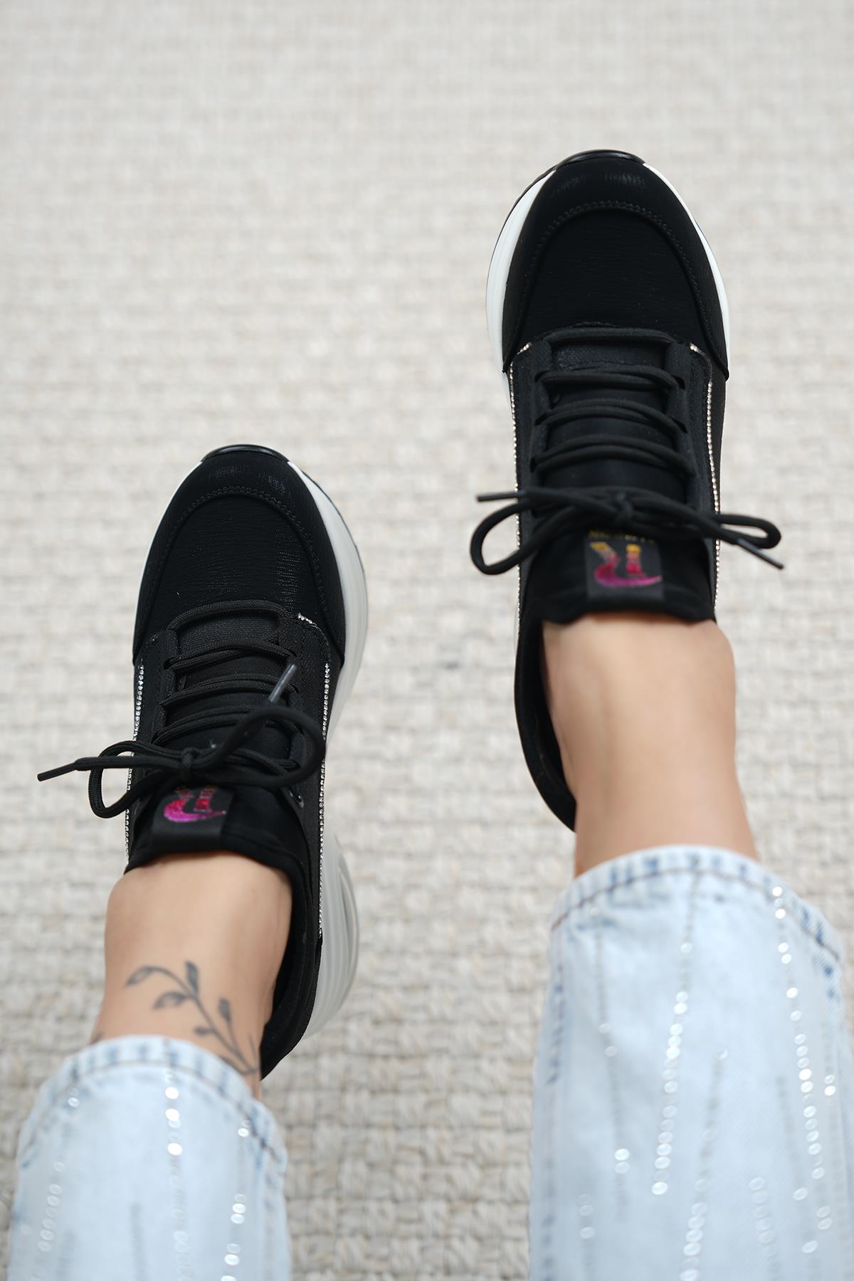 REBA ORİJİNAL GUJA İTHAL YAN TAŞ DETAYLI GİZLİ DOLGU KADIN SPOR AYAKKABI SİYAH