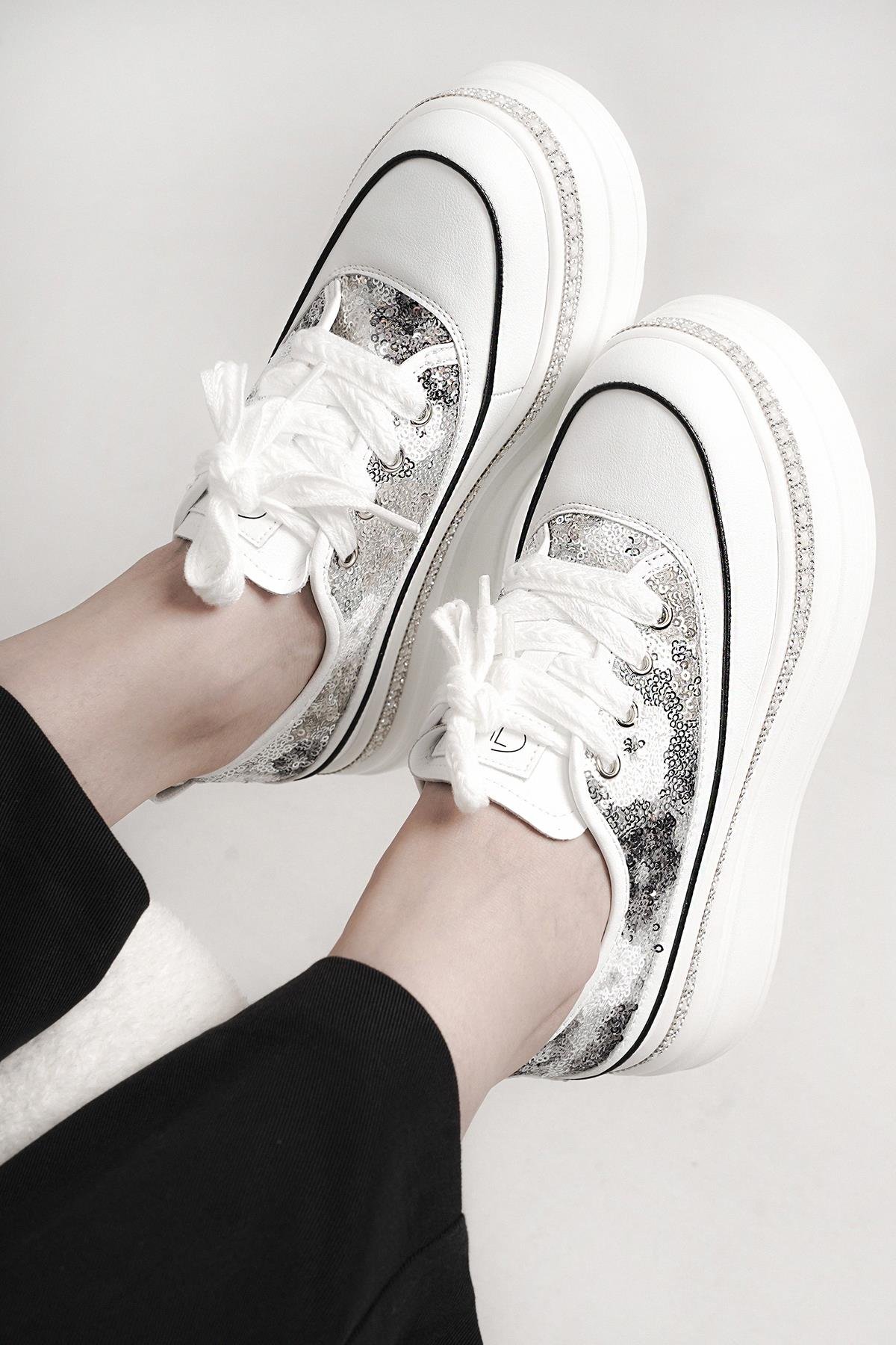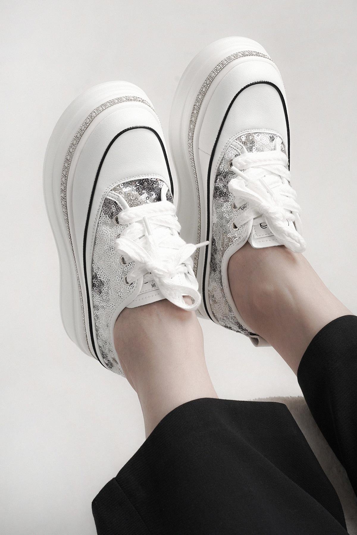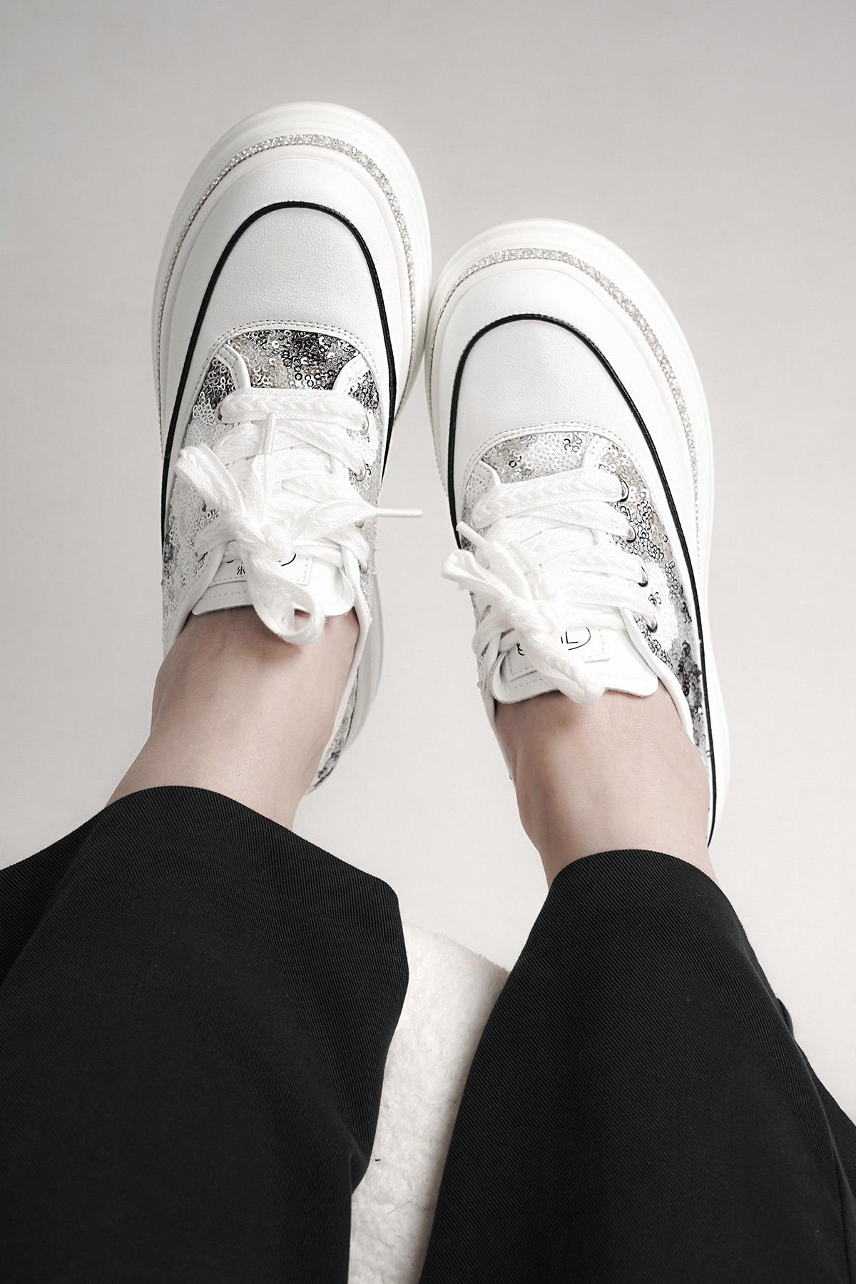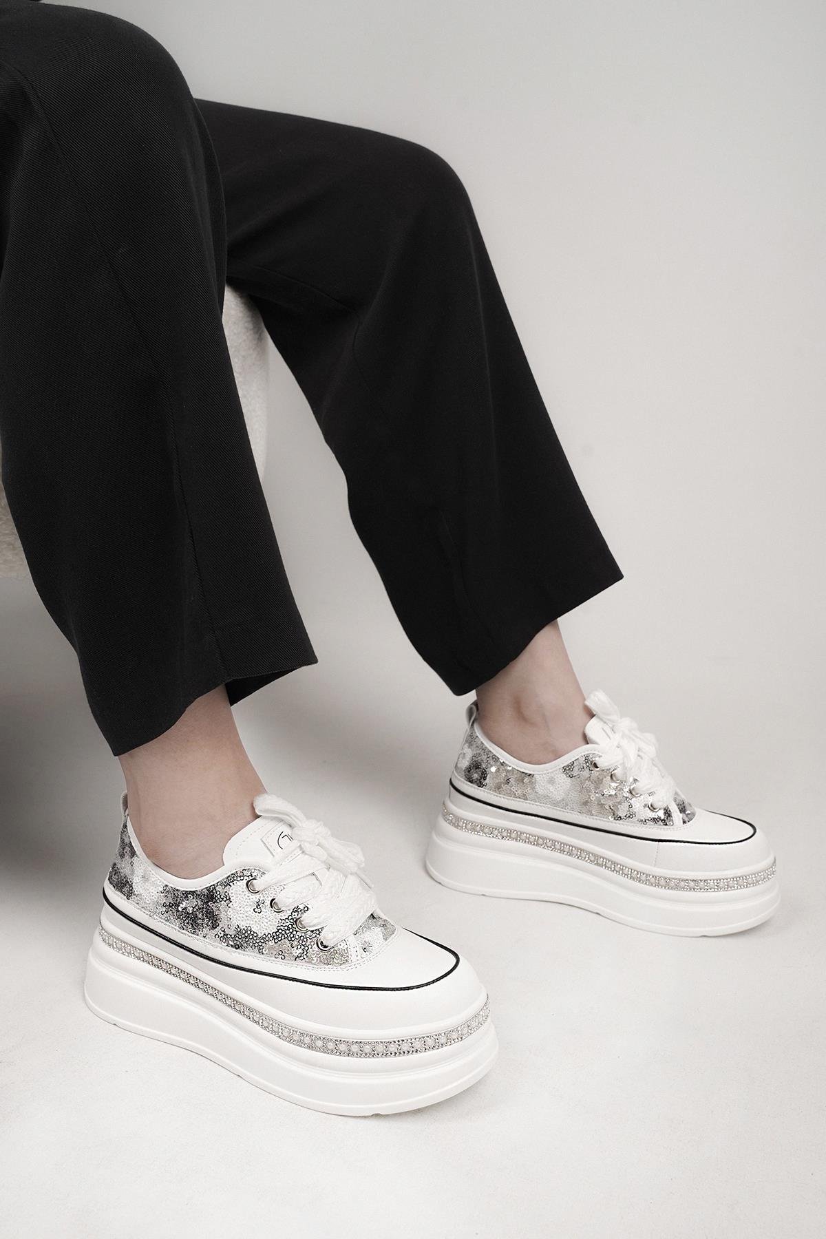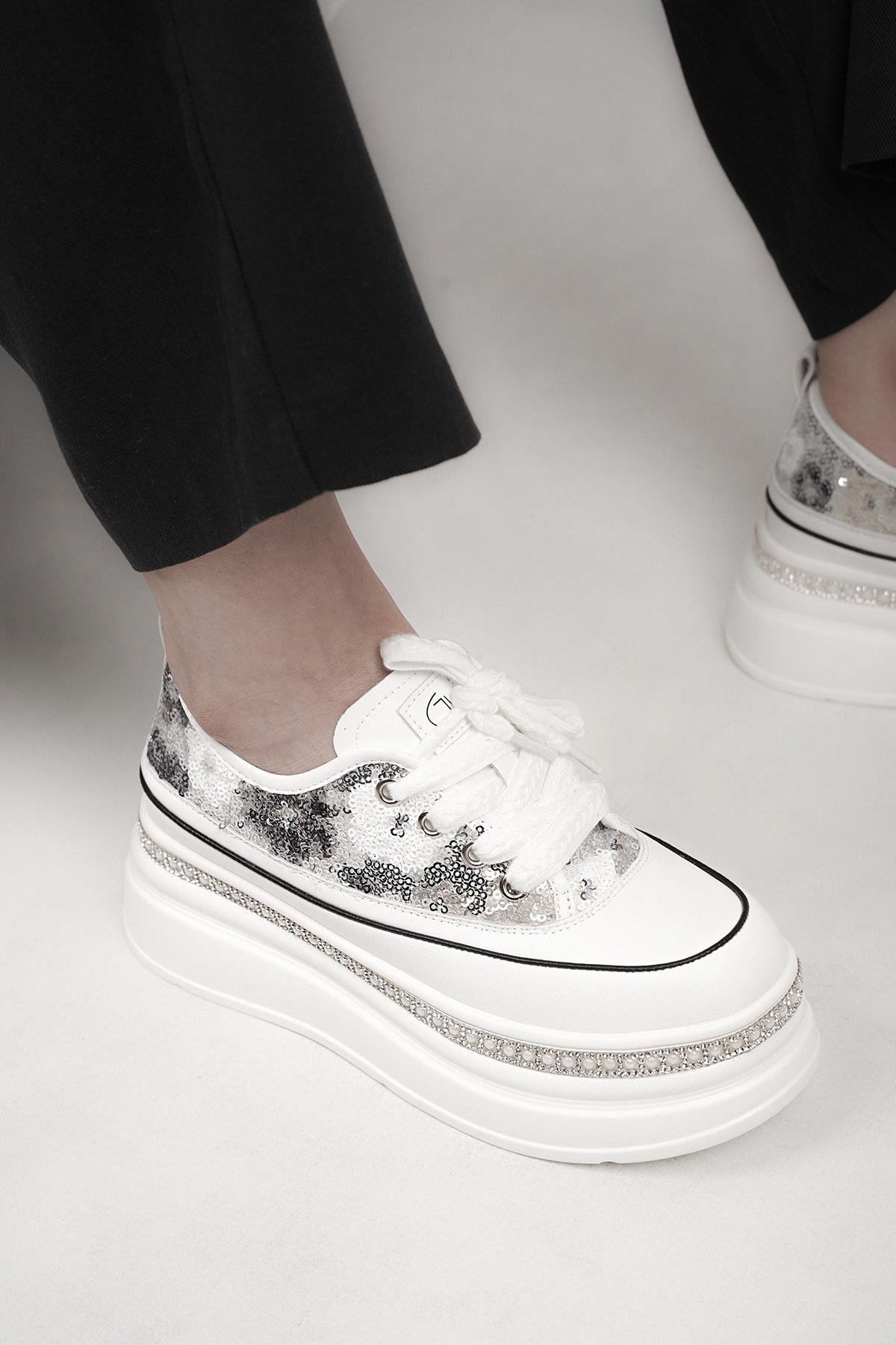 RİNA GUJA İTHAL ÖZEL SERİ TABAN TAŞ DETAYLI PULLU KADIN SPOR AYAKKABI GRİ