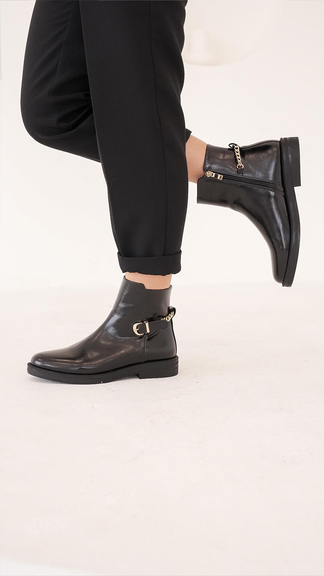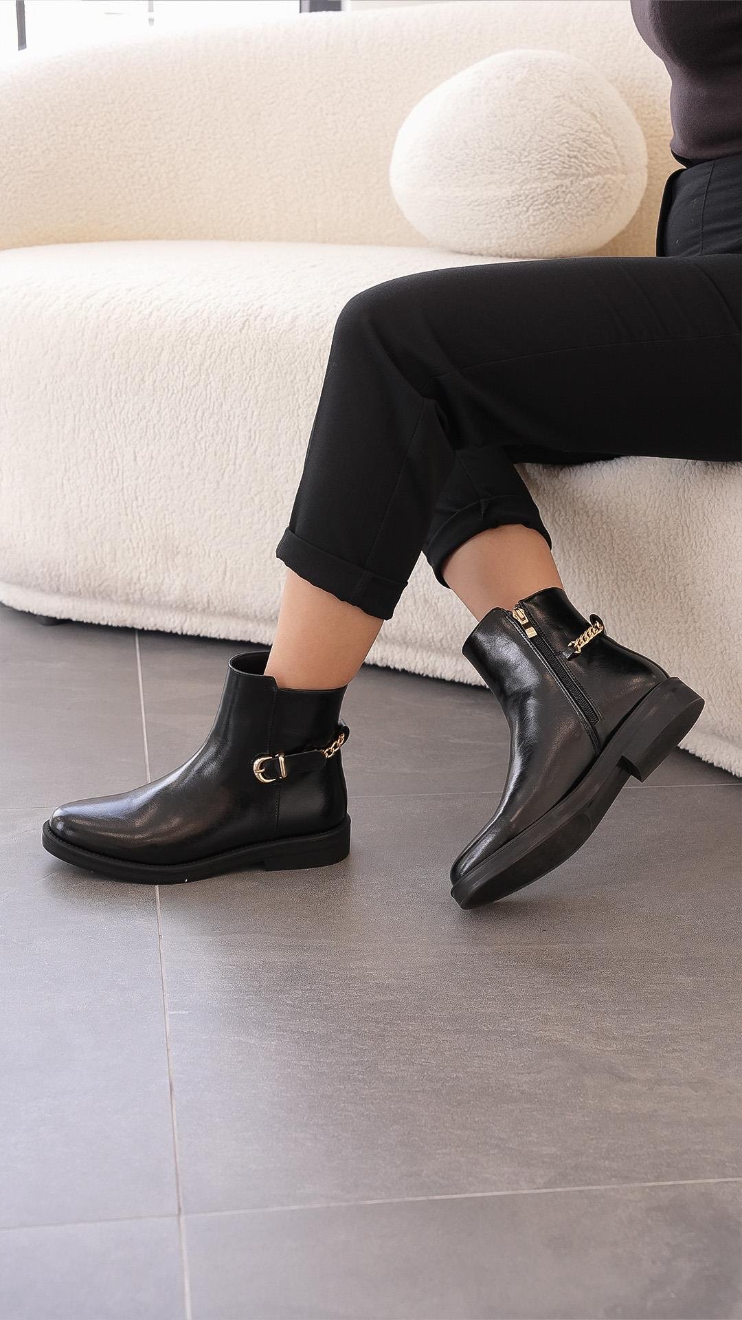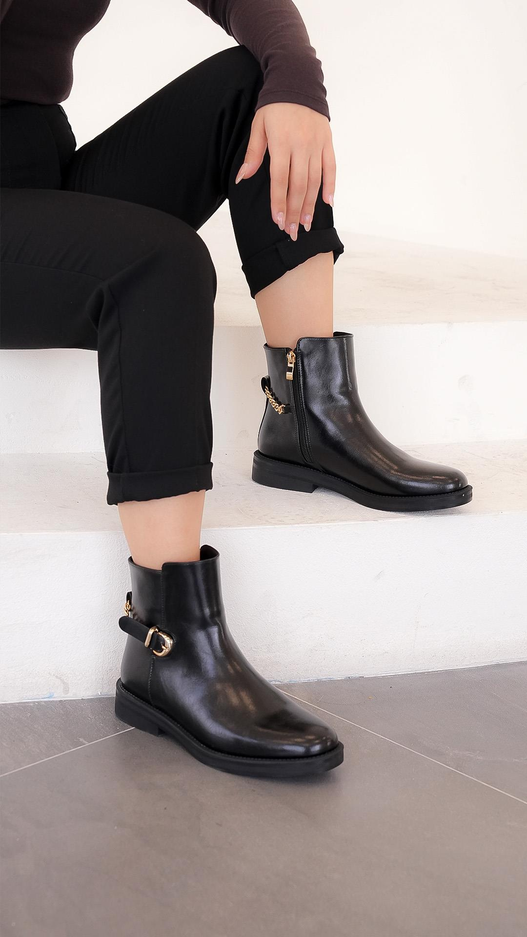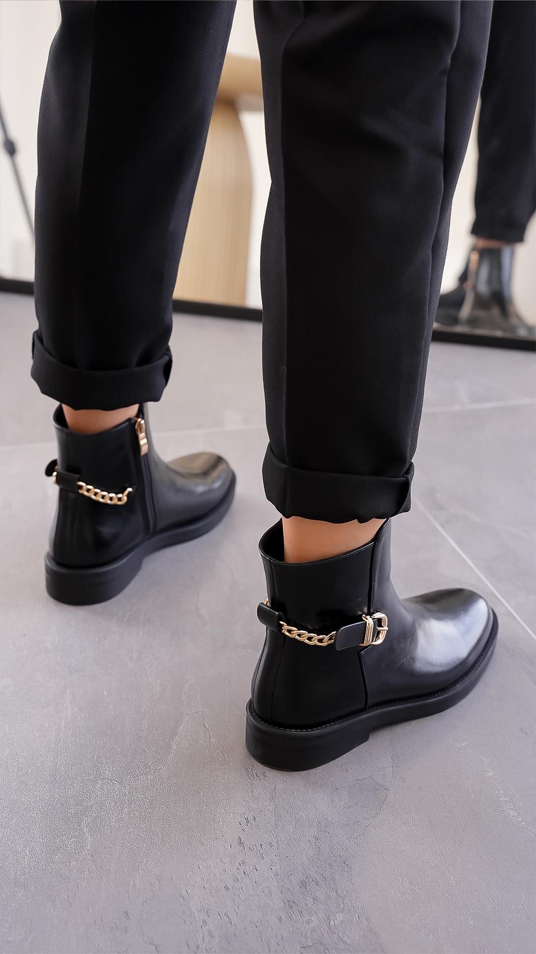 SİNDY ORİJİNAL KRİSTE BELL İTHAL ARKA ZİNCİR DETAYLI KADIN BOT SİYAH