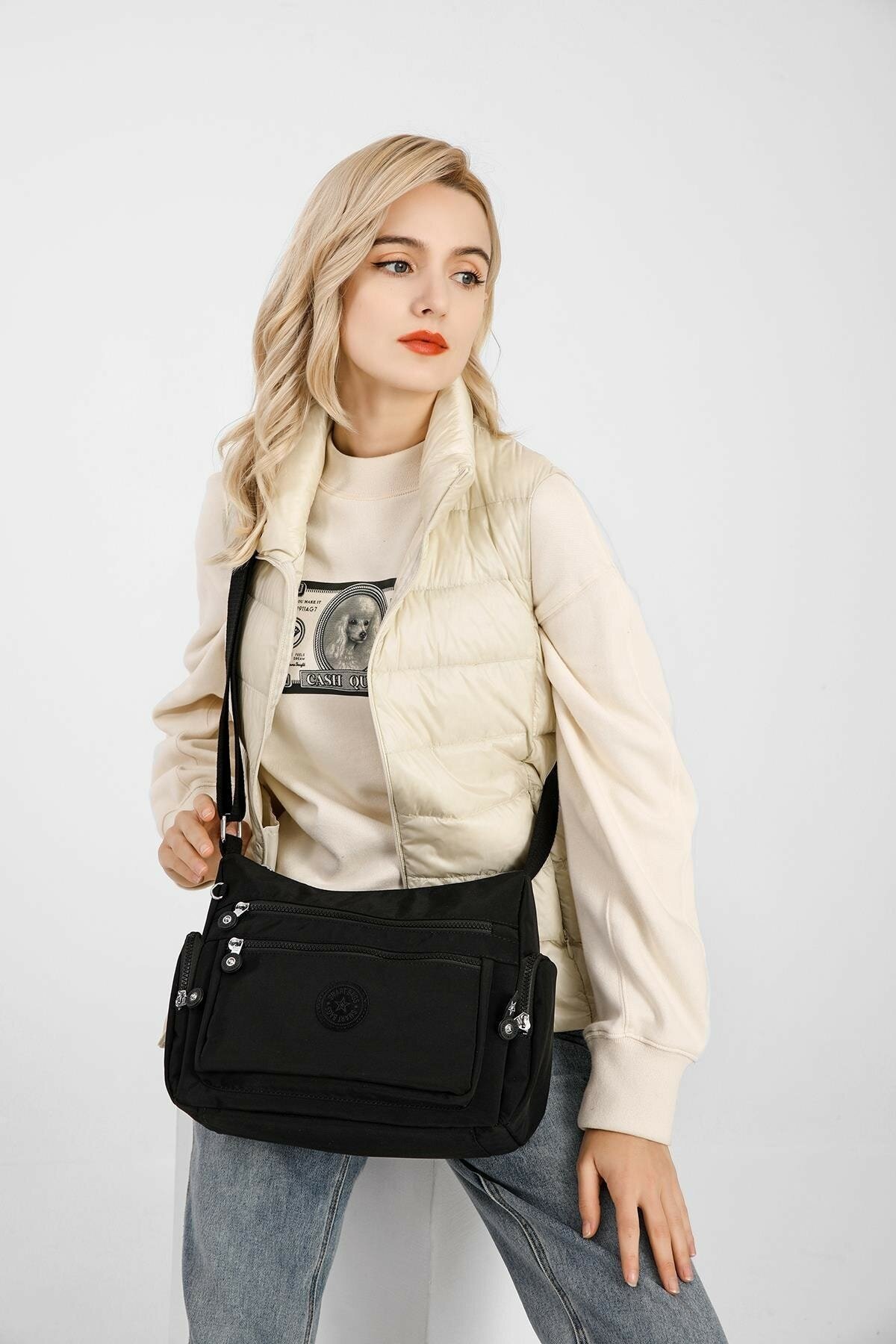 SMARTBAGS KRİNKIL KUMAŞ KADIN ÇAPRAZ ÇANTA 1115 SİYAH
